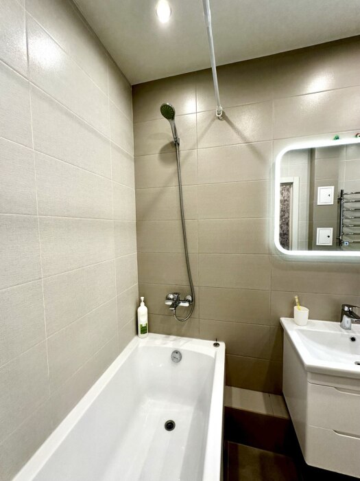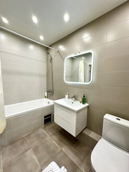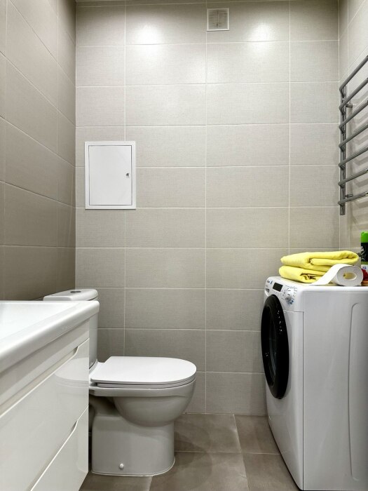 - Просторная ванная комната, а также фен, махровые полотенца, стиральная машина, сушилка, жидкое мыло, гель для душа, шампунь