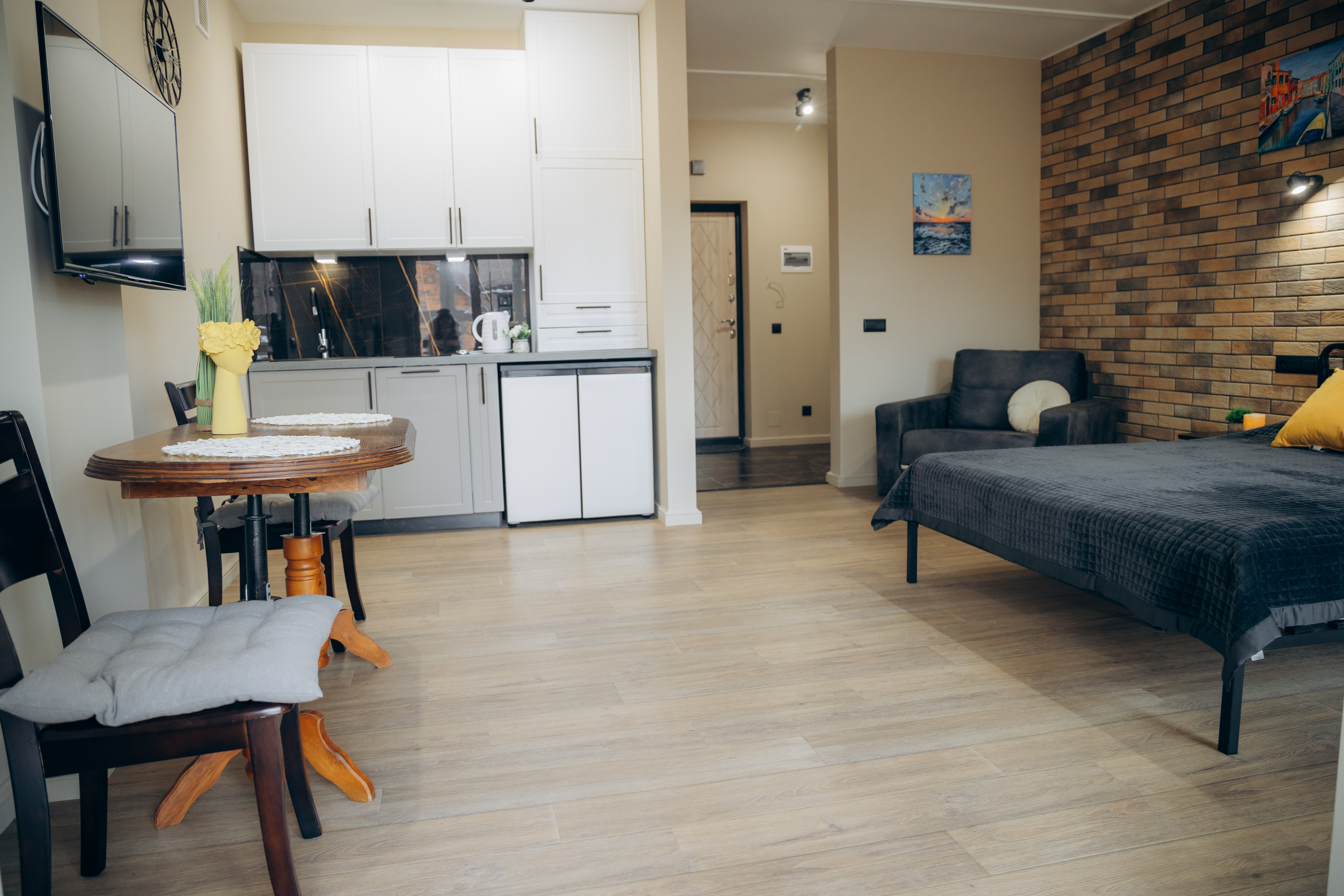 По классике наших апартаментов есть всё, что может понадобится в повседневной жизни. Начиная от скоростного wi-fi, бытовой техники и заканчивая средствами гигиены.