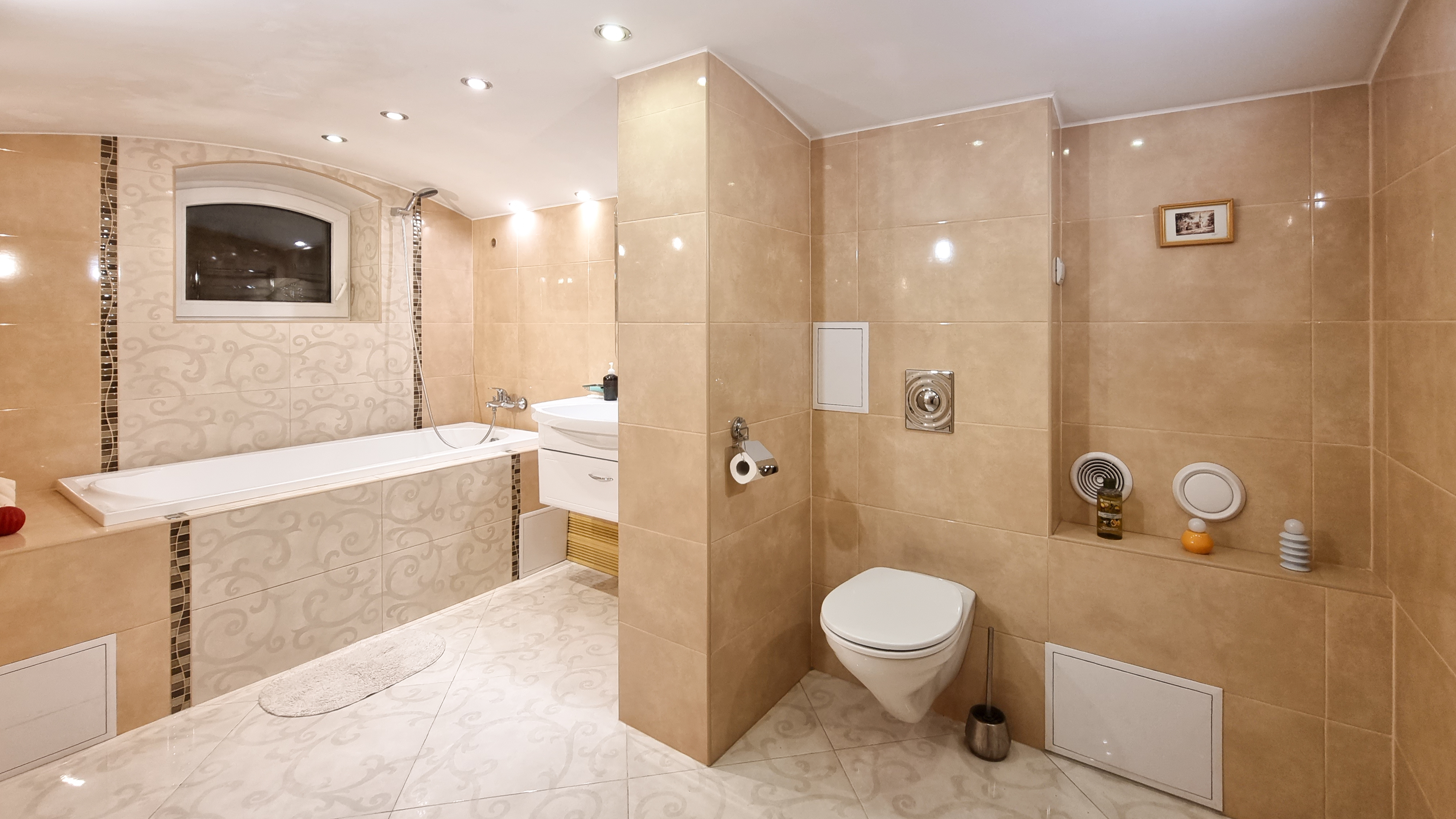 Обратите внимание на ванную комнату, расположенную в подвальном этаже. Эта квартира находится в старинном немецком особняке и имеет двухуровневую планировку. Здесь есть камин и арочные перекрытия. Винтовая лестница ведет в хозяйственное помещение и к ванной комнате. Арочные своды подчеркивают историческое наследие интерьера. Особняк является памятником архитектуры. Реставрация фасада запланирована на 2026 год.
