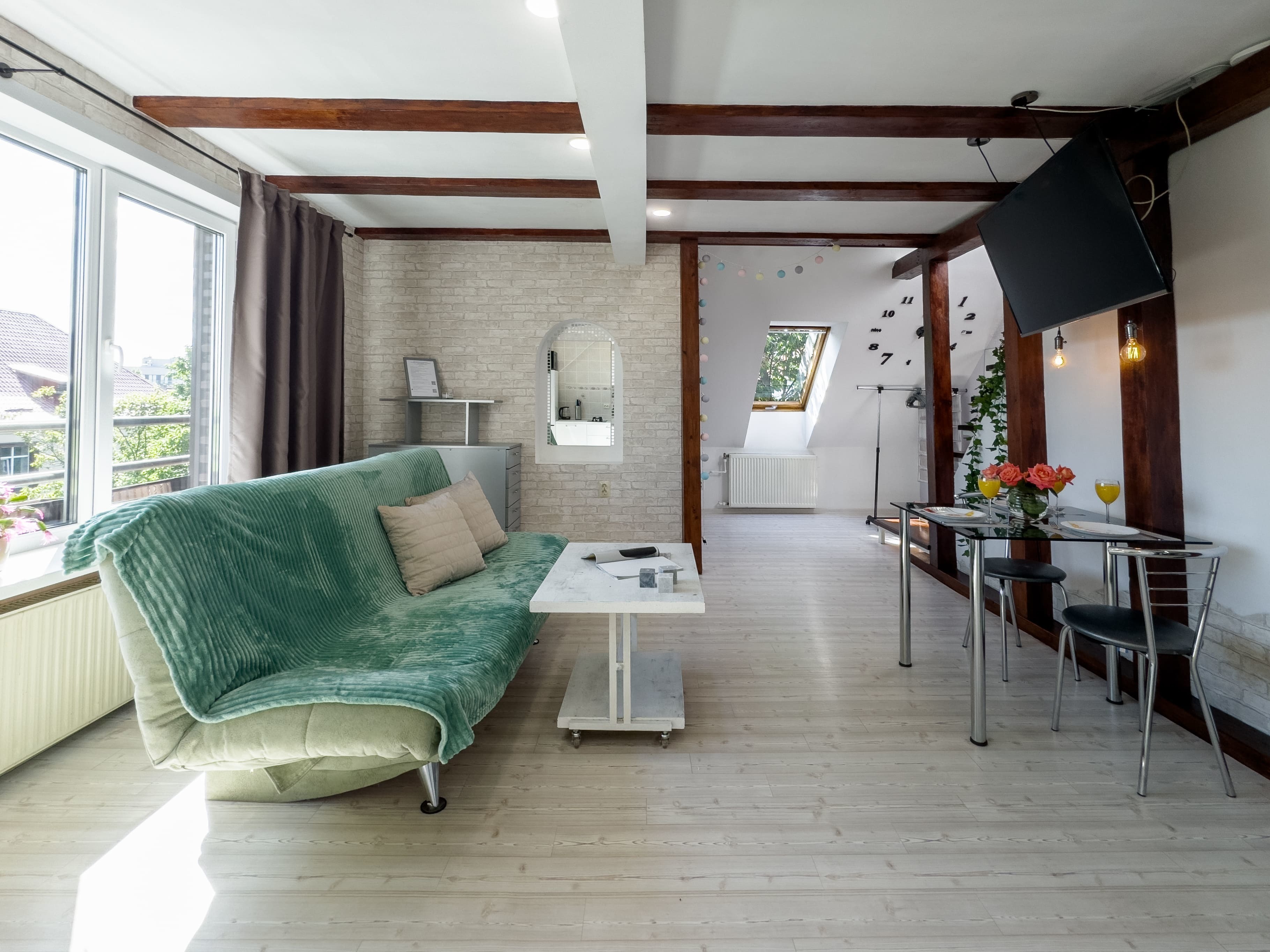 Квартира расположена на верхнем этаже, и прекрасный вид на район Амалиенау наверняка покорит сердца всех. В квартире есть все необходимое для комфортного проживания. Мы трепетно относимся к каждой детали для того, чтобы каждый гость мог насладиться уютной, атмосферой. Квартира полностью оборудована всей необходимой техникой.