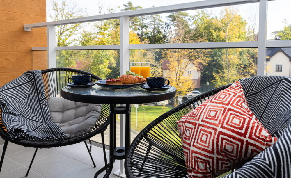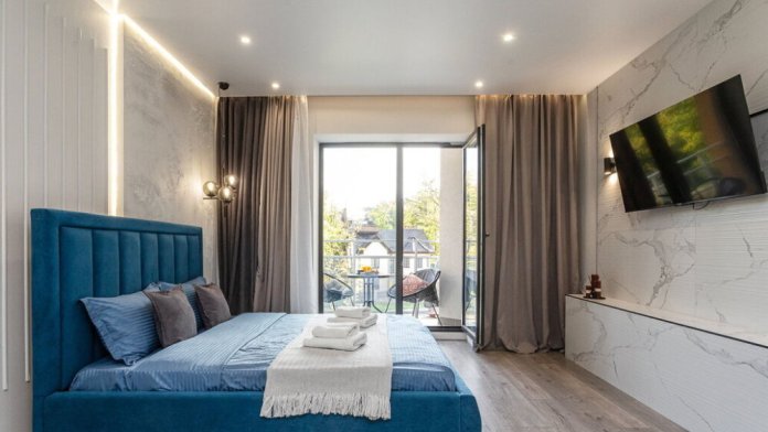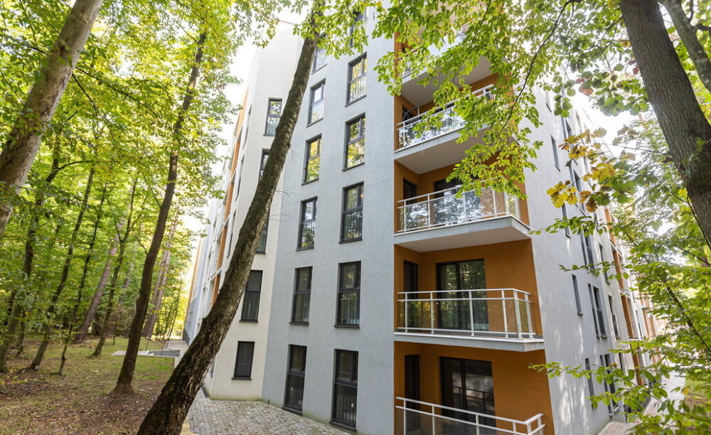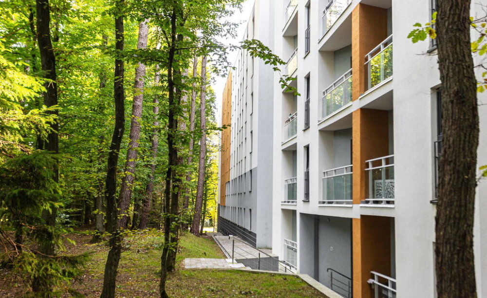 Современные апартаменты Klenovaya с дизайнерским ремонтом, расположенный в сосновом лесу.