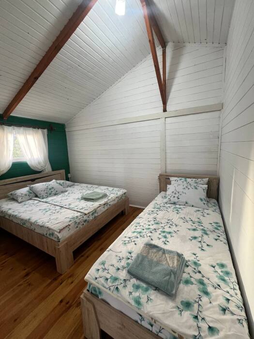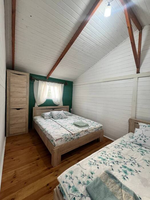— Коттеджи стандартного типа, вмещают в себя семью из 3 человек (двое взрослых и ребенок). В доме одна двуспальная кровать и доп. кровать).
