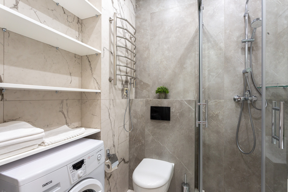 Санузел: с душевым ограждением, стиральной машиной, фен, утюг, гладильная доска, сушилка.