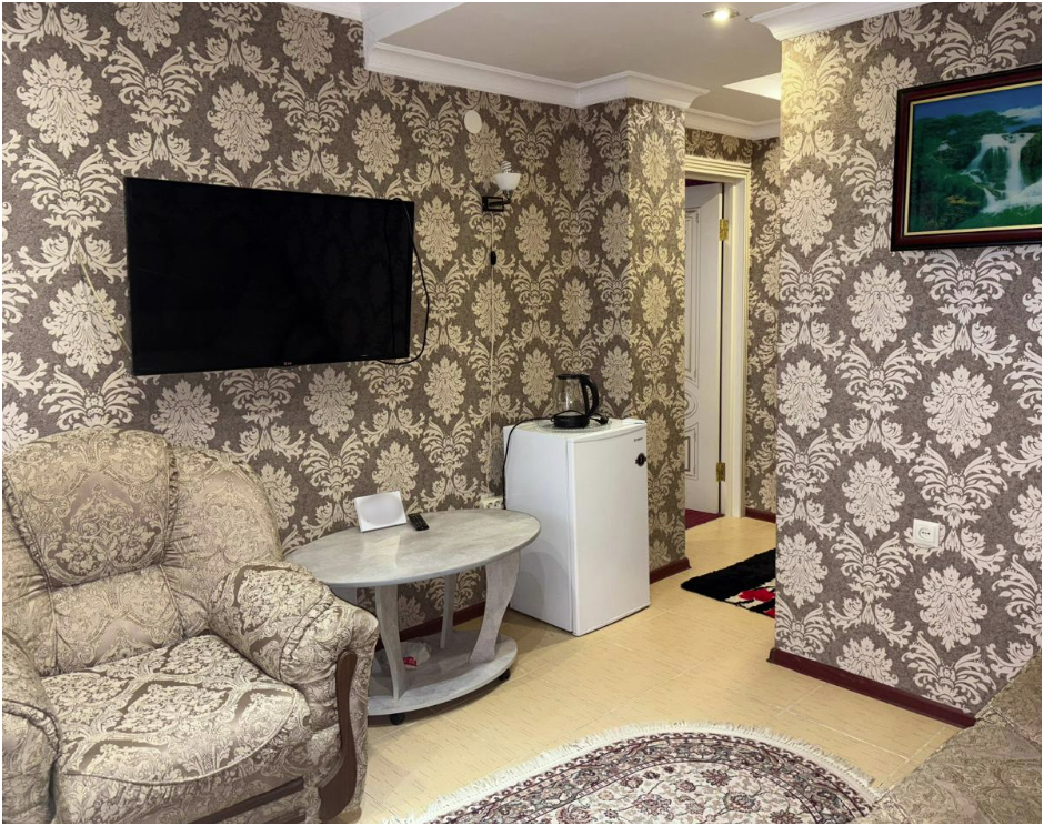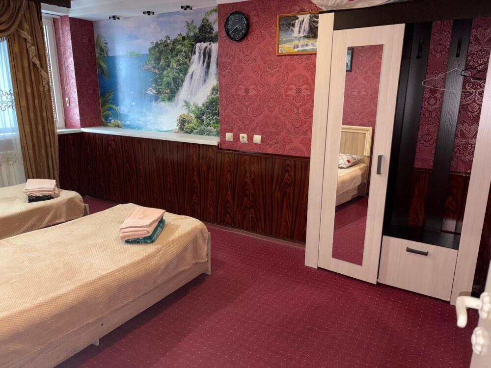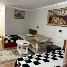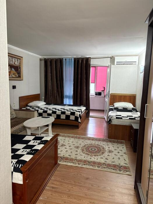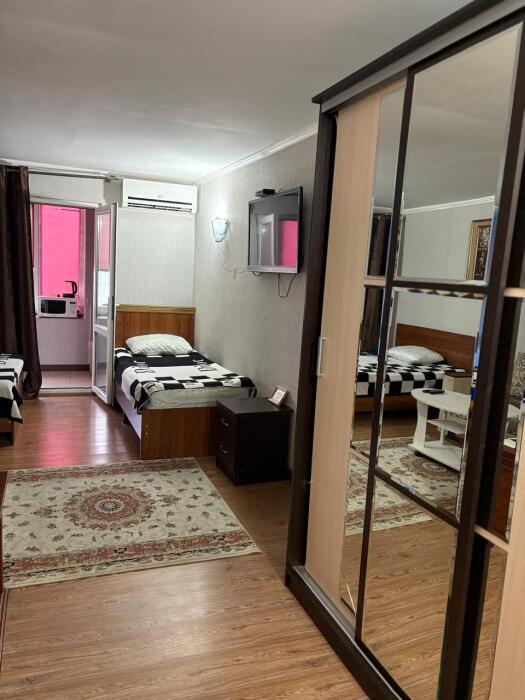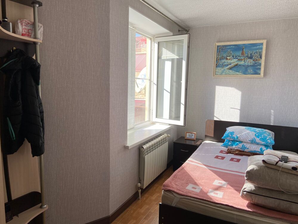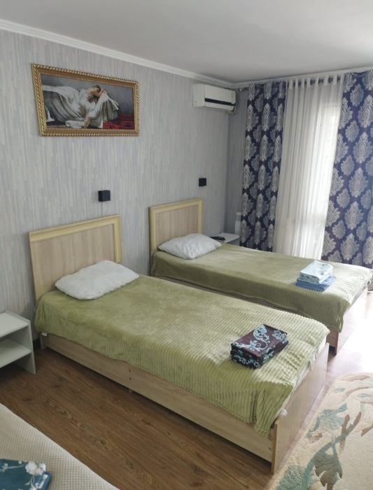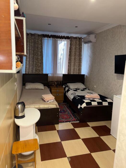 4-местный однокомнатный, большой номер, со всеми условиями и удобствами, красивый вид из окна на Каспийское море. Номер находится на втором этаже.
