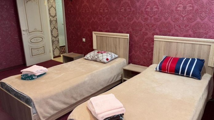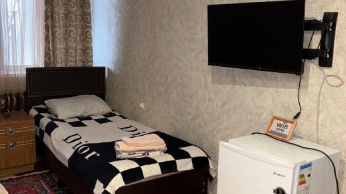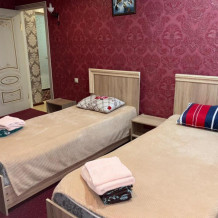 Два этажа, номера со свежим ремонтом, имеются все условия, очень красивый вид с окна на Каспийское море. В каждом номере свой санузел, кондиционер, холодильник, телевизор, столик, шкаф, балкон.