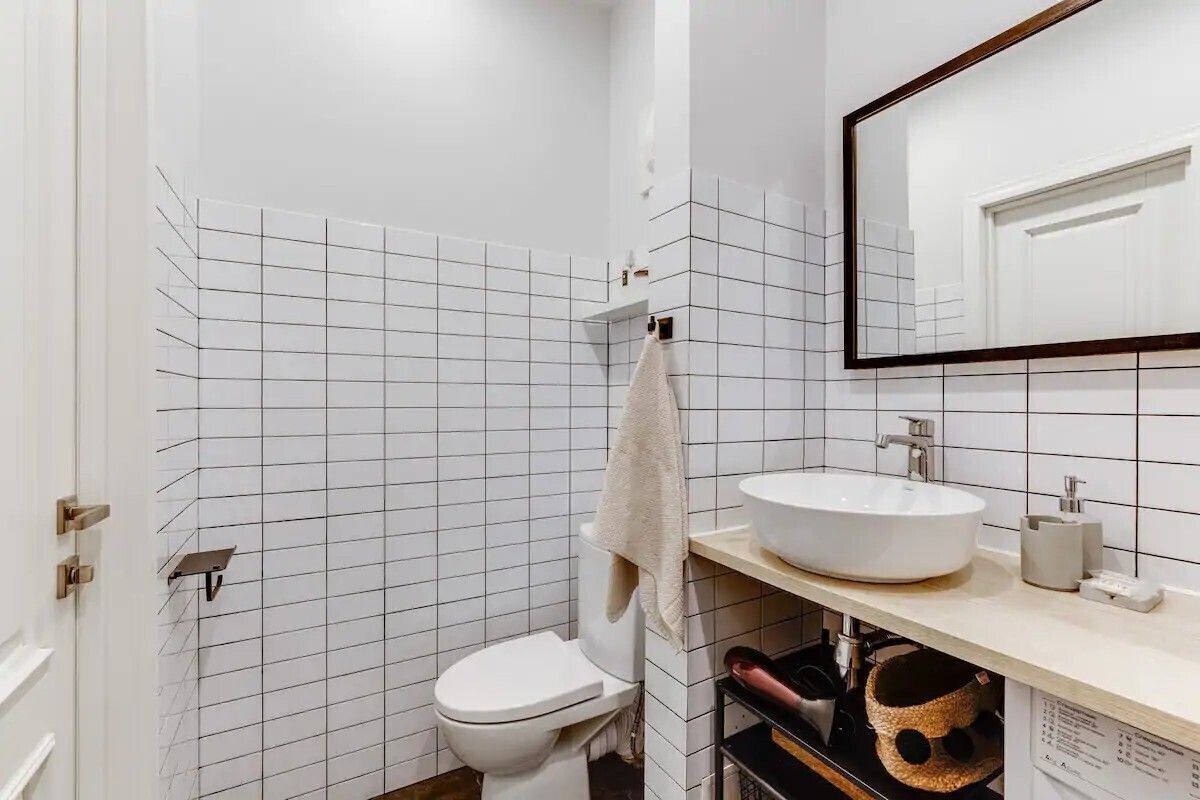 В квартире есть удобный диван и большая двуспальная кровать, а также небольшая коллекция интересных книг. В просторной ванной комнате всегда будут мягкие полотенца и ароматные гели для душа. Задержитесь подольше квартира подходит для длительного проживания. В гардеробной достаточно места, чтобы разместить ваши личные вещи. Вам не нужно тратиться на химчистку в квартире есть все необходимое для стирки: стиральная машина, сушилка для одежды, утюг и гладильная доска.