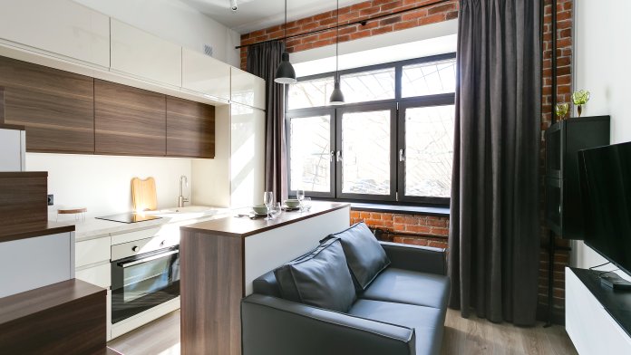 Современные двухуровневые апартаменты недалеко от м. Динамо и Белорусского вокзала для пребывания 4 гостей.