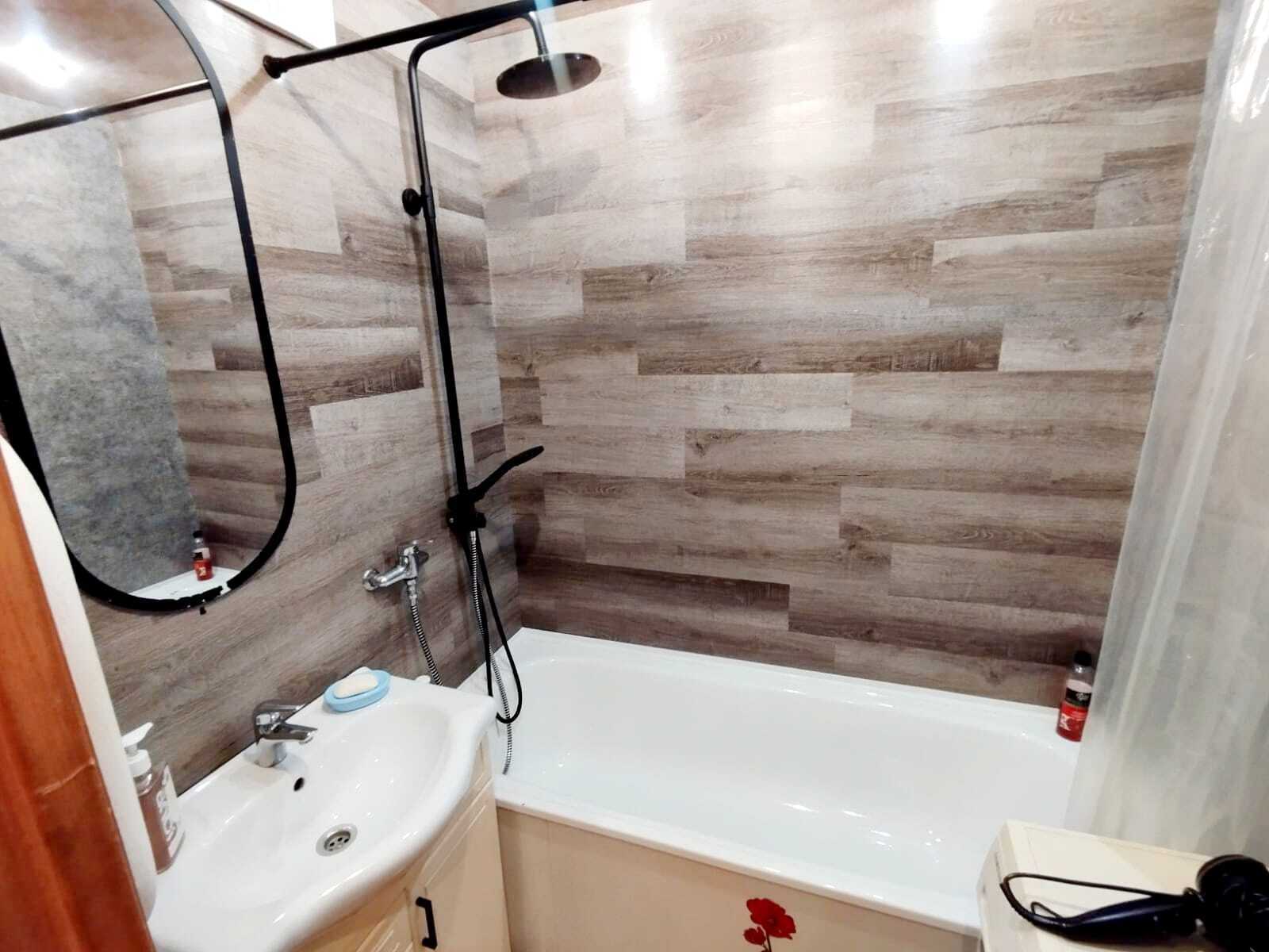 Хороший ремонт, стеклопакеты, ламинат. Есть вся необходимая мебель для комфортного проживания: двухспальная тахта, мягкая мебель, бытовая техника, санузел «под ключ». Стиральная машина, плазменный ТВ, посуда, всё необходимое для комфортного проживания. Безлимитный Wi-Fi Интернет.
