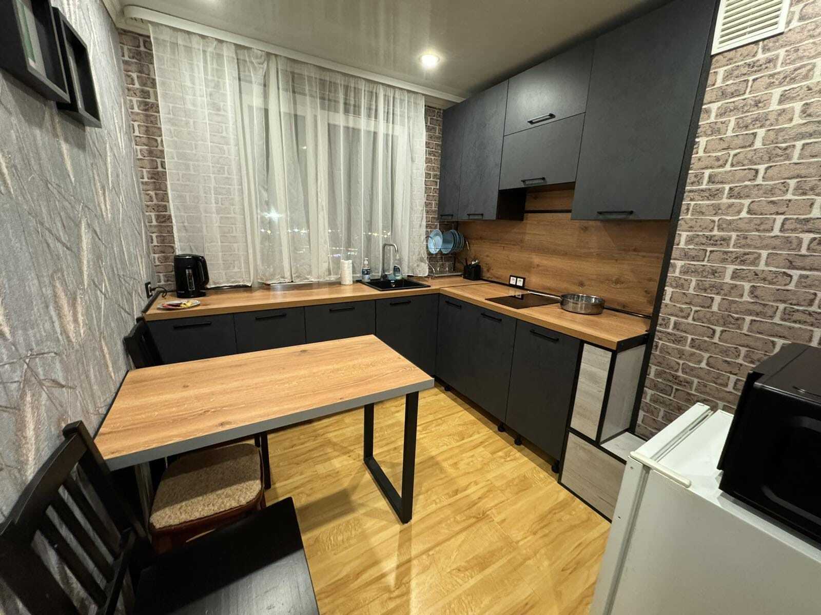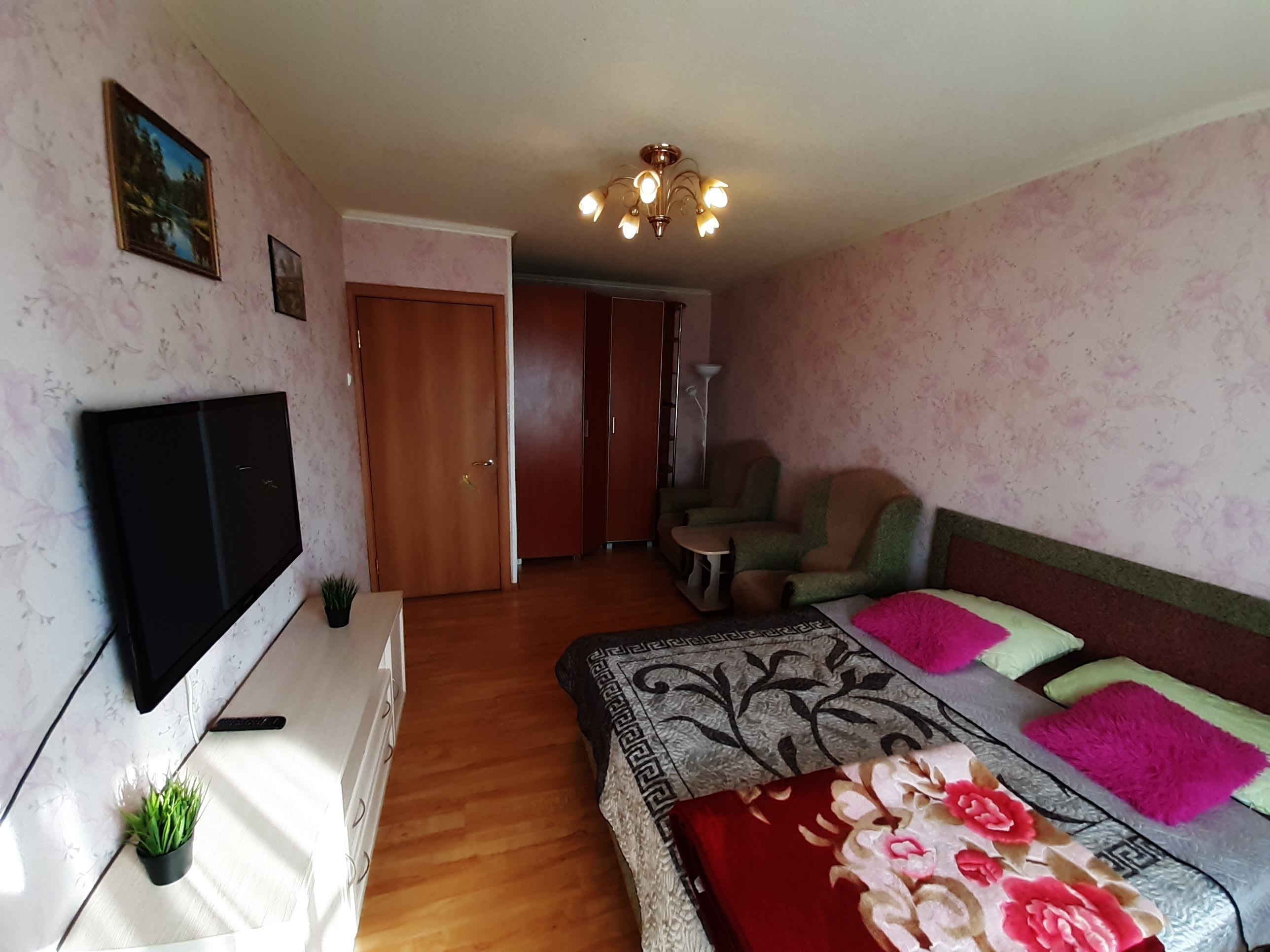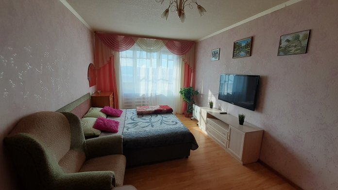 Хороший ремонт, стеклопакеты, ламинат. Есть вся необходимая мебель для комфортного проживания: двухспальная тахта, мягкая мебель, бытовая техника, санузел «под ключ». Стиральная машина, плазменный ТВ, посуда, всё необходимое для комфортного проживания. Безлимитный Wi-Fi Интернет.