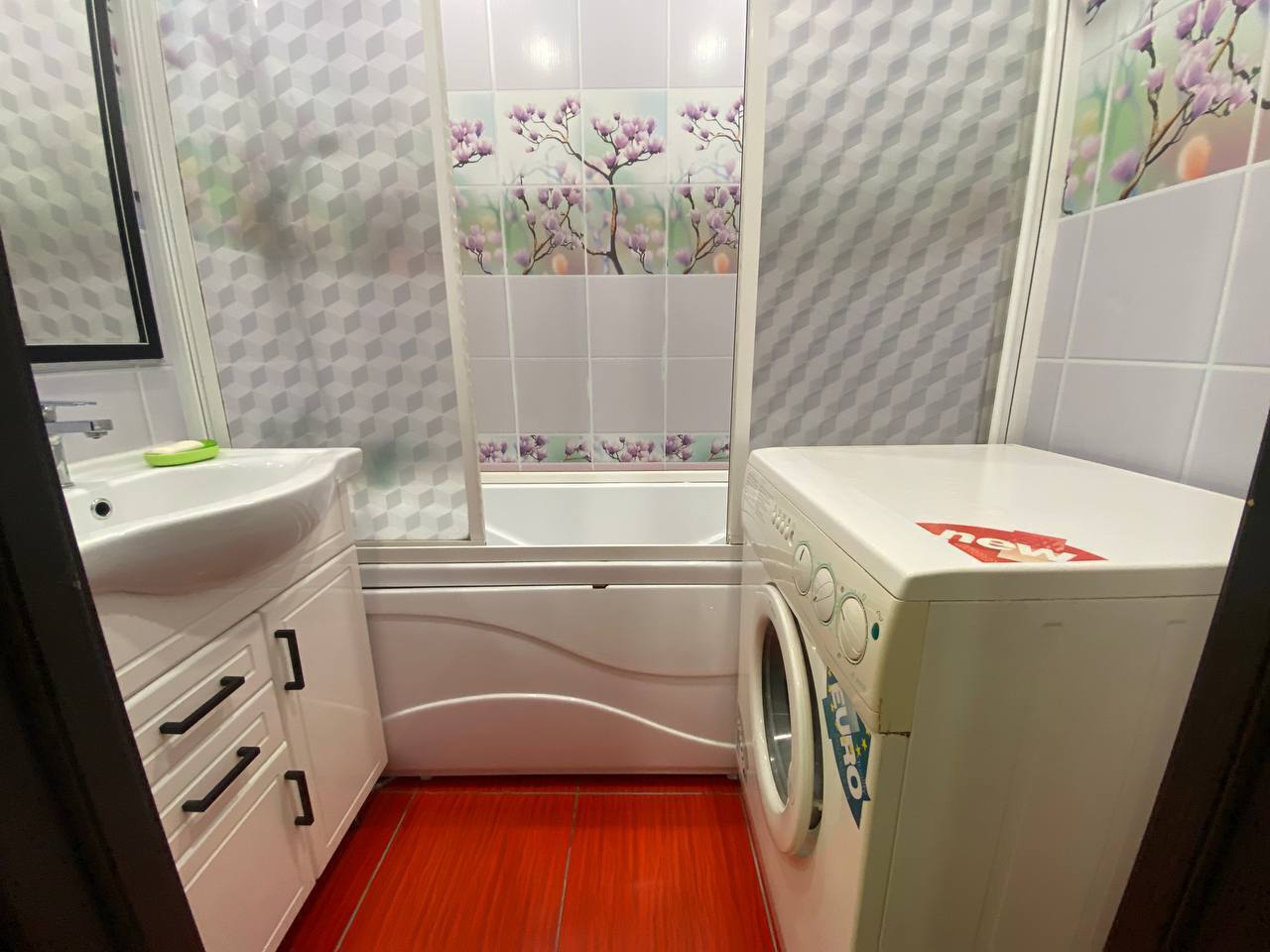Квартира полностью оборудована всем необходимым для проживания: TV, интернет, двухспальная тахта, кресла, электрическая плита, стиральная машина, электрочайник, полный набор посуды, СВЧ, утюг, большие махровые полотенца, просторная ванная комната, журнальный столик.