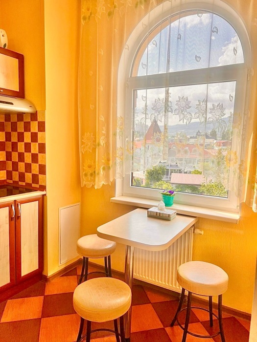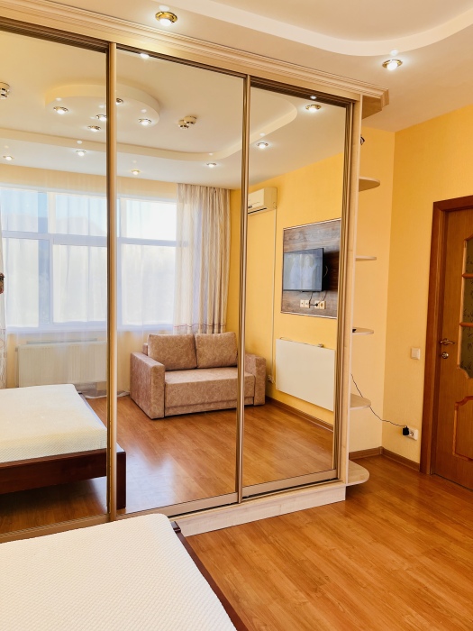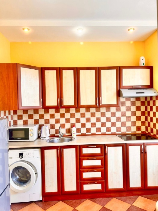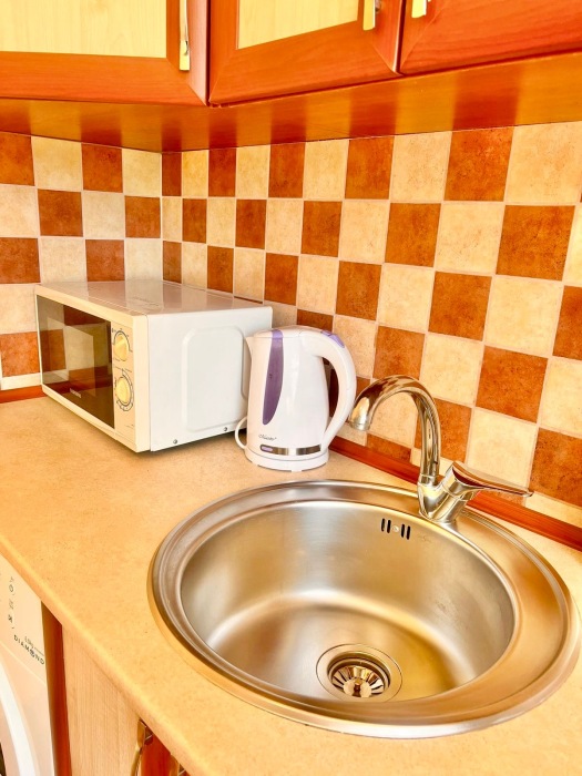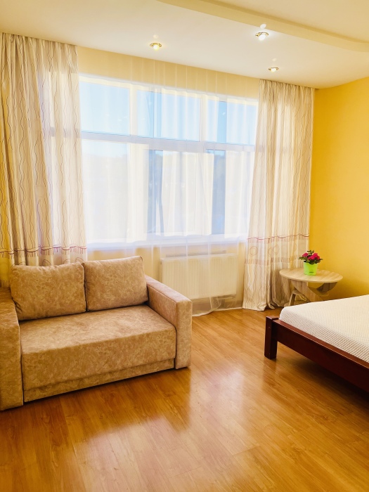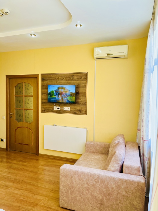 В квартире есть все необходимое для комфортного проживания: кровать, диван, кондиционер, стиральная машина, телевизор (кабельное ТV), санузел/душ, горячая и холодная вода постоянно, постельное белье, полотенца, утюг, кухня – электроплита, электрочайник, холодильник, посуда, микроволновка. Вид из окон панорамный на горы и город.