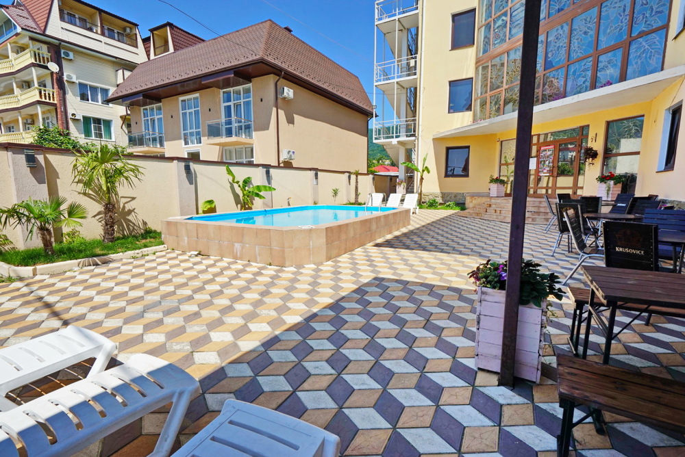 Гостевой дом «Пятница» расположен в тихом районе Лазаревского, вдали от шумных трасс и ночных клубов. Это отличный вариант для тех, кто ищет уютный отдых с семьей или компанией и ценит домашнюю атмосферу . Гостей ждет гостеприимная атмосфера, чистота и возможность с комфортом разместиться как в классических номерах, так и в просторных апартаментах. Внутренний двор гостевого дома — настоящая зона отдыха, где каждый найдет занятие по душе: