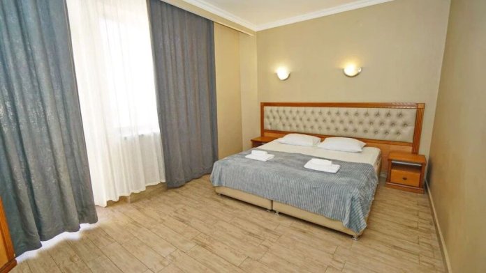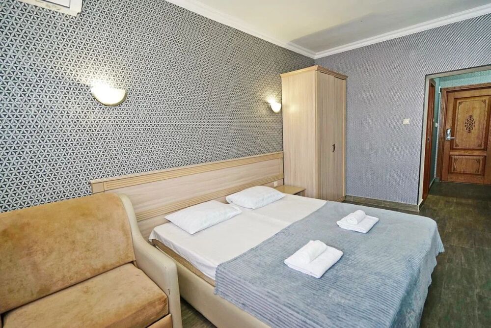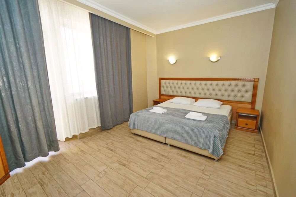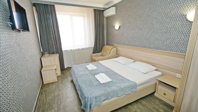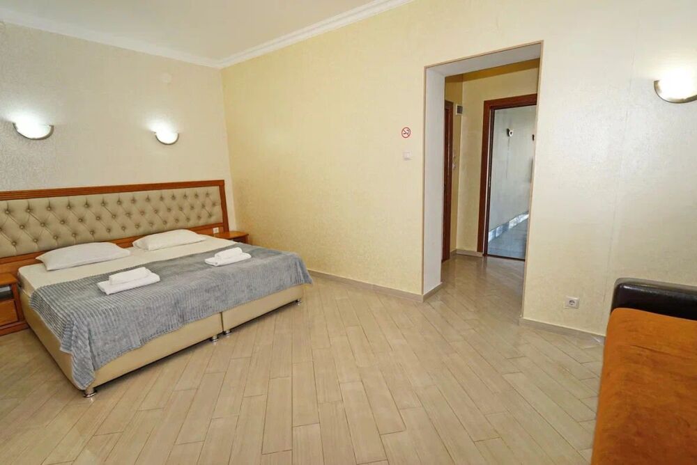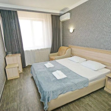 Комфортные номера со всей необходимой техникой. Кровати трансформеры две односпальные или одна двуспальная кровать, прикроватные тумбы, стол, сулья, шкаф, вешалки, зеркало, постельное белье, полотенца, фен, телевизор, интернет кабельное, кондиционер, холодильник, санузел совмещённый.