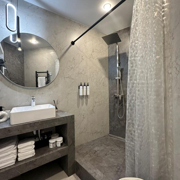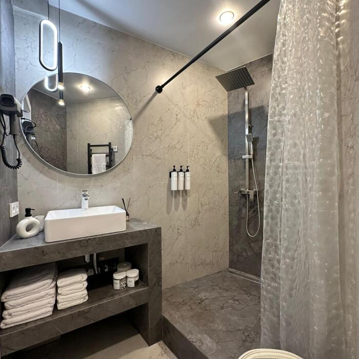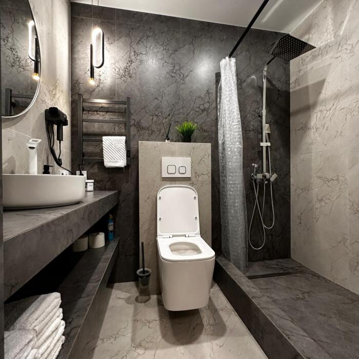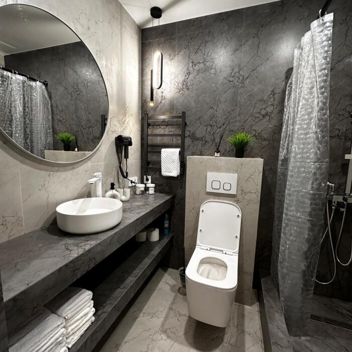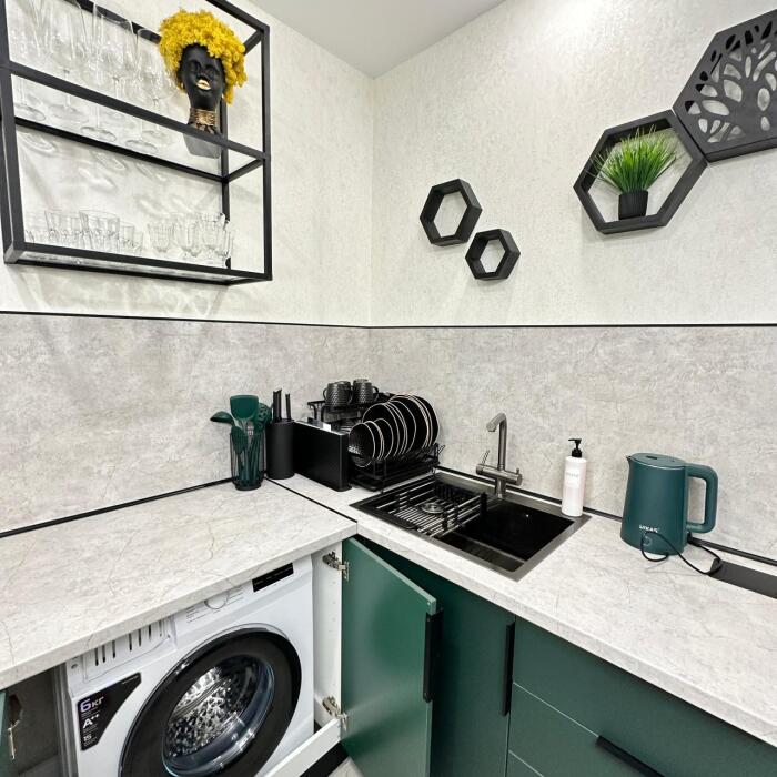 Стильные Апартаменты с кухней на 1-м этаже: Для гостей, ценящих максимум свободы и домашний уют. Это полноценное жилье со своей обеденной зоной, оборудованы всем необходимым для независимого проживания.