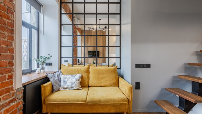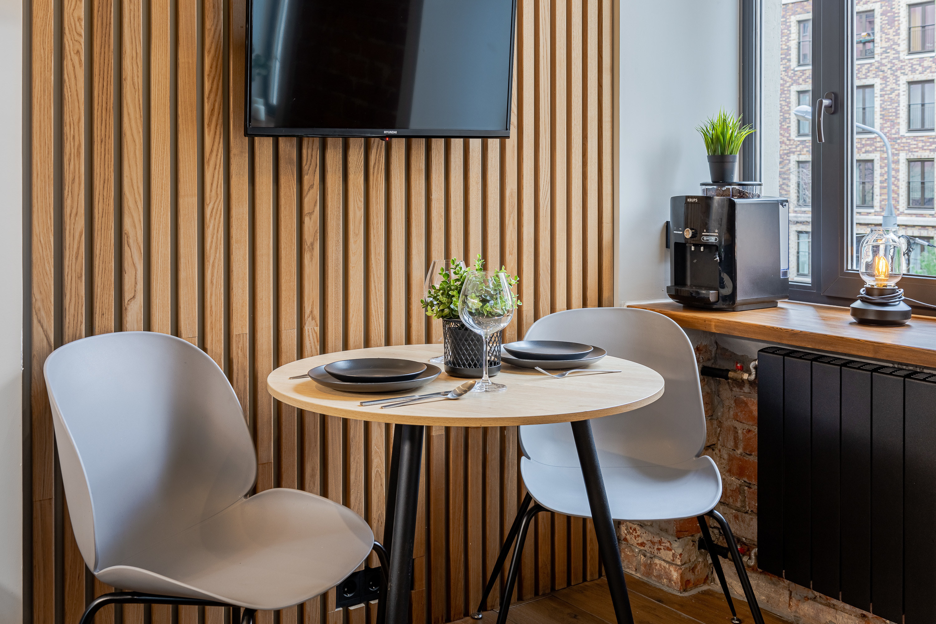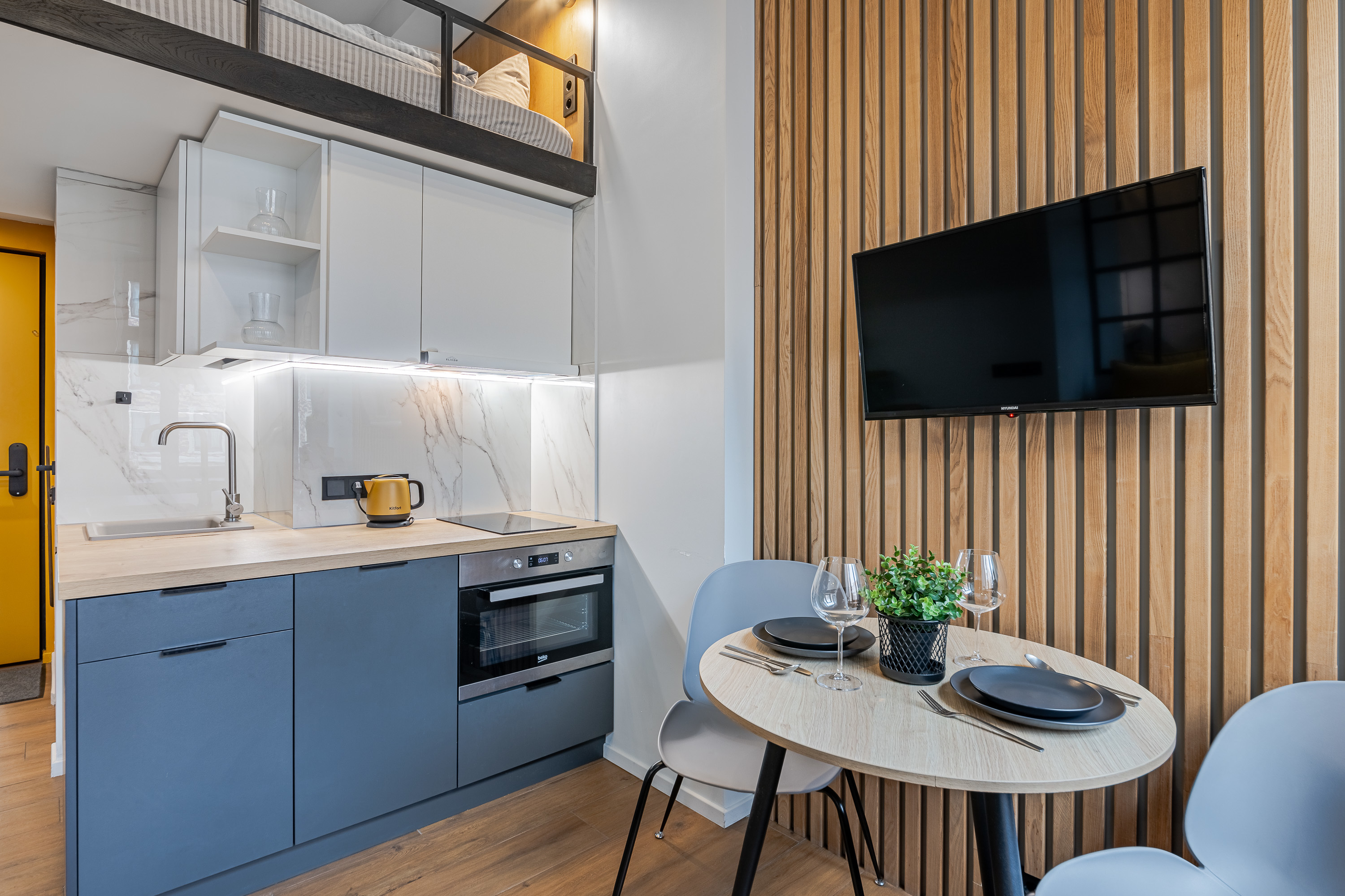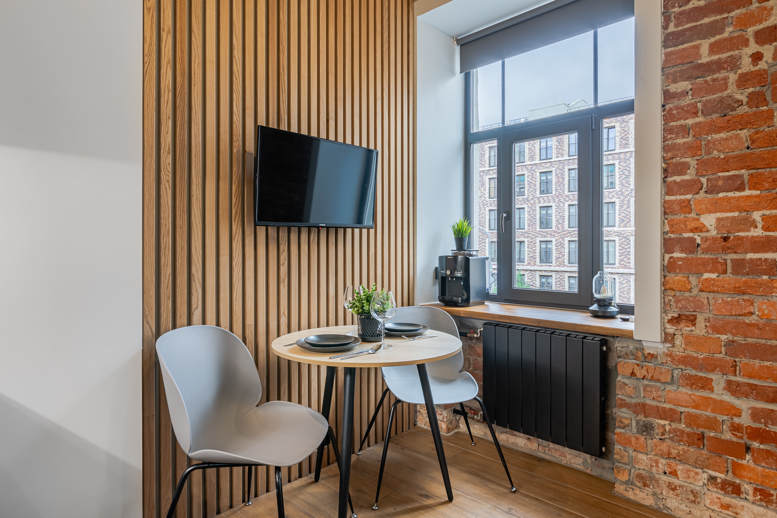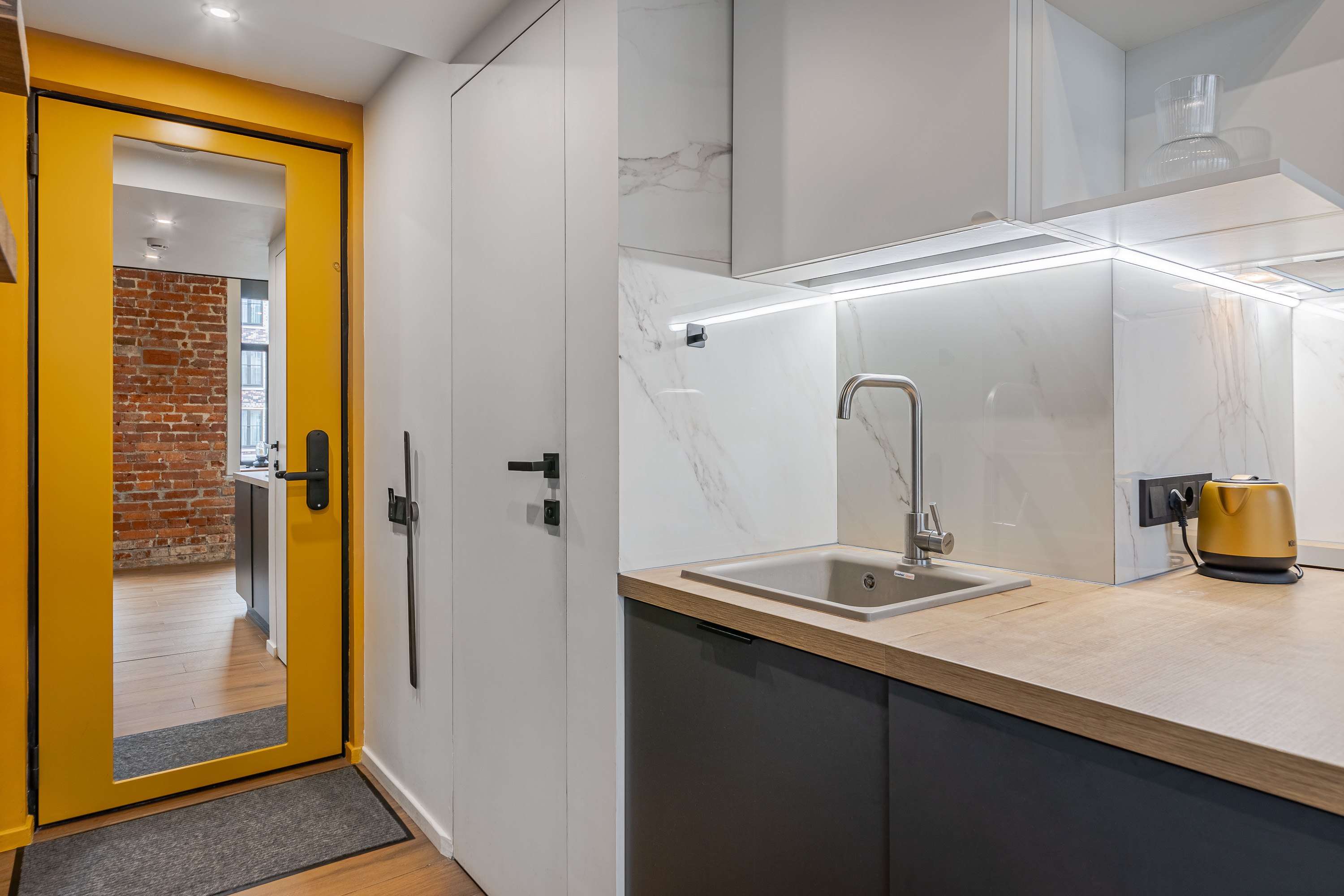 Отдельная спальная зона на втором уровне лофта для полноценного отдыха - вся необходимая мебель для проживания: 4 спальных места: двуспальная кровать и раскладывающийся диван для 2х гостей. Кухонный уголок со всей необходимой посудой для приготовления ваших кулинарных шедевров.