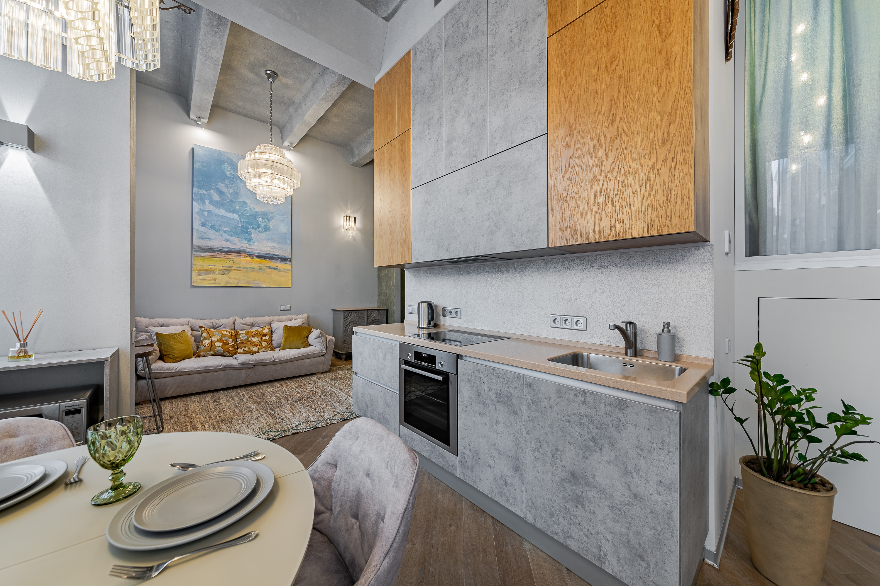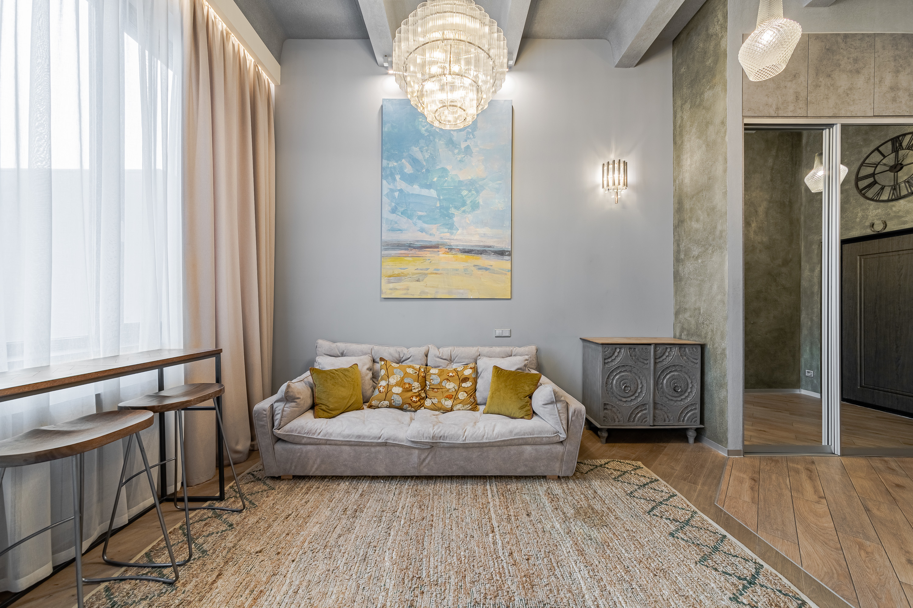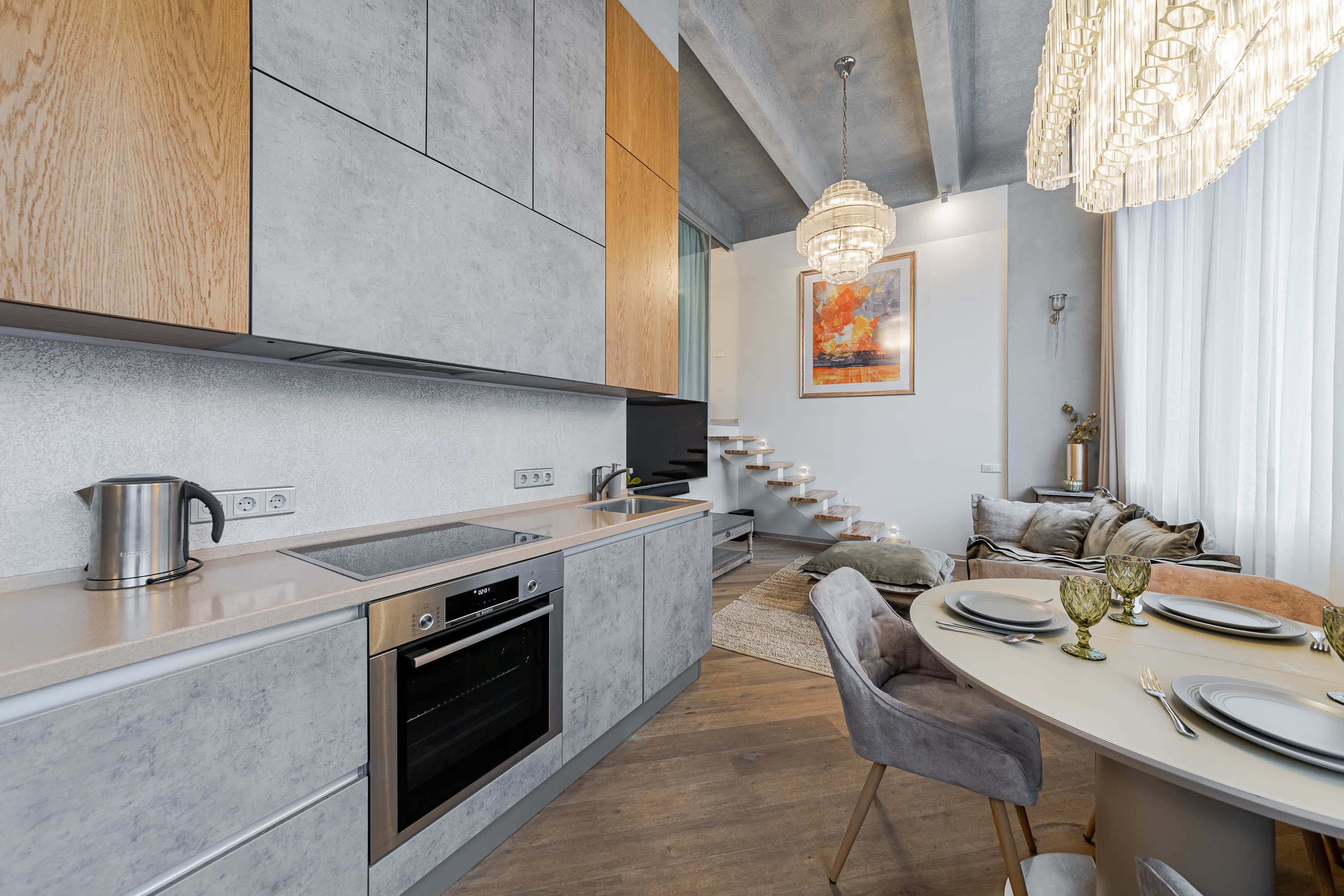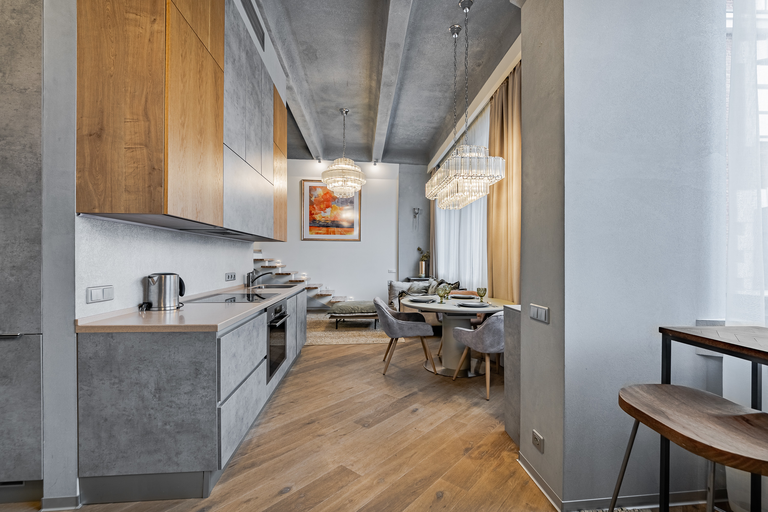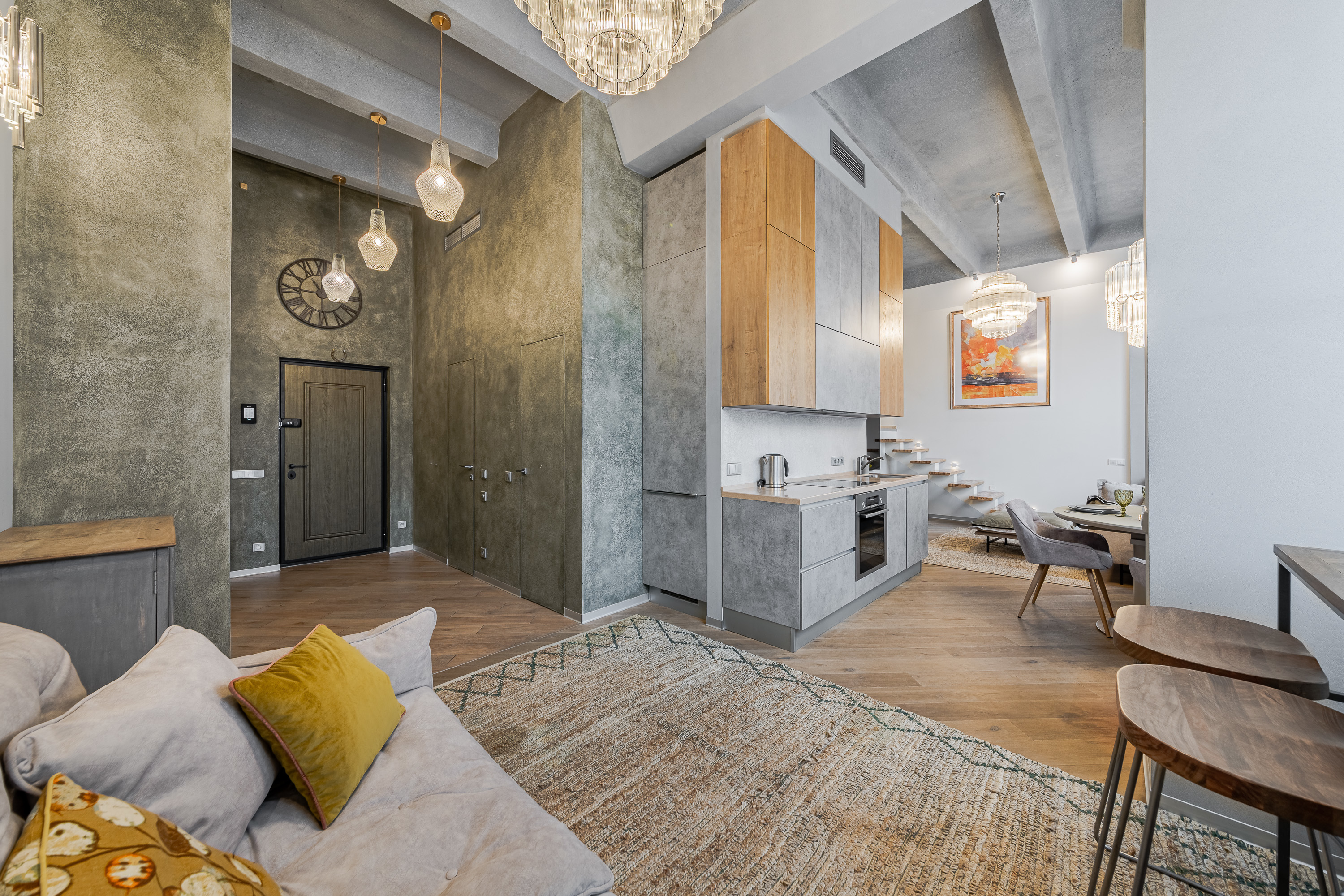В апартаментах выполнен высококлассный дизайнерский ремонт. Гостей ждет полностью экипированная кухня с СВЧ, плитой и духовкой, вытяжкой, холодильником и электрическим чайником, посудомоечной машинкой. Современная ванная комната с душем, где есть все мыльные принадлежности и полотенца. Также присутствует отдельная постирочная, где Вы сможете легко постирать и отгладить вещи. В гостиной расположено два удобных дивана для комфортных и уютных встреч с друзьями, теплые полы, сплит система. На втором этаже расположена стильная спальня с двуспальной кроватью и новым удобным матрасом - то, что нужно после длительных прогулок по Москве.