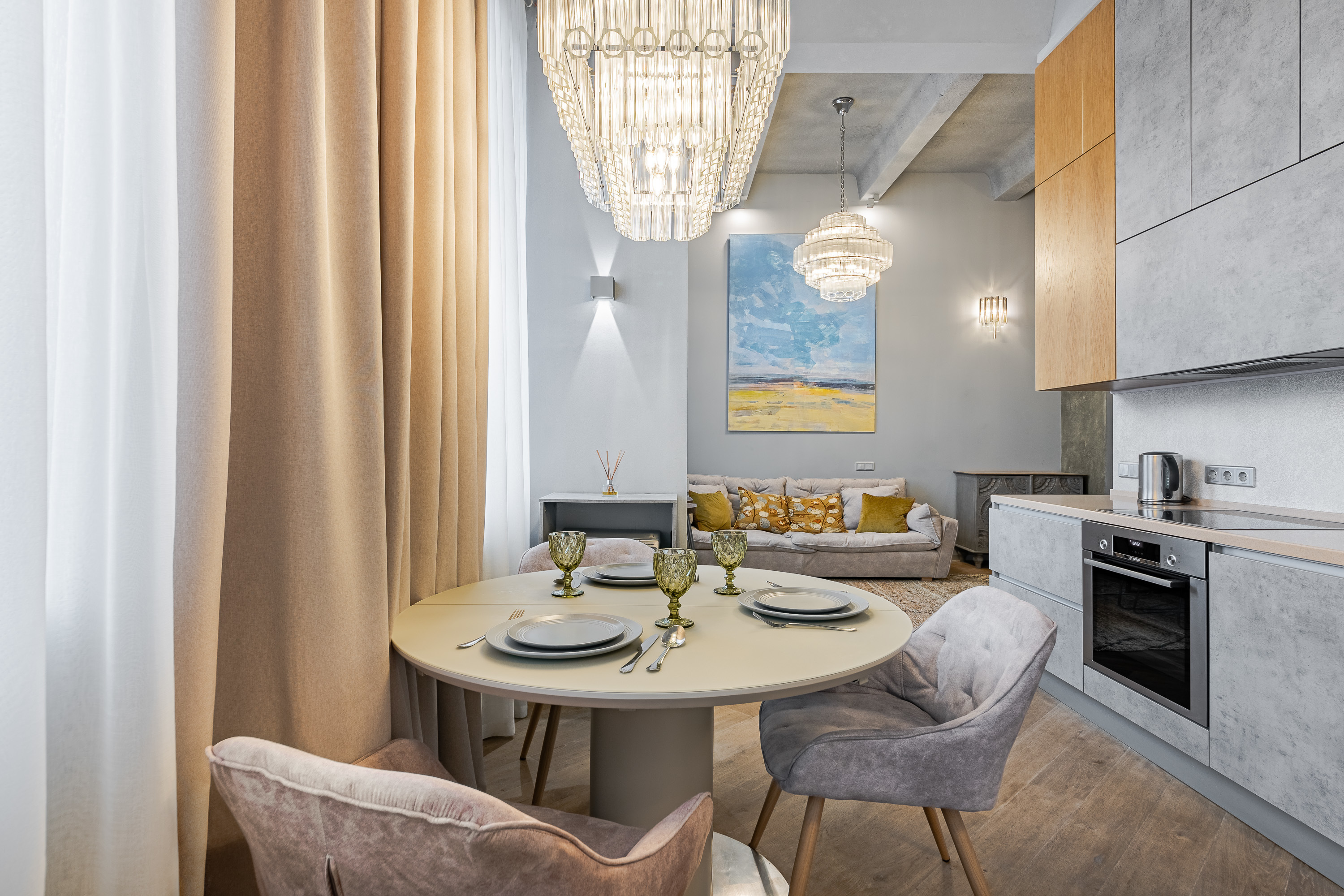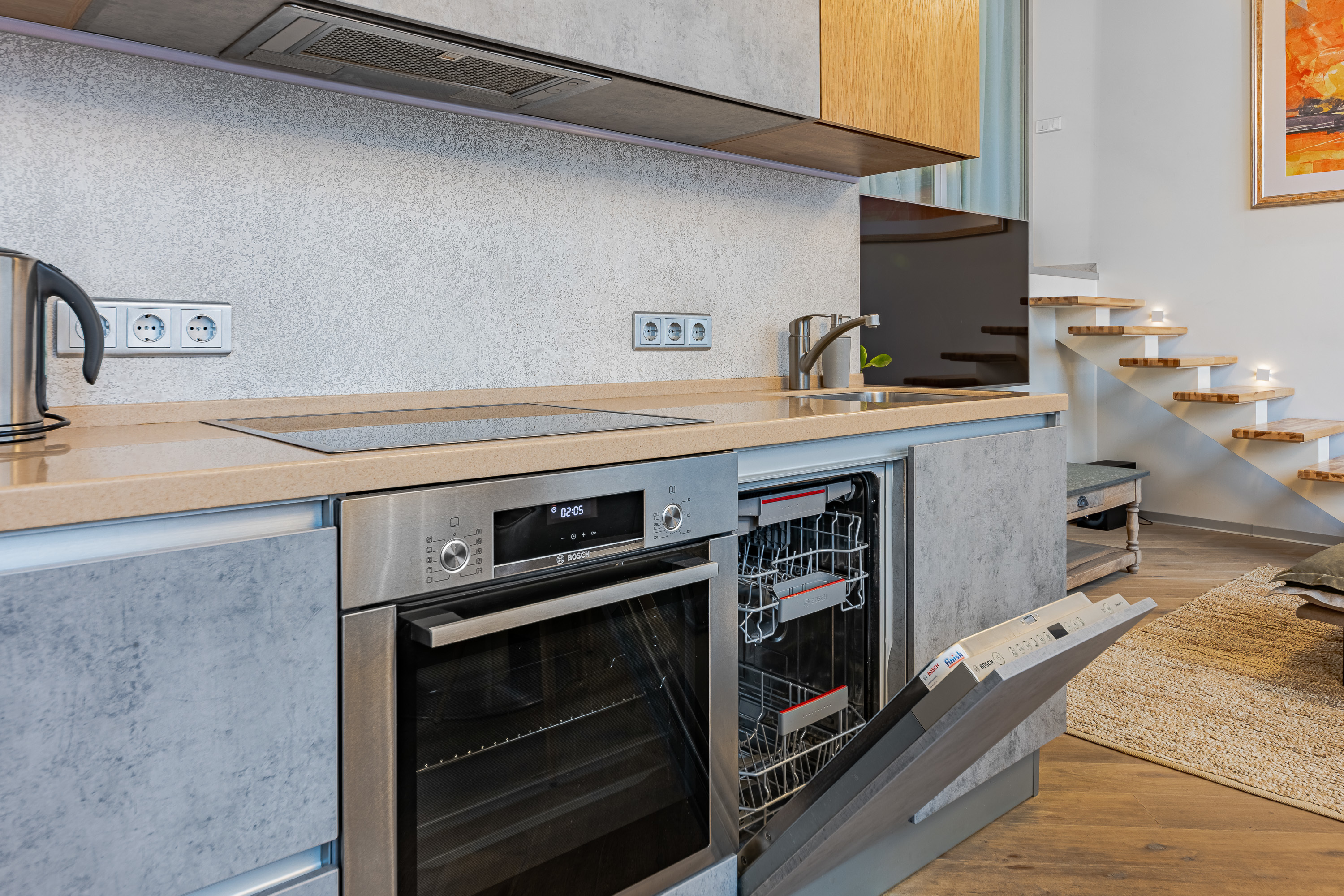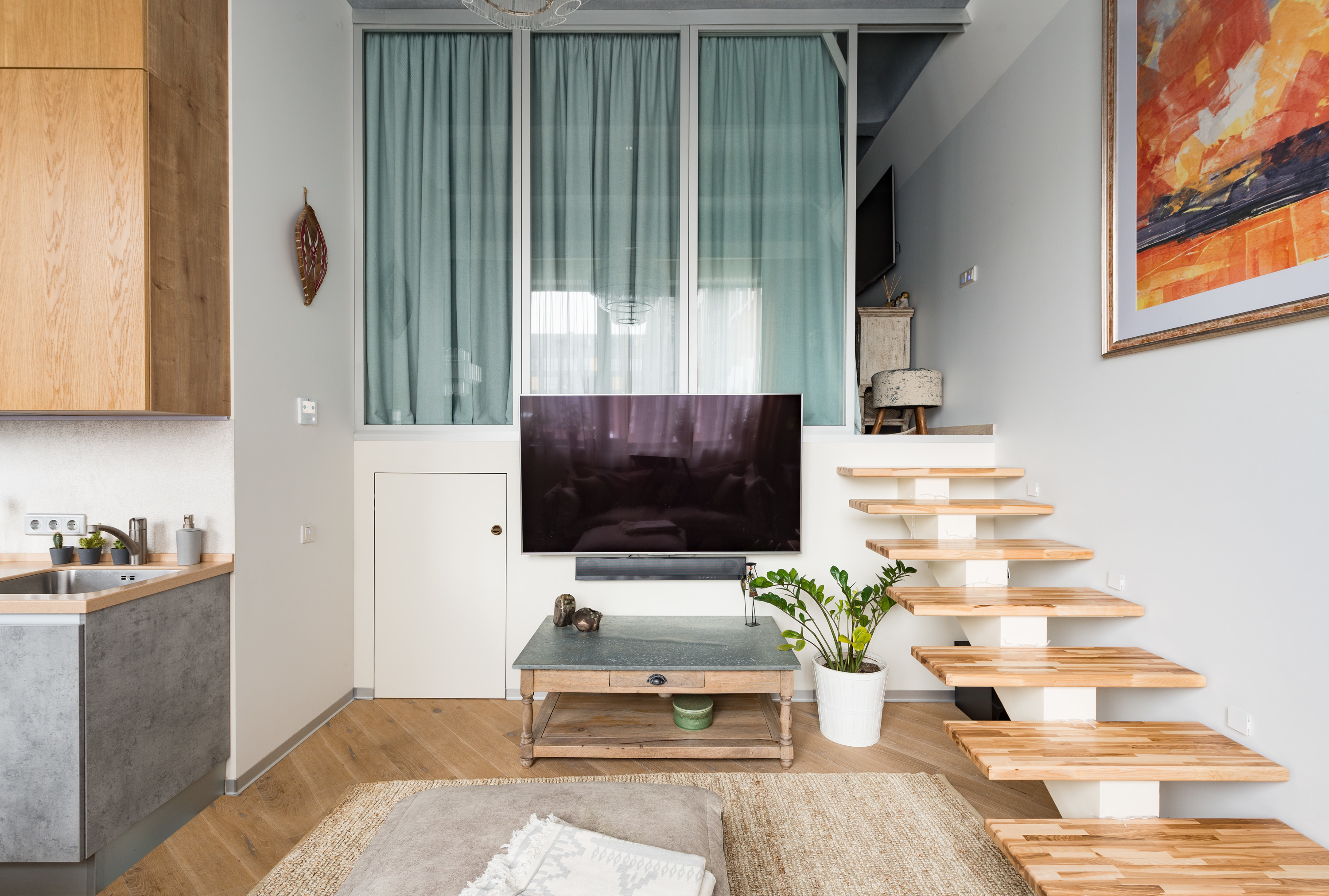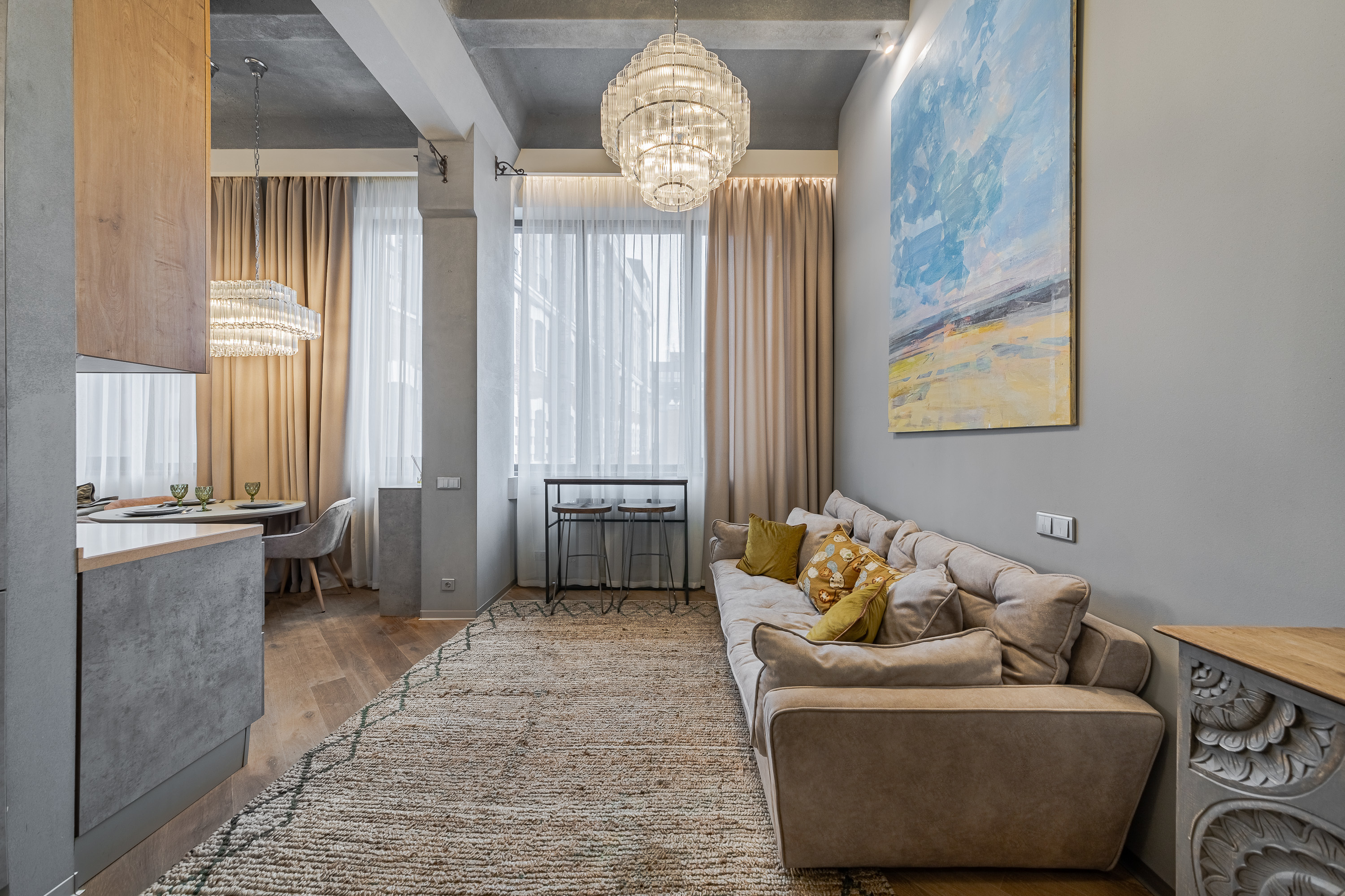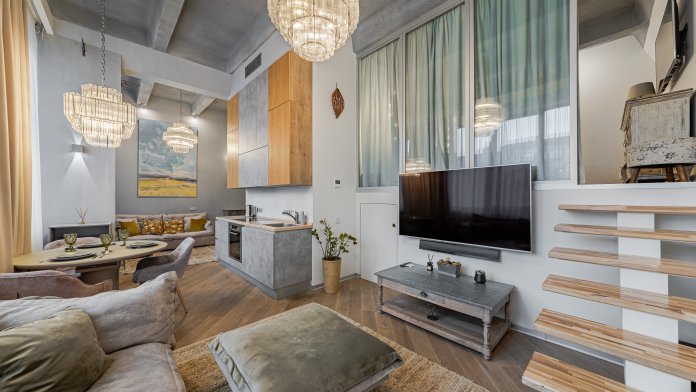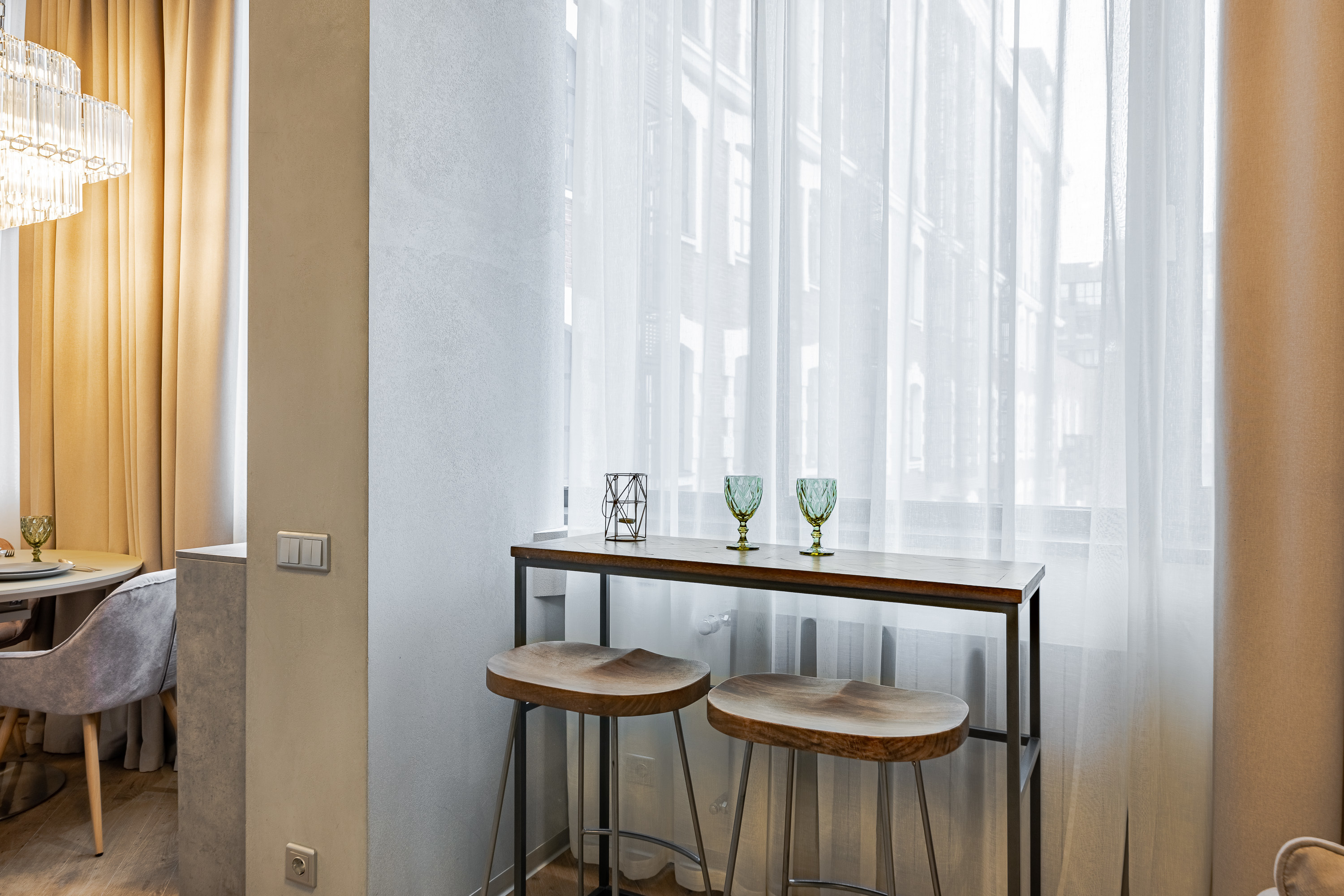 В апартаментах выполнен высококлассный дизайнерский ремонт. Гостей ждет полностью экипированная кухня с СВЧ, плитой и духовкой, вытяжкой, холодильником и электрическим чайником, посудомоечной машинкой. Современная ванная комната с душем, где есть все мыльные принадлежности и полотенца. Также присутствует отдельная постирочная, где Вы сможете легко постирать и отгладить вещи. В гостиной расположено два удобных дивана для комфортных и уютных встреч с друзьями, теплые полы, сплит система. На втором этаже расположена стильная спальня с двуспальной кроватью и новым удобным матрасом - то, что нужно после длительных прогулок по Москве.