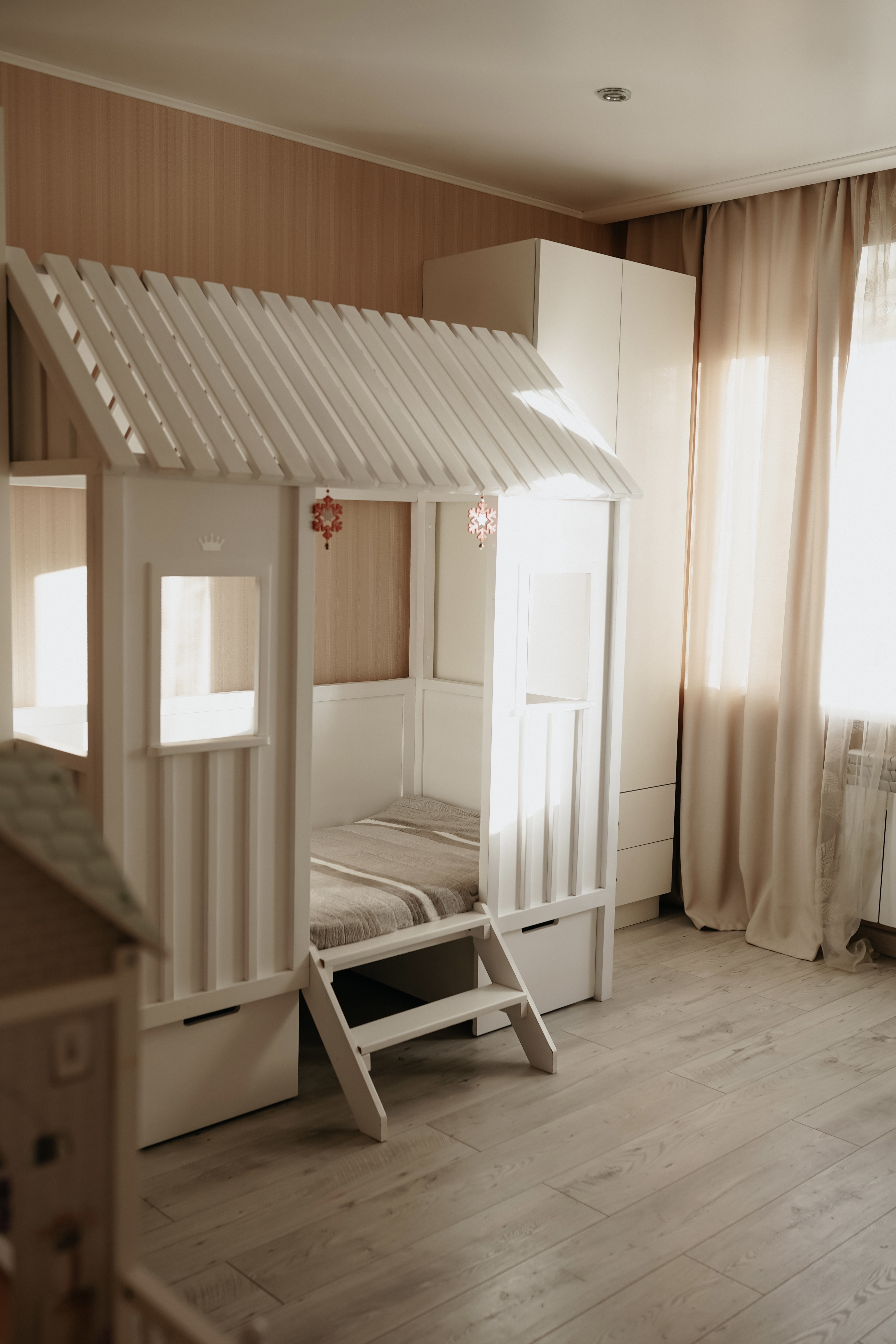 В детской шикарная кроватка со всем внутренним оснащением для ребенка.