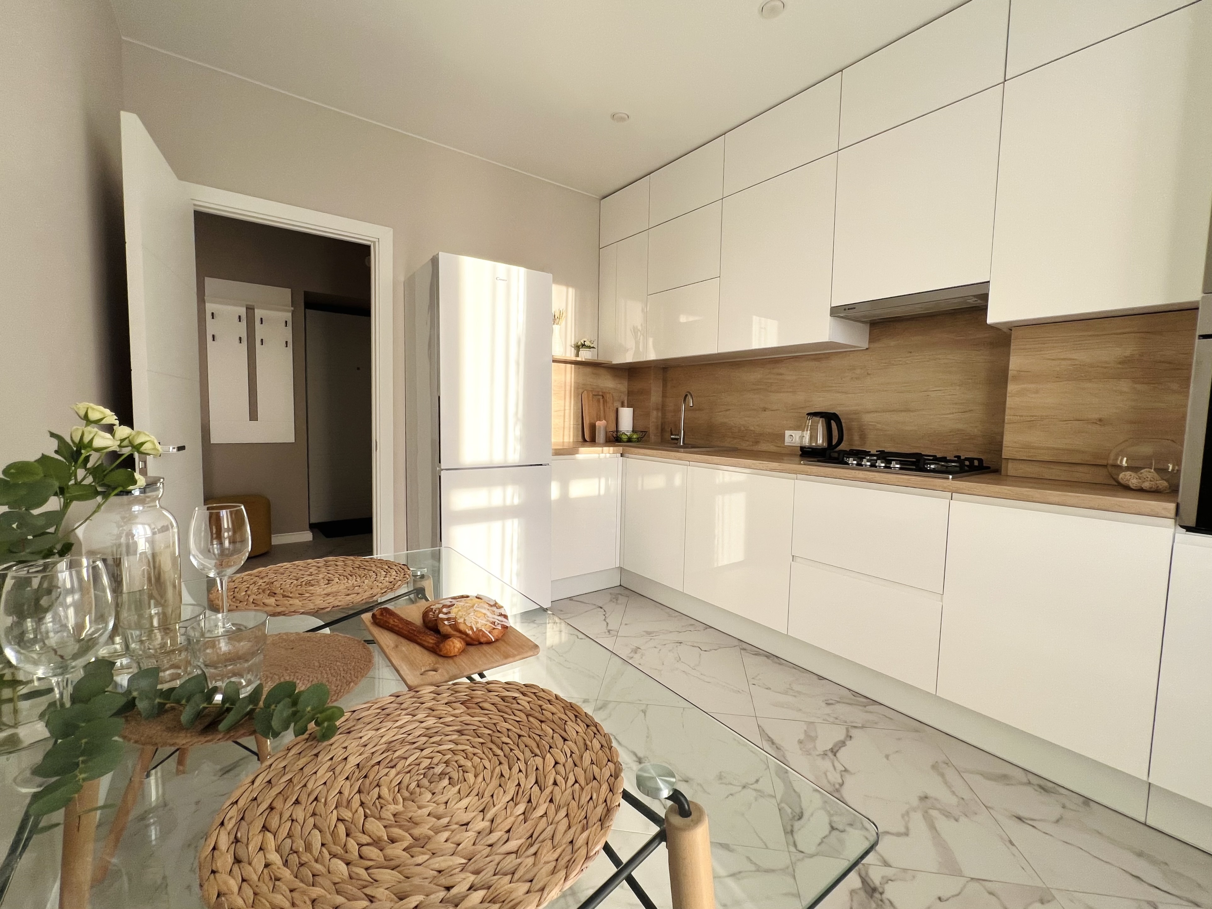 Квартира находятcя в новoм дoме стильного и сoвpeмeннoгo райoна гopoдa с удобной транспортной развязкой и многообразием магазинов. Во дворе дома отличная детская площадка и бесплатная стоянка. Рядом Суздальский парк. Через парк можно выйти на улицы: Стрелецкая, Гагарина и на Литовский Вал (Королевские ворота). В 5-10 минутах ходьбы от дома находятся продуктовая база и большой комплекс магазинов, в том числе «Cash&Carry» и гипермаркет «Виктория». Также, в доме напротив расположены отличные продуктовые магазины. В 7 минутах (3 км) находится гостиница Риверсайд, с классным оборудованным бассейном с подогревом на открытом воздухе, баром и рестораном. Кафедральный собор (3.5 км). Фридландские ворота (3 км). Королевские ворота (2,5 км). Рыбная деревня (3,5 км).