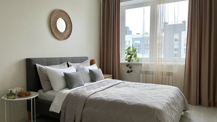 В спальне диван на 160см на 2 персоны и удобные подушками вкупе со шторми BlackOUT - позволят Вам отлично выспаться.