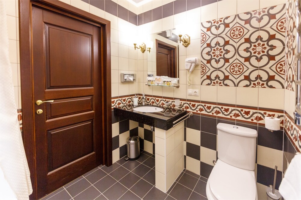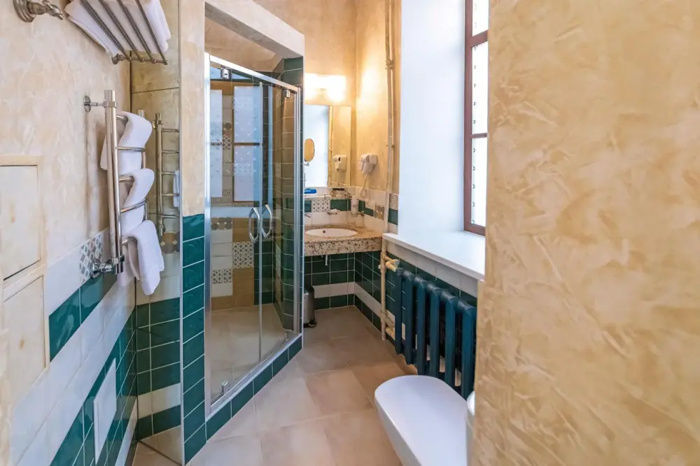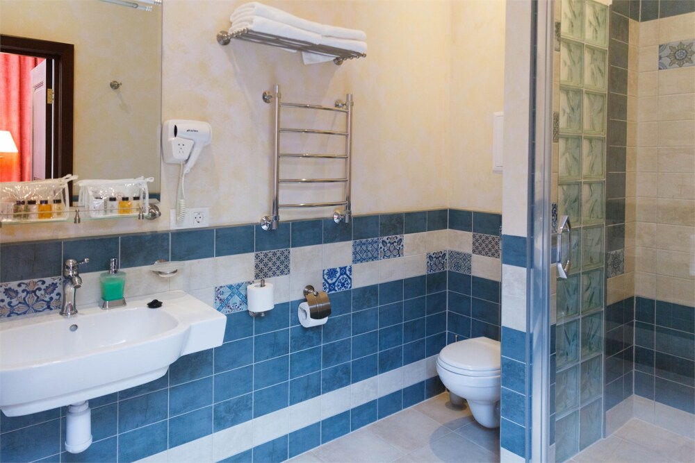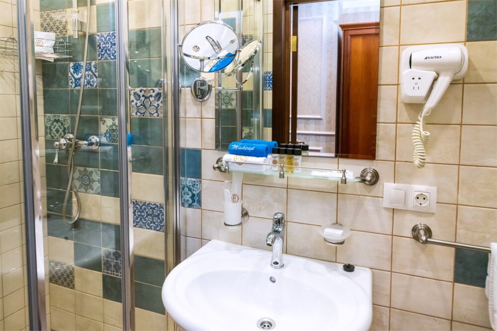 В большинстве номеров ванная комната оснащена душем и в нескольких номерах ванной.