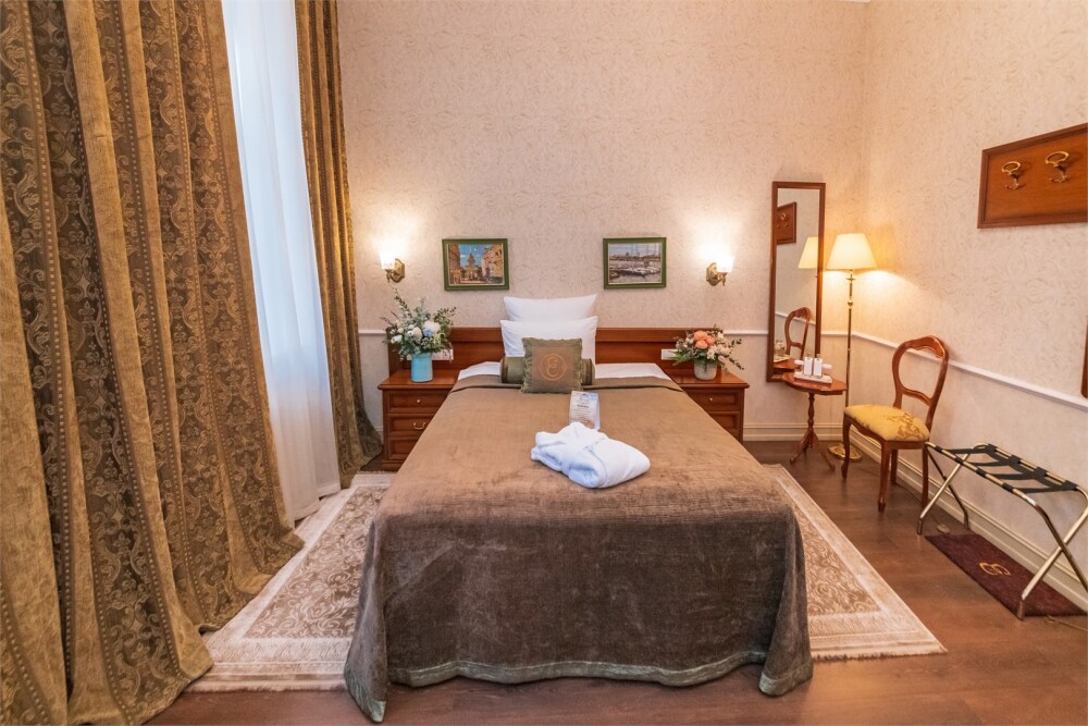 Номера данной категории имеют вид из окна в уютный внутренний дворик отеля или вид на улицу Миллионную. А для тех, кто предпочитает тишину, идеально подойдет номер с видом из окна на классический Петербургский двор-колодец.