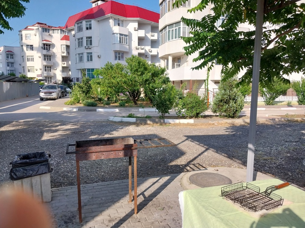 Во дворе кафе, рядом не дорогая столовая, много всяких кафе, чебуречных. на пляже много развлечений, есть пирс для рыбалки, волейбольная площадка, экскурсии по всему Крыму на выбор, рядом красивый ухоженный парк, продуктовые и овощные магазины, железнодорожный вокзал и автостанция.
