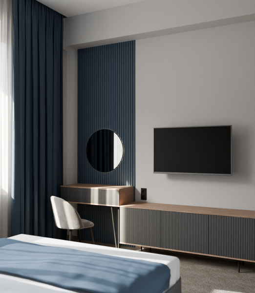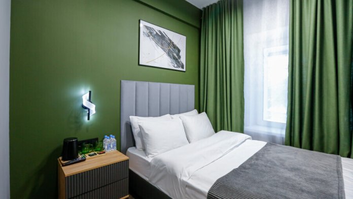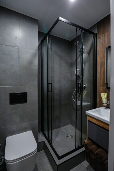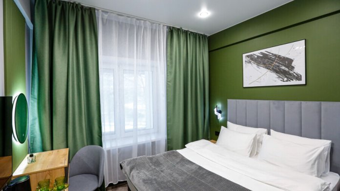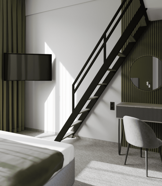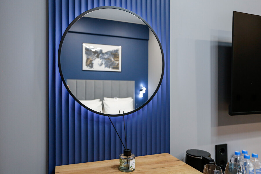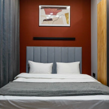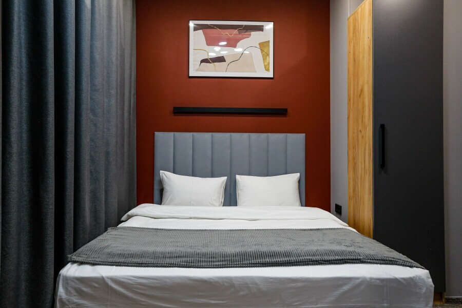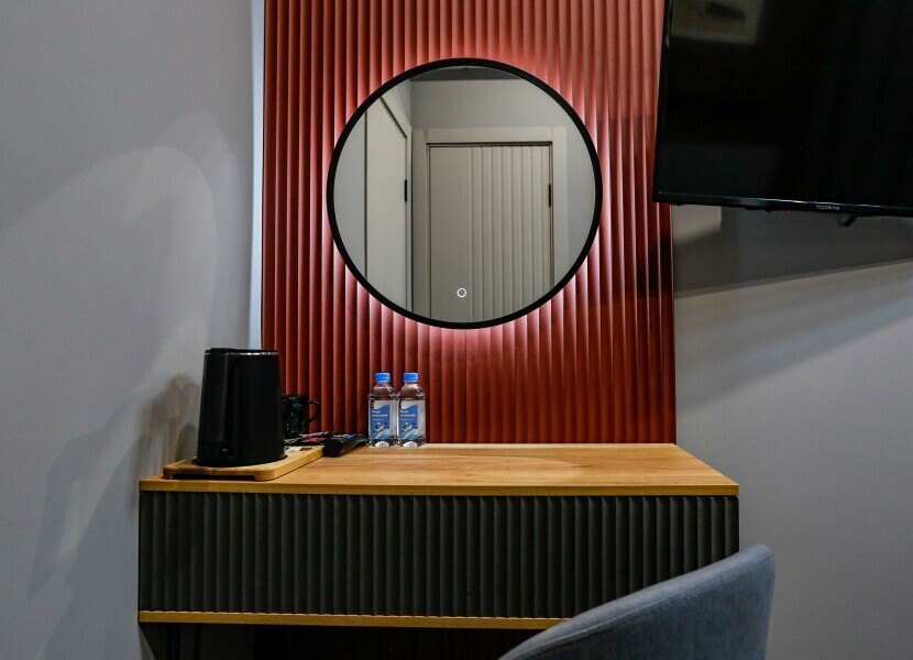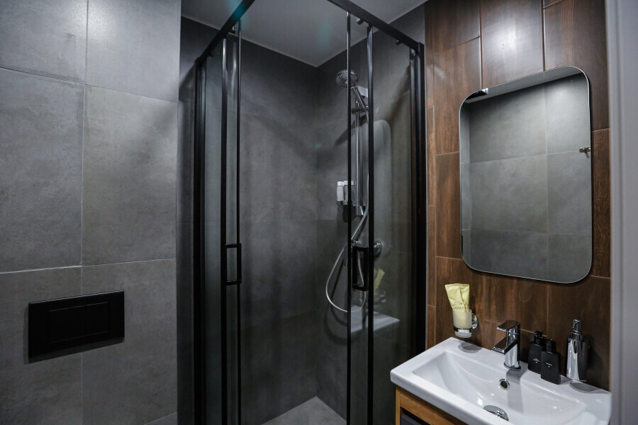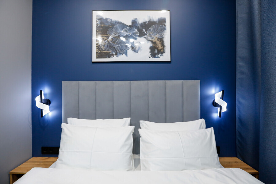Приятный дизайнерский интерьер номера обеспечивает гостям расслабление и комфортный отдых. Для дополнительного удобства номер оснащен широкоформатным телевизором со Smart TV, шкафом для одежды, кондиционером, чайным набор и мини-холодильником. К вашим услугам отдельная ванная комната с душевой кабиной и туалетом, гигиенический душ, фен для волос, косметические принадлежности, набор полотенец и тапочки.