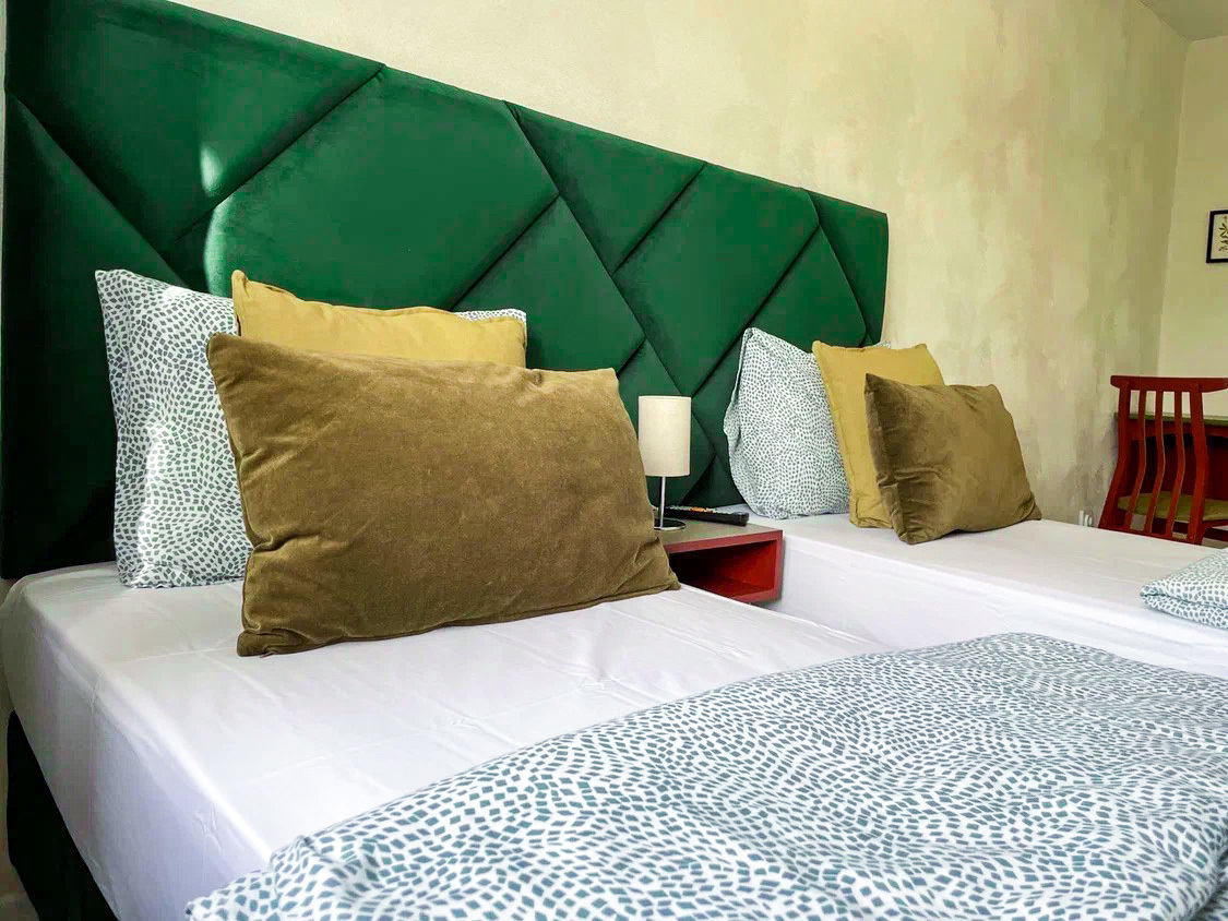 Спальня 2: оснащена двуспальной кроватью 160*200 или 2-мя раздельными кроватями, прикроватными тумбами и светильниками, рабочим столом и стулом, ТВ с кабельными каналами, шторы блек-аут.