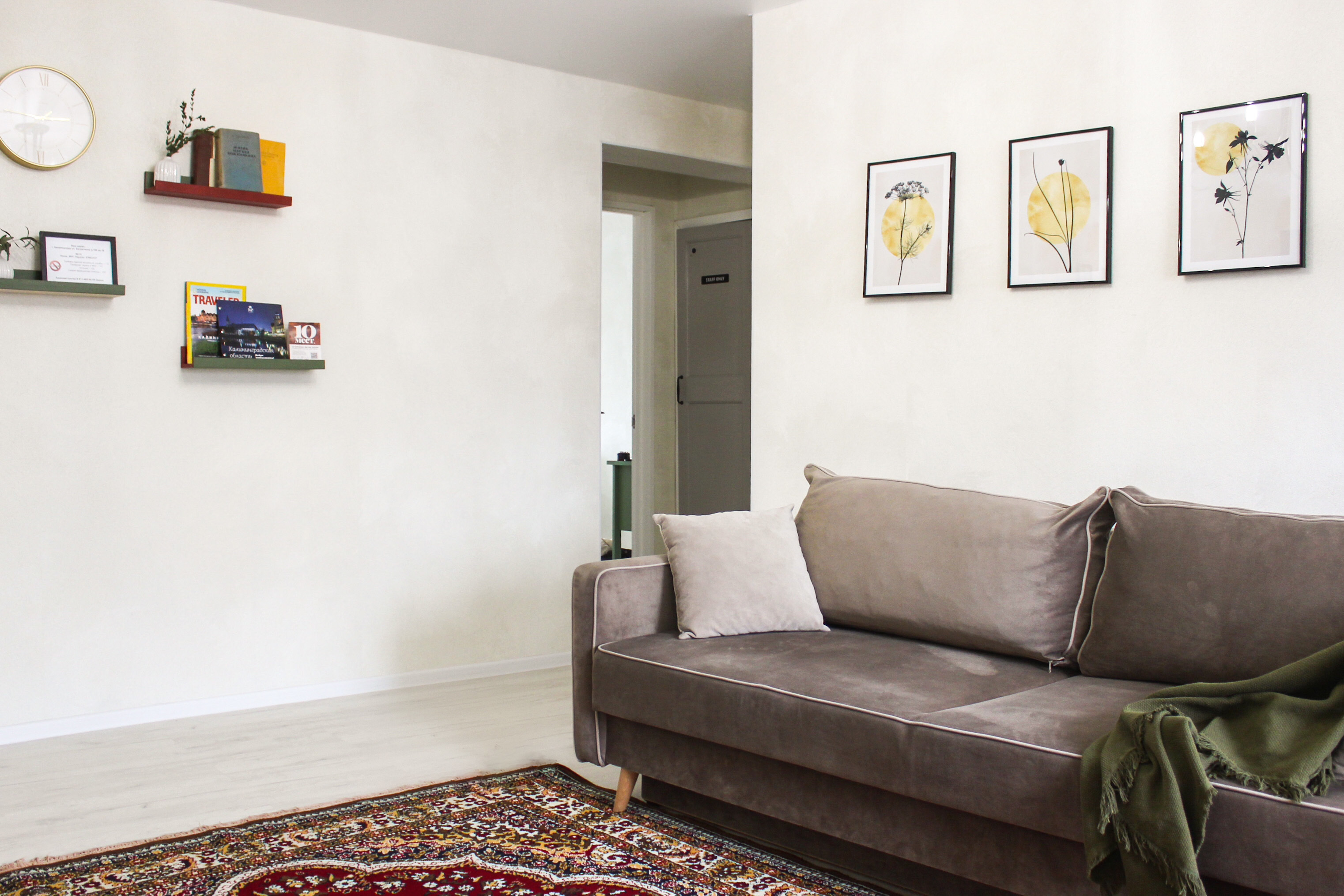 Гостиная - раскладной диван 160*200, ТВ с кабельными каналами, функцией Smart TV, обеденная зона, балкон с которого открывается вид на зеленый двор. Кондиционер.