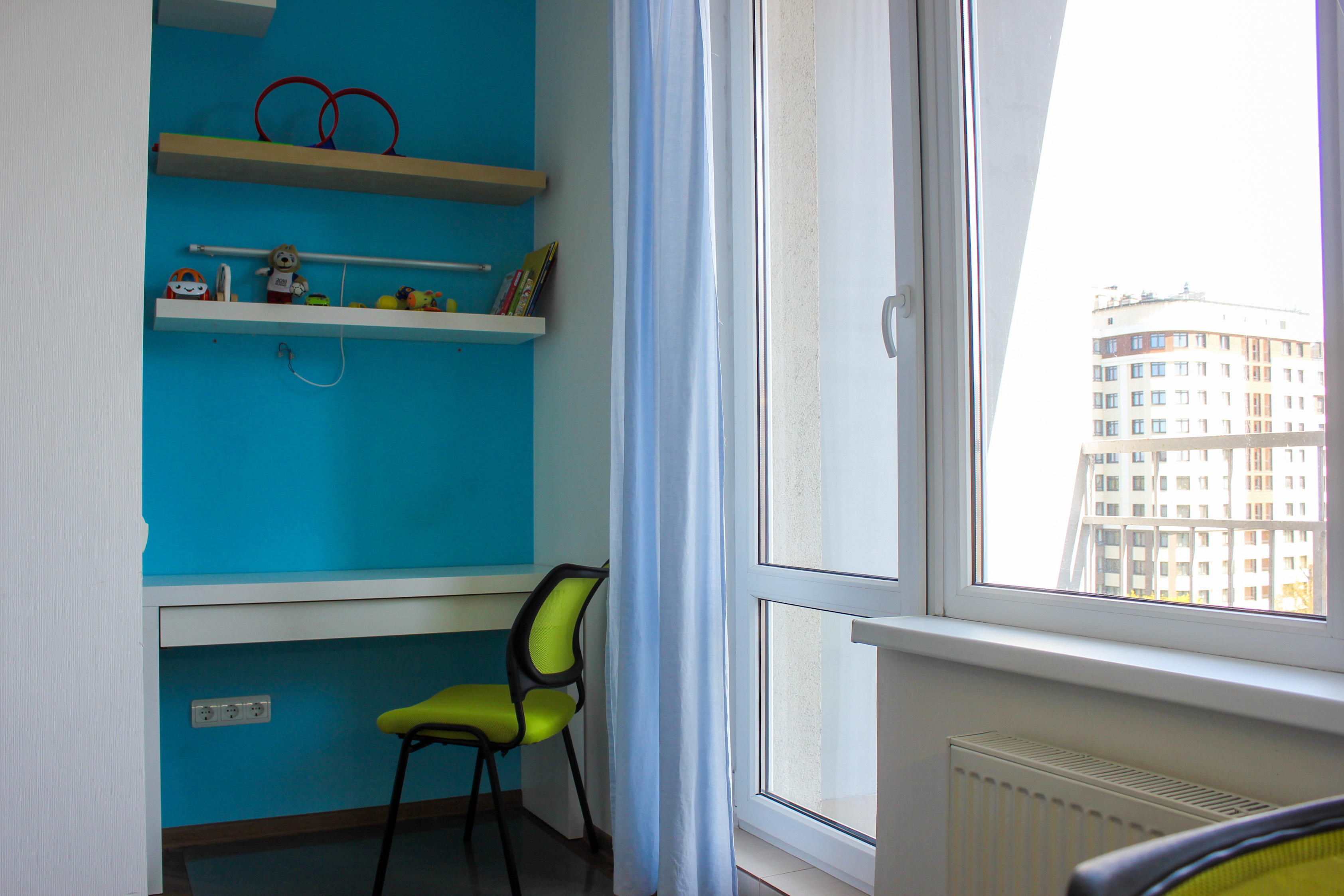 Спальня 2: двуспальная кровать 140х200, раскладной диван 90х200, ТВ с функцией Smart, два рабочих стола и стулья, для маленьких гостей есть книги и игрушки.