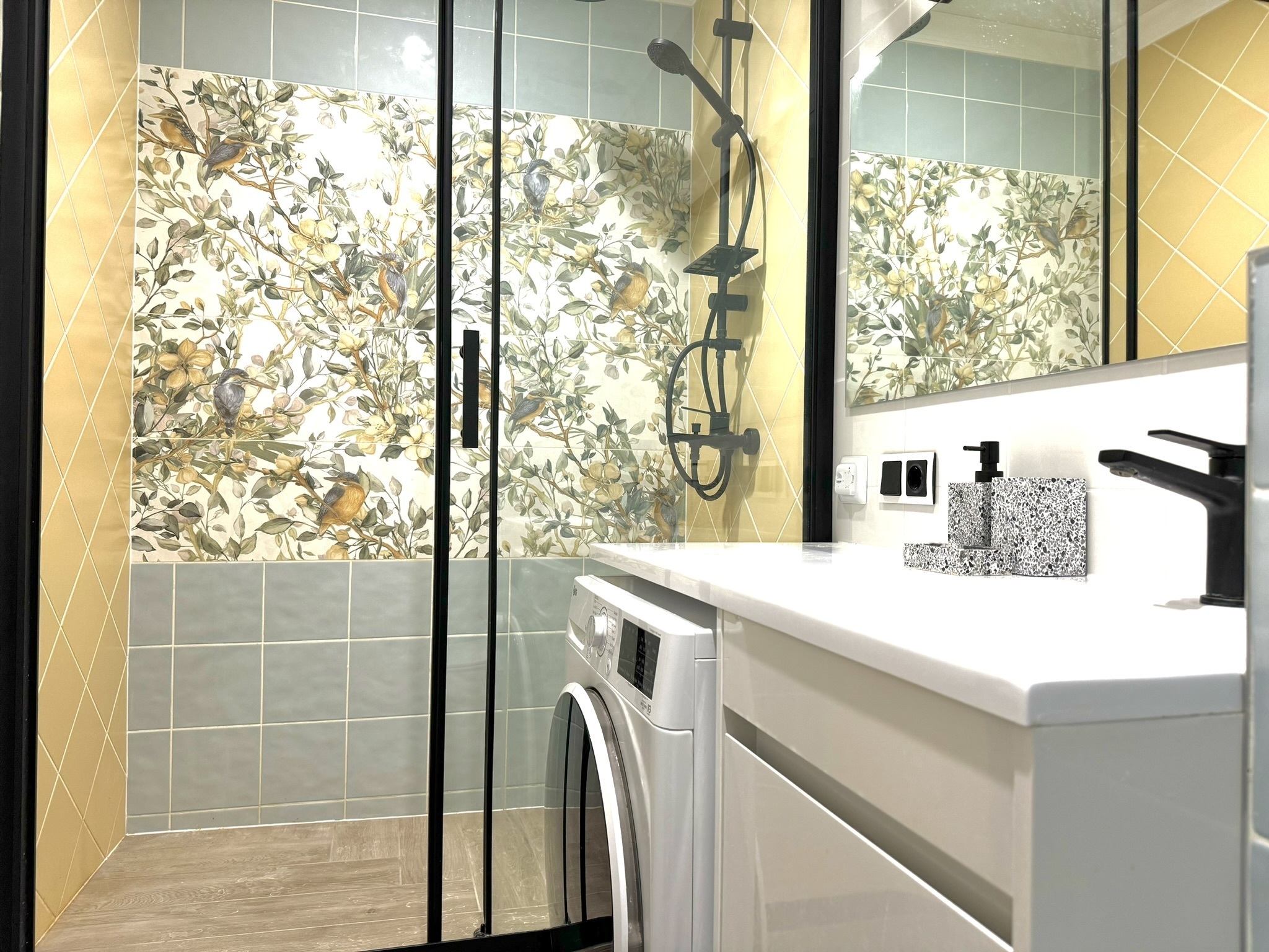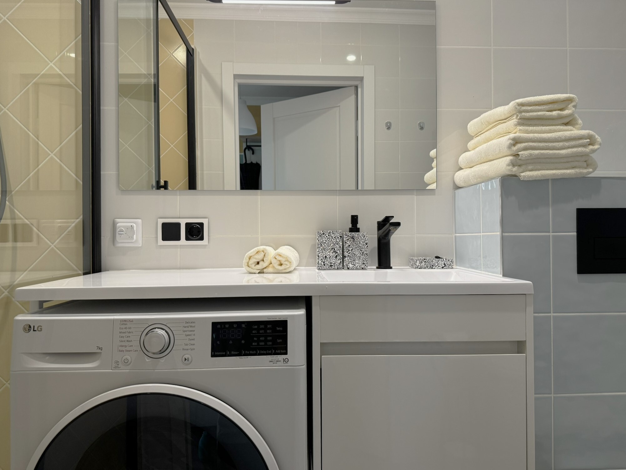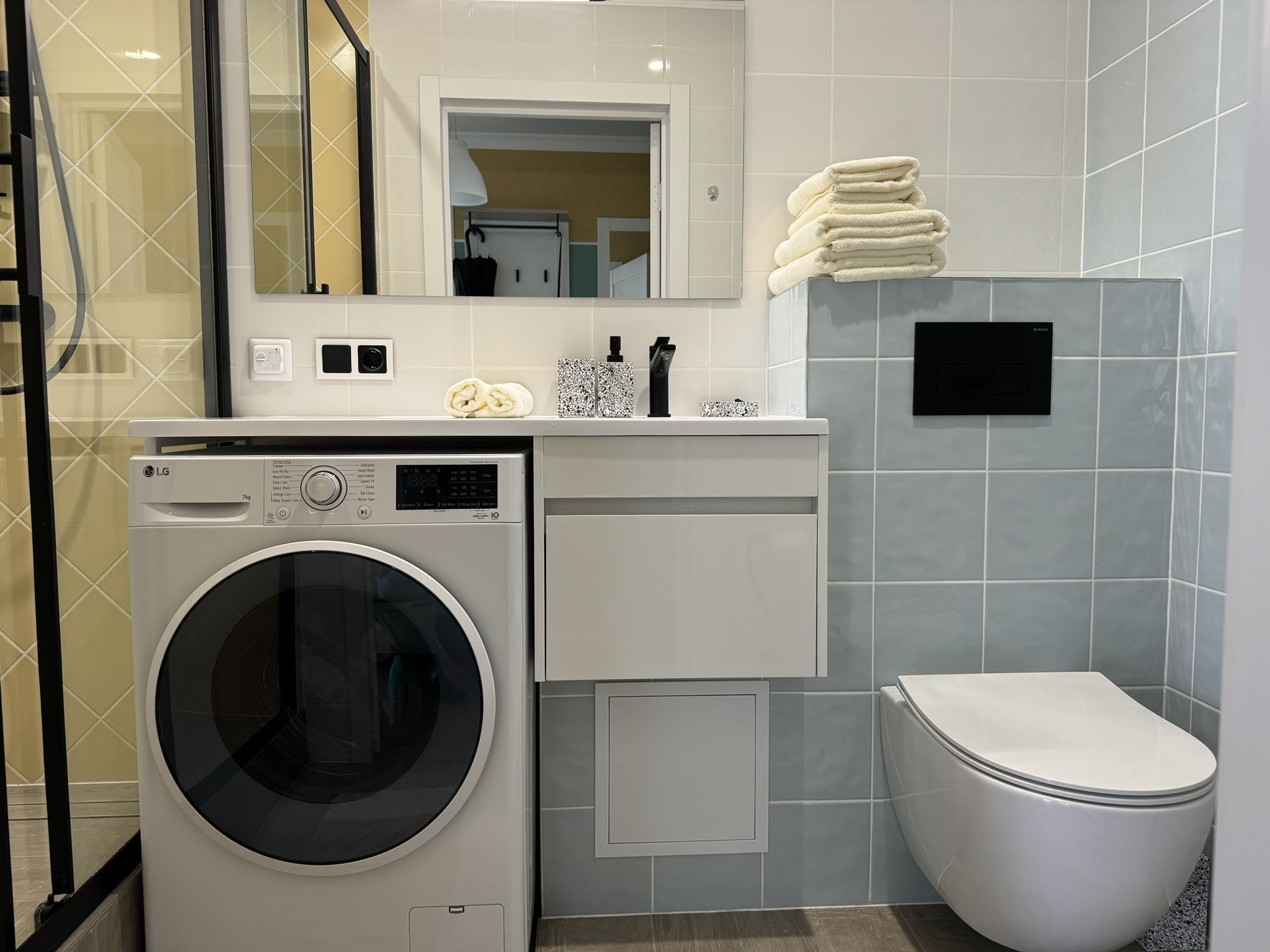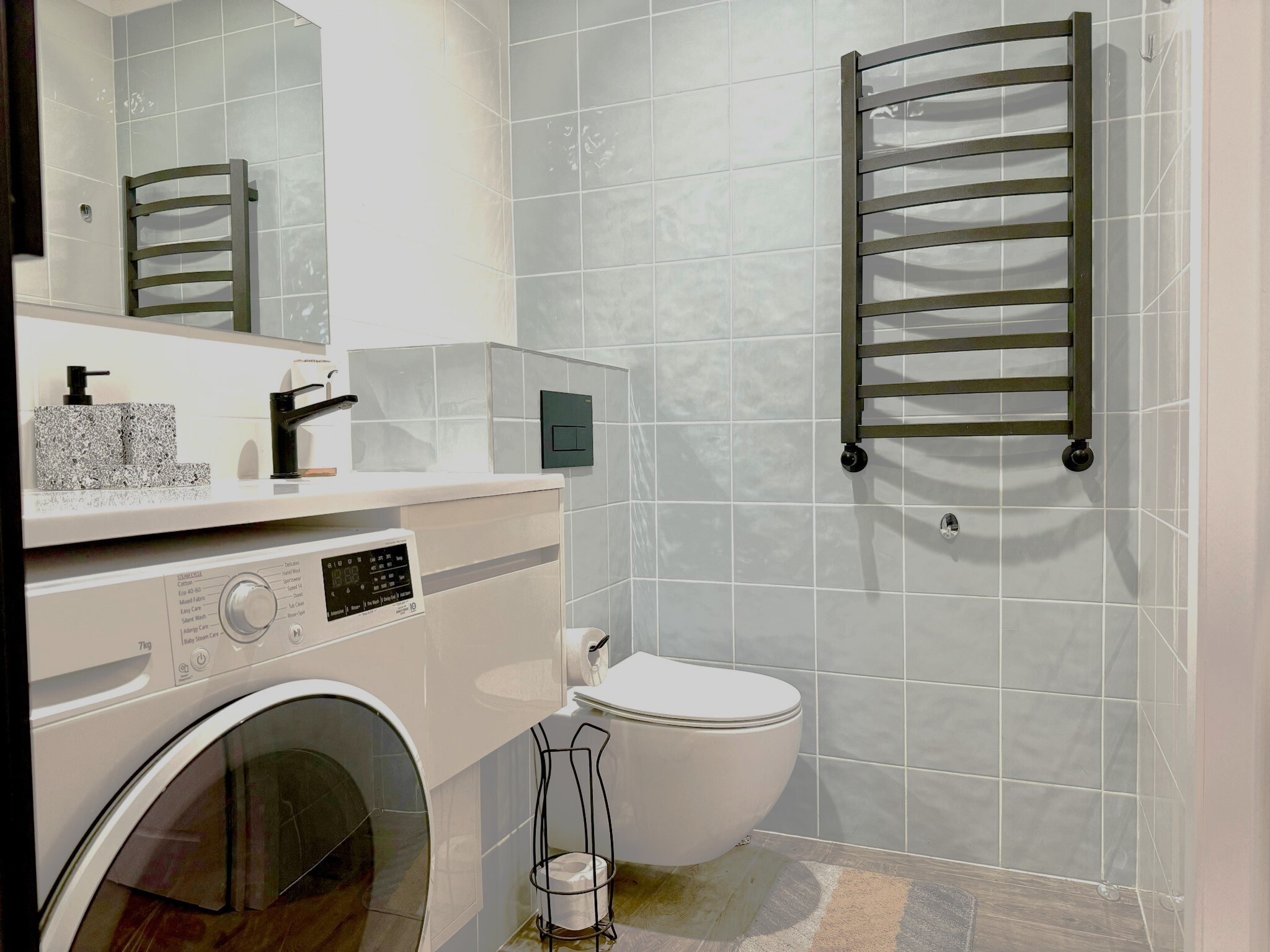 Ванная комната совмещена, есть стиральная машинка. Предлагаем полный набор гигиенических принадлежностей.