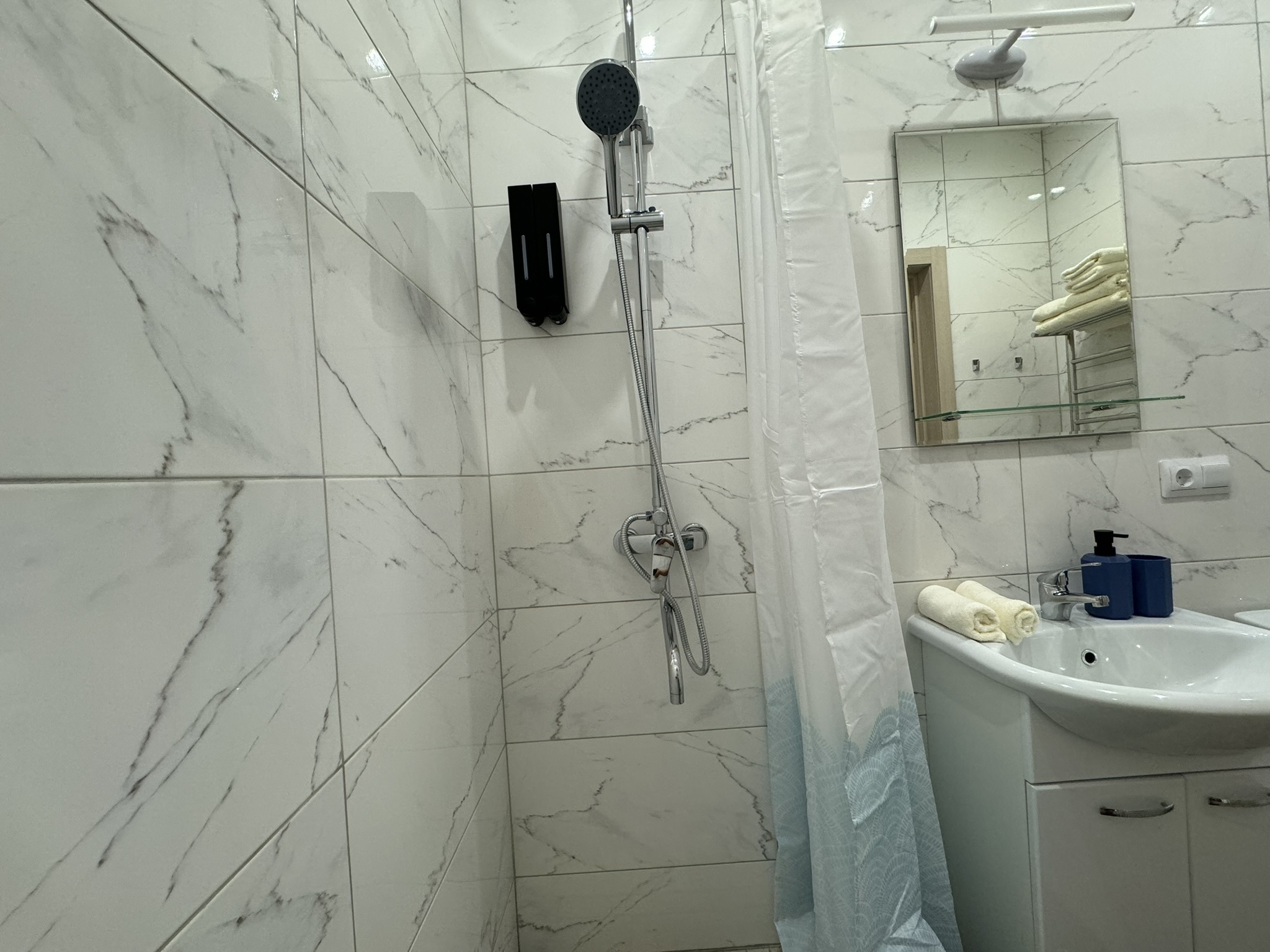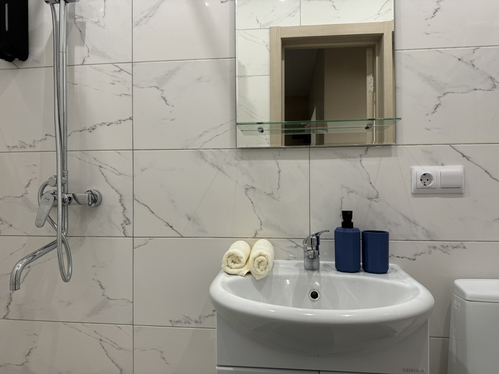 Совмещенный санузел, оборудован душем.