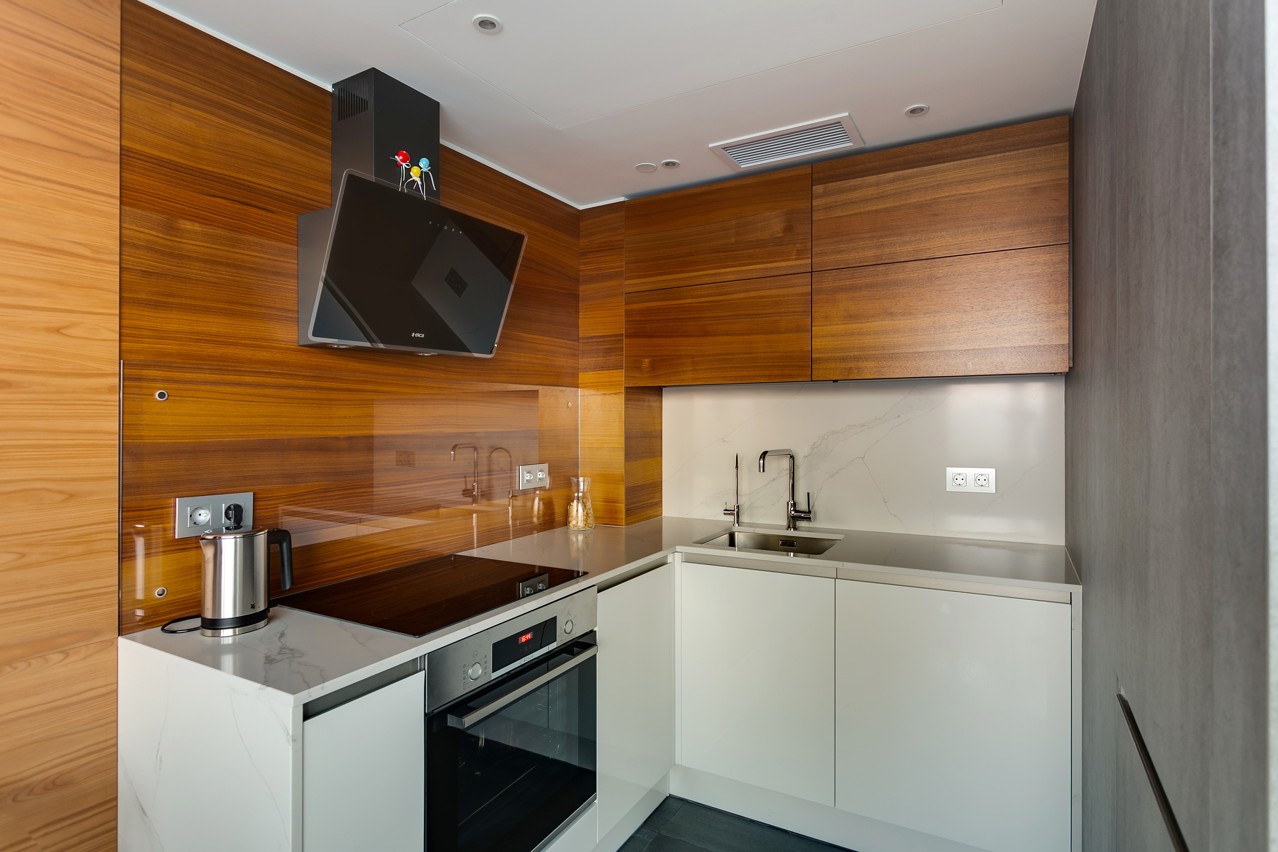 Видовые апартаменты в многофункциональном комплексе The Book в легендарном «доме-книжке». Ключевыми преимуществами является локация и инфраструктура, призванная обеспечить не просто звание «дома высокой культуры быта», но функциональность жилья нового класса. Отделка выполнена в современном стиле в терракотовых тонах. Панорамные окна, дизайнерская мебель, текстиль и уникальные элементы декора подарят незабываемые ощущения комфорта.