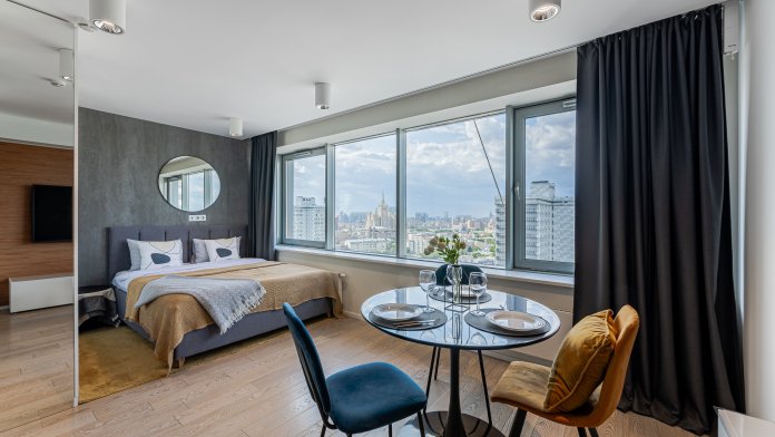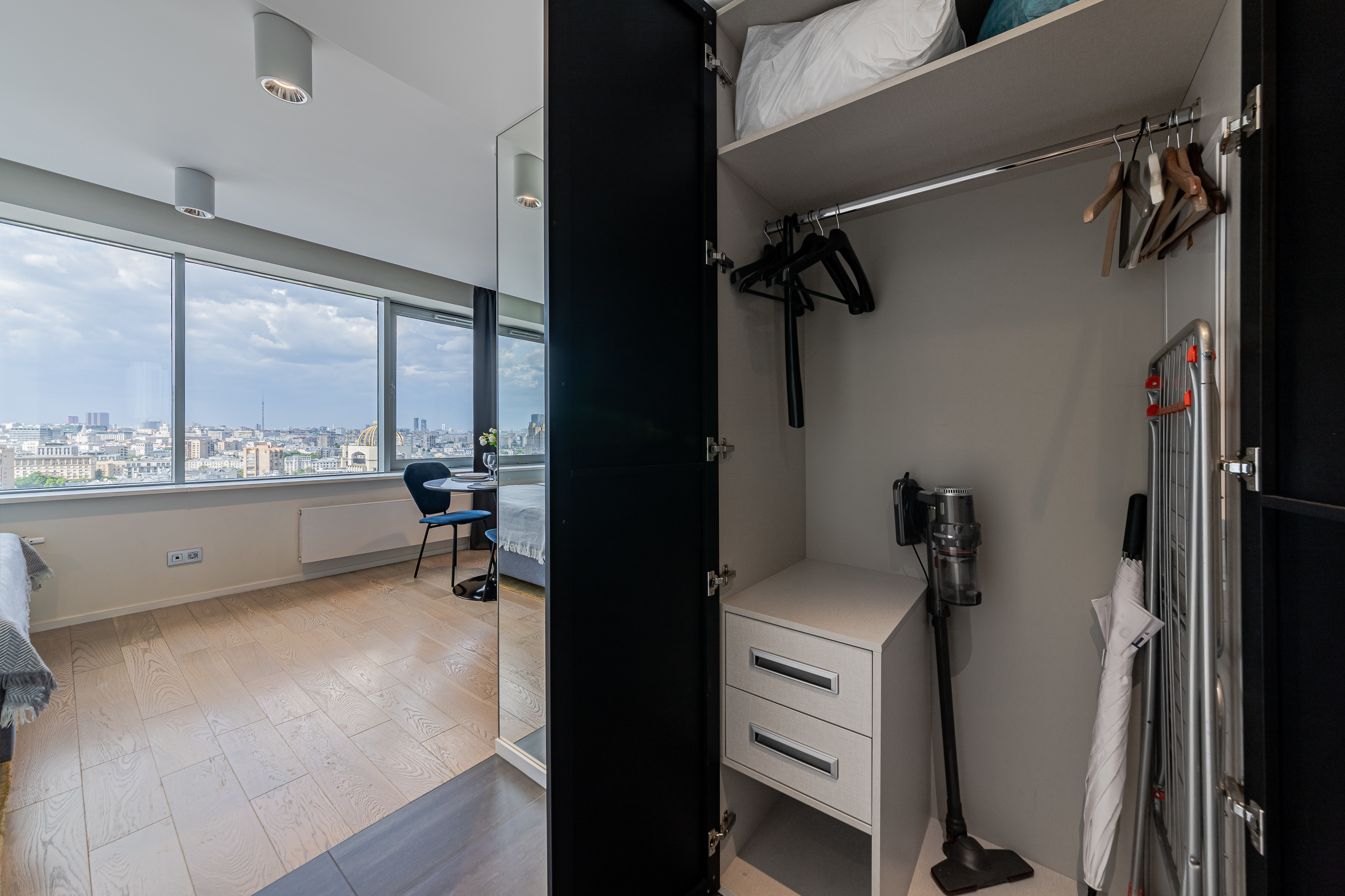 Апартаменты расположены на 22 этаже с панорамным видом на всю Москву. Вы сможете с комфортом разместиться на большой двуспальной кровати размера king-size. Также в апартаментах имеется небольшой диван для отдыха. Апартаменты имеют полноценную удобную кухню, где Вы сможете приготовить свои любимые блюда. Кухня оборудована всей необходимой техникой: электрическим чайником, микроволновой печью, духовым шкафом, вытяжкой, холодильником и даже тостером. Высокоскоростной интернет и Смарт-ТВ позволят насладиться просмотром любимых фильмов и сериалов. Стильный ремонт и современные материалы делают квартиру комфортной для проживания. Внутри можно найти всю необходимую технику и аксессуары для длительного пребывания: фен, утюг, гладильную доску и ванные принадлежности. Бронируйте прямо сейчас и сделайте свой отдых незабываемым!