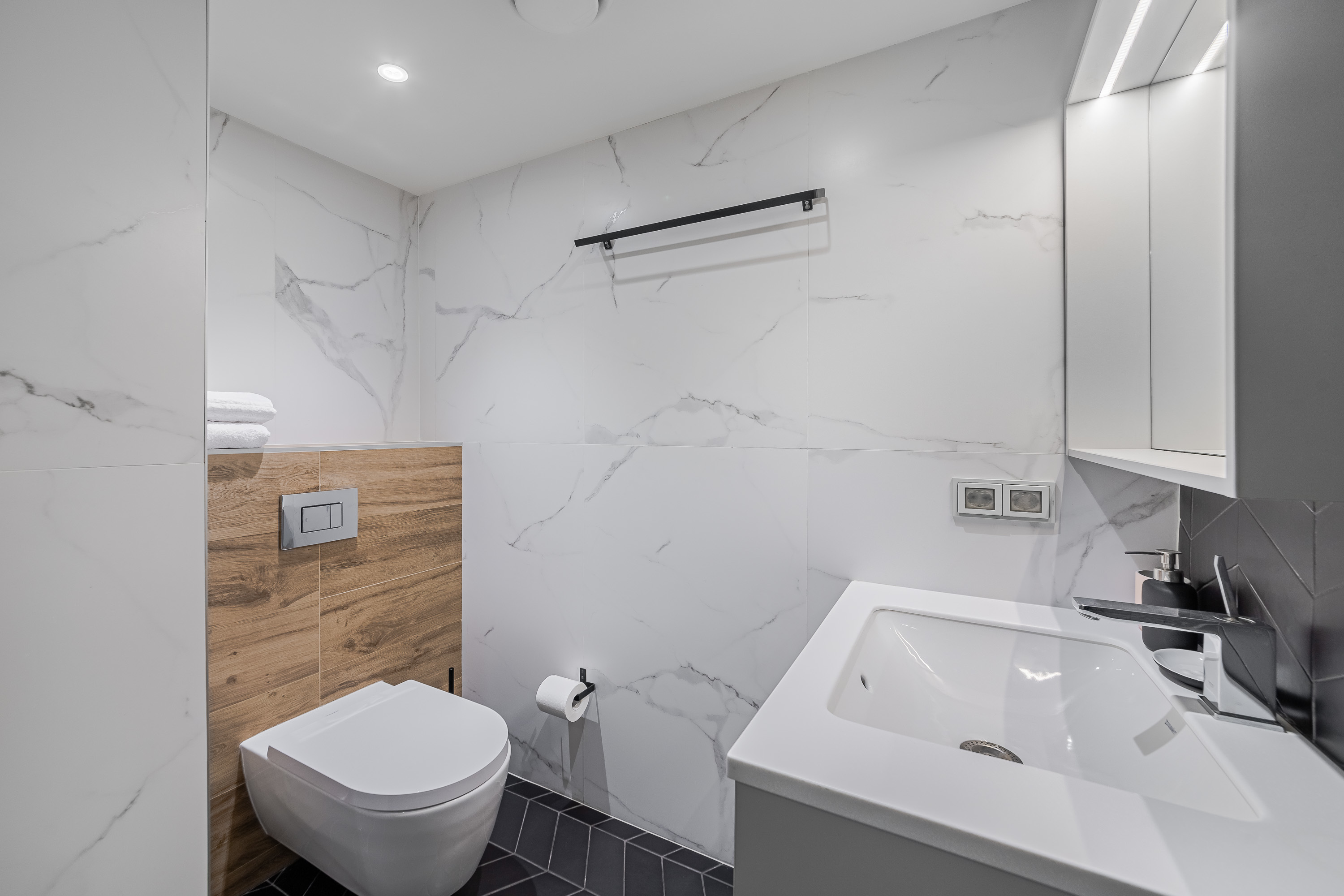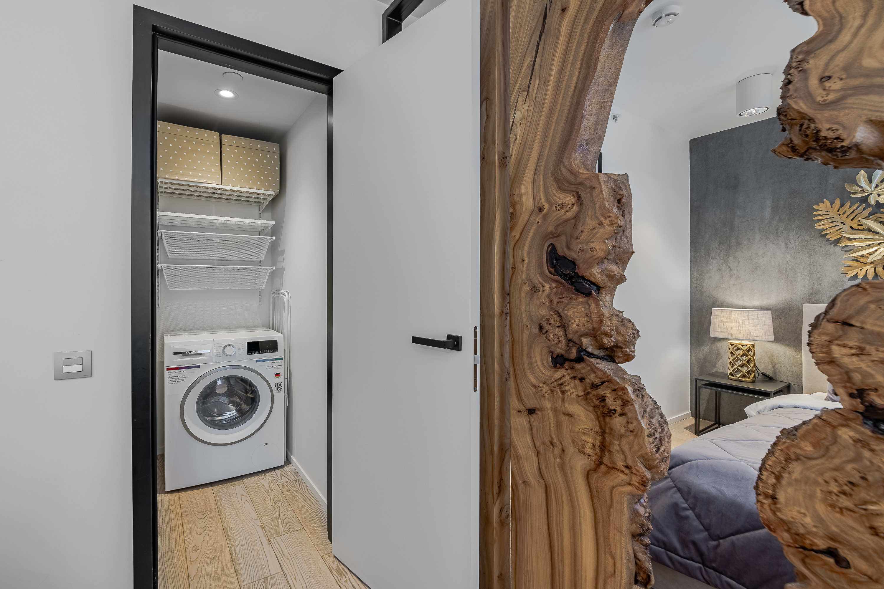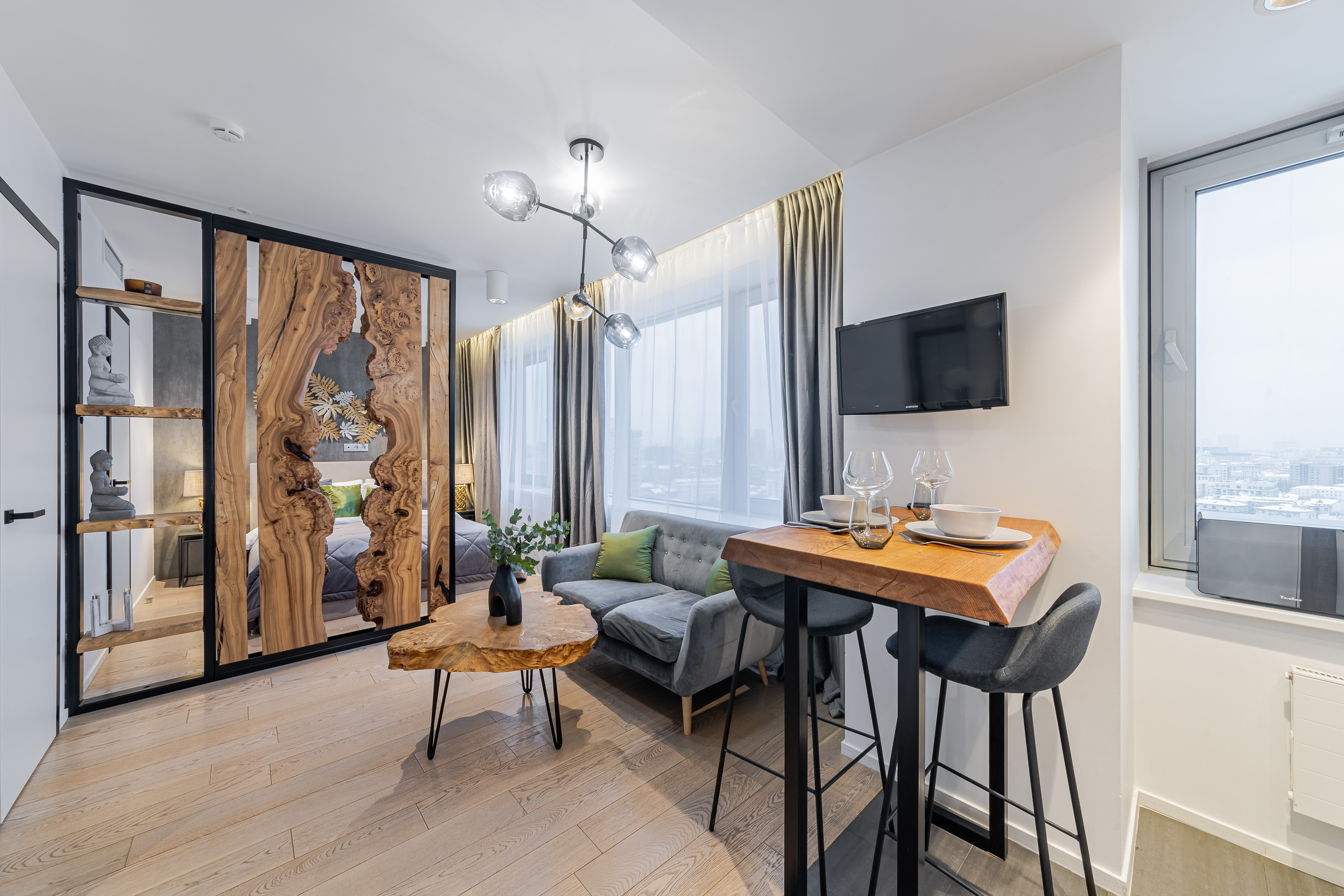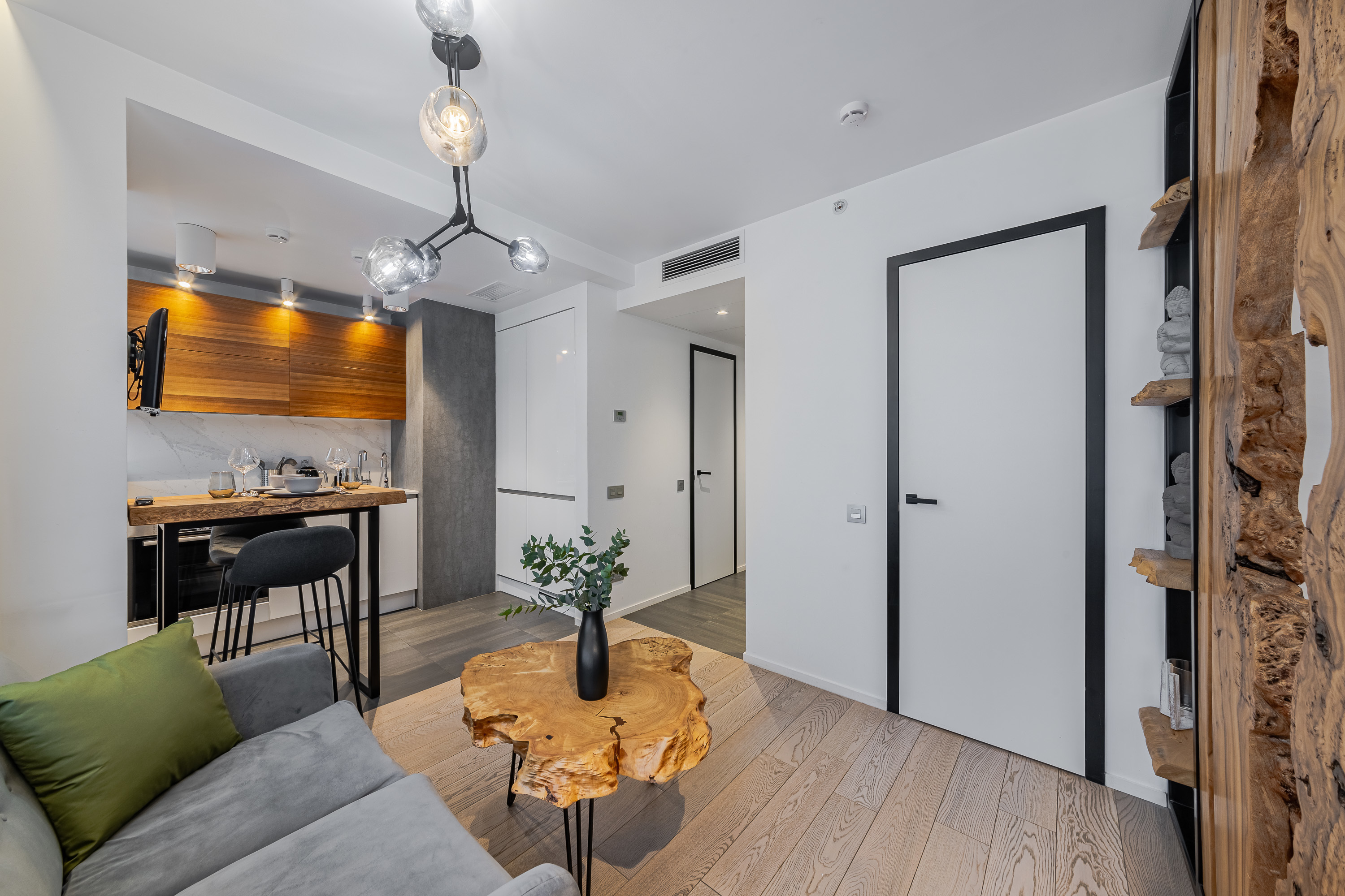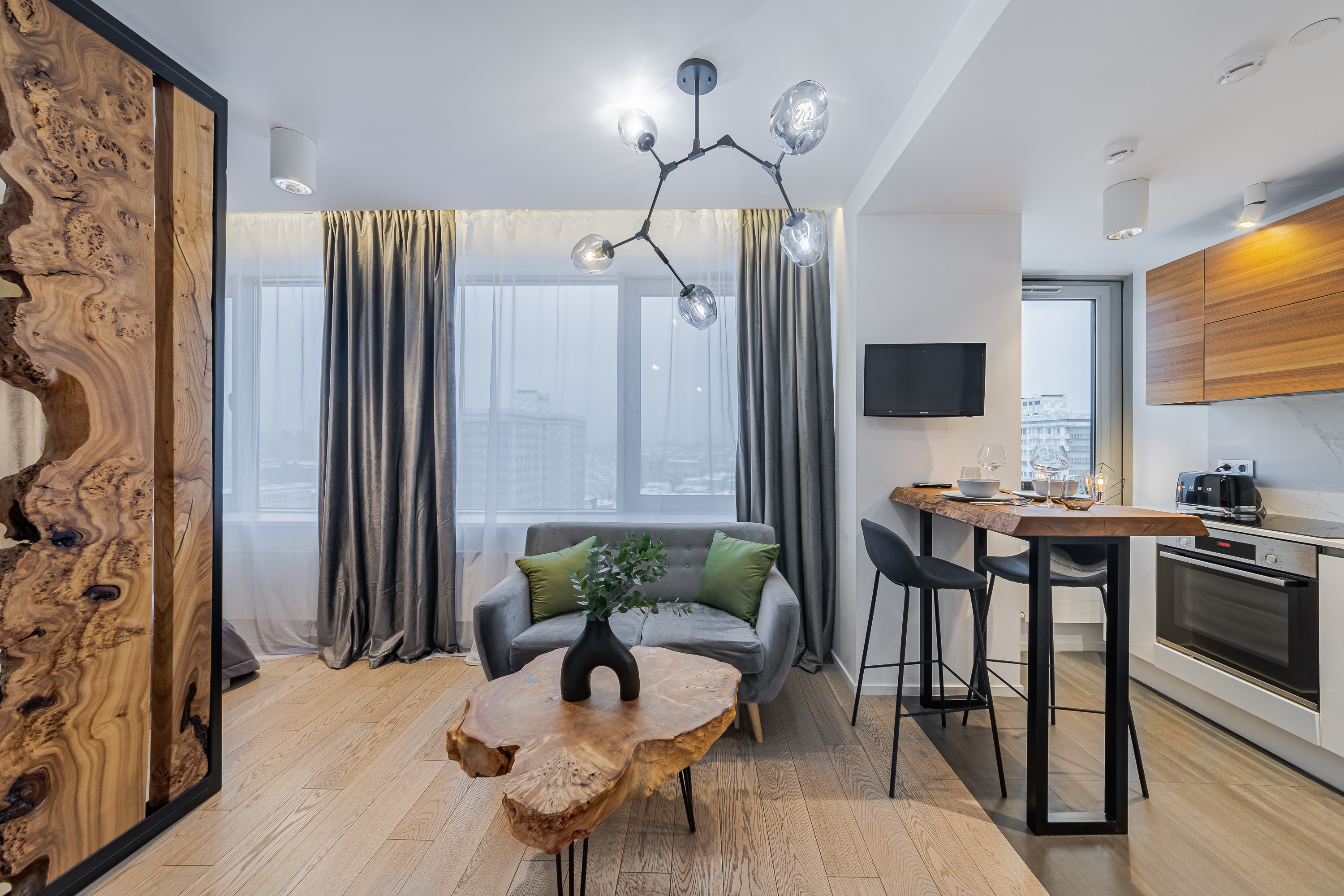 Стильный ремонт и современные материалы делают квартиру комфортной для проживания. Внутри можно найти всю необходимую технику и аксессуары для длительного пребывания: фен, утюг, гладильную доску и ванные принадлежности.
