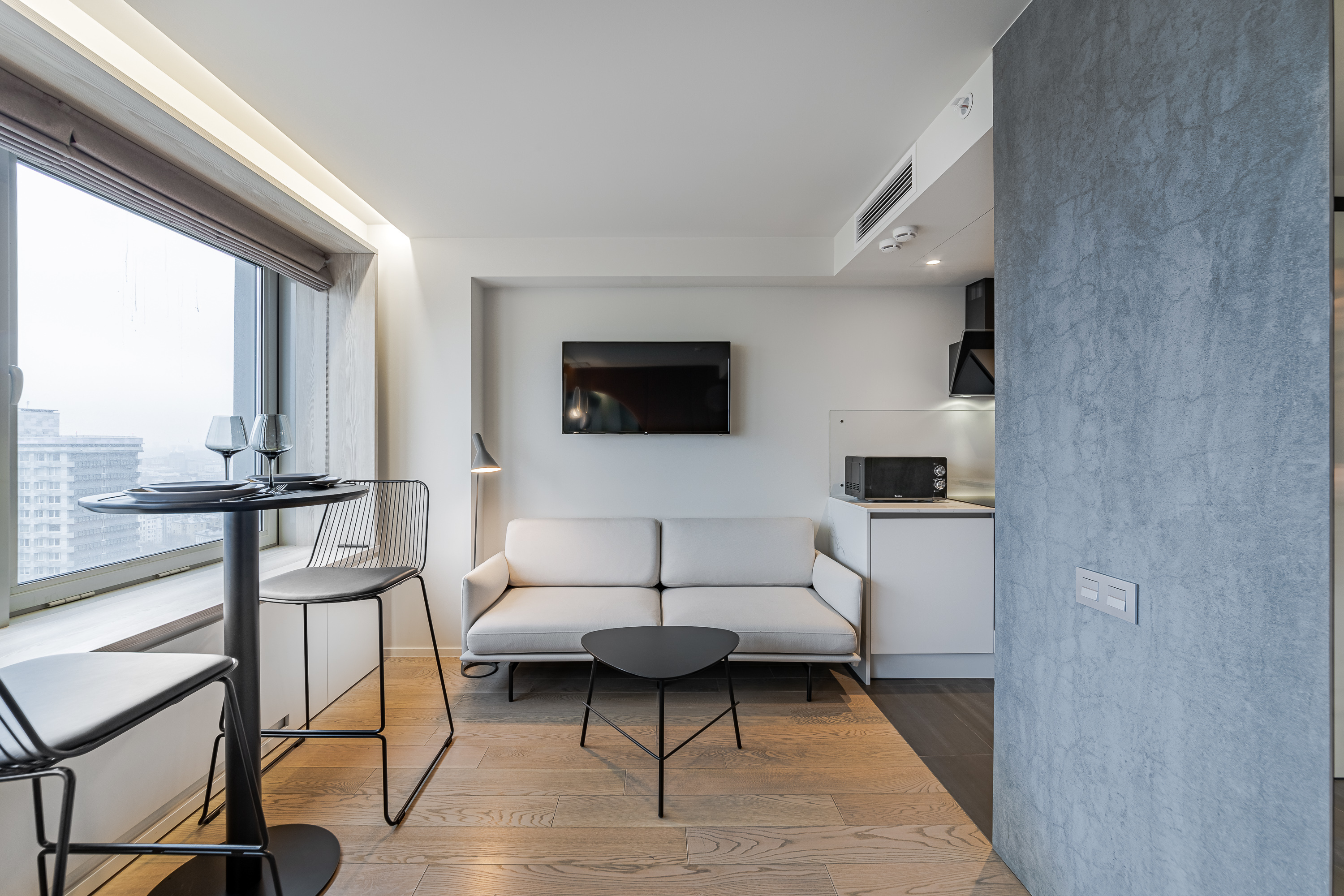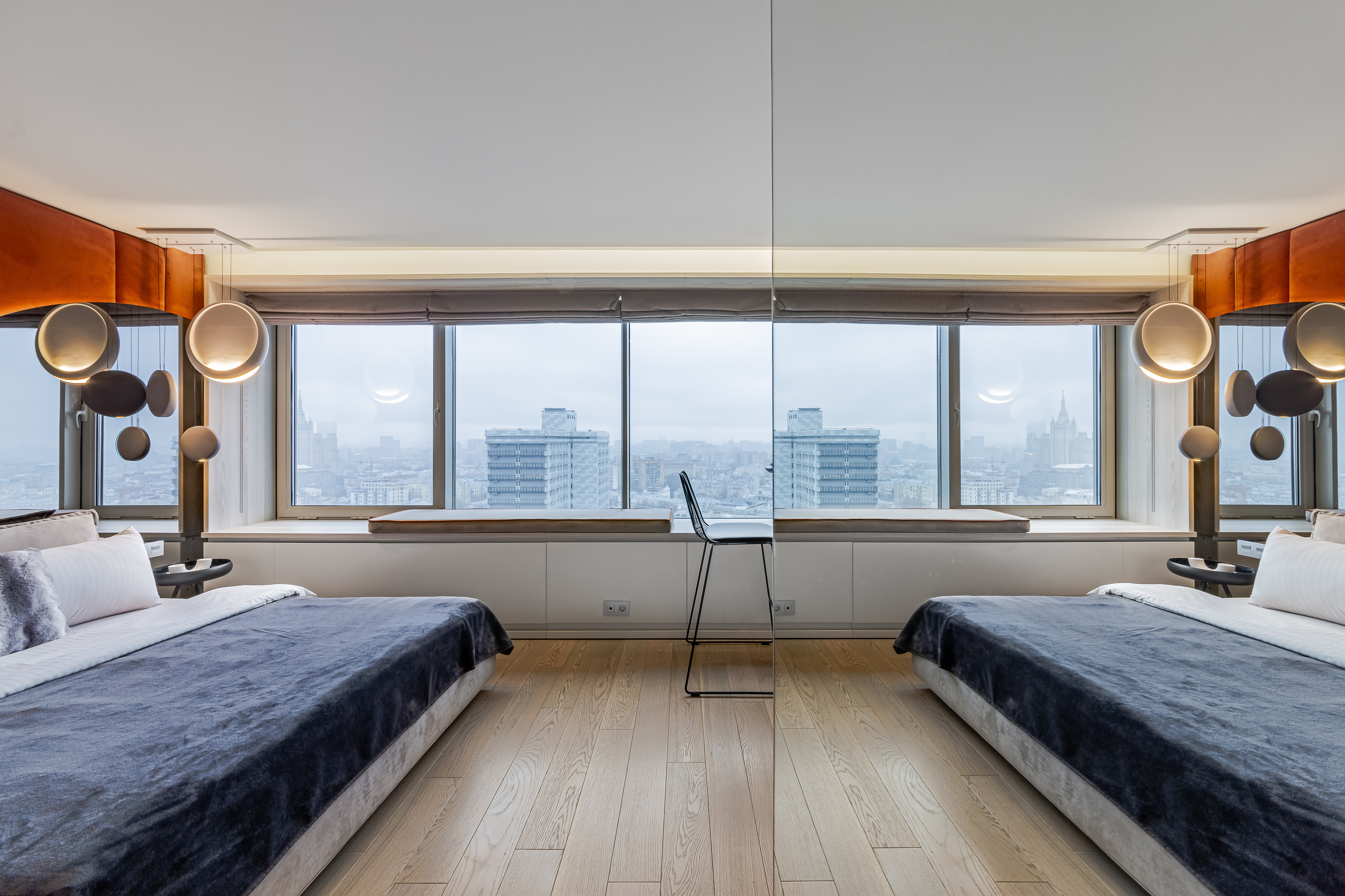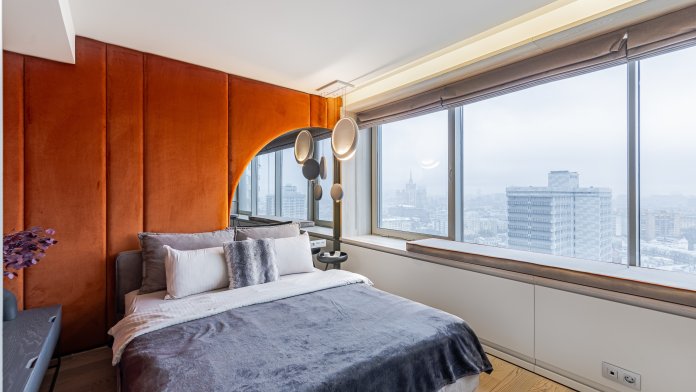 Апартаменты расположены на 24 этаже с панорамным видом на всю Москву.