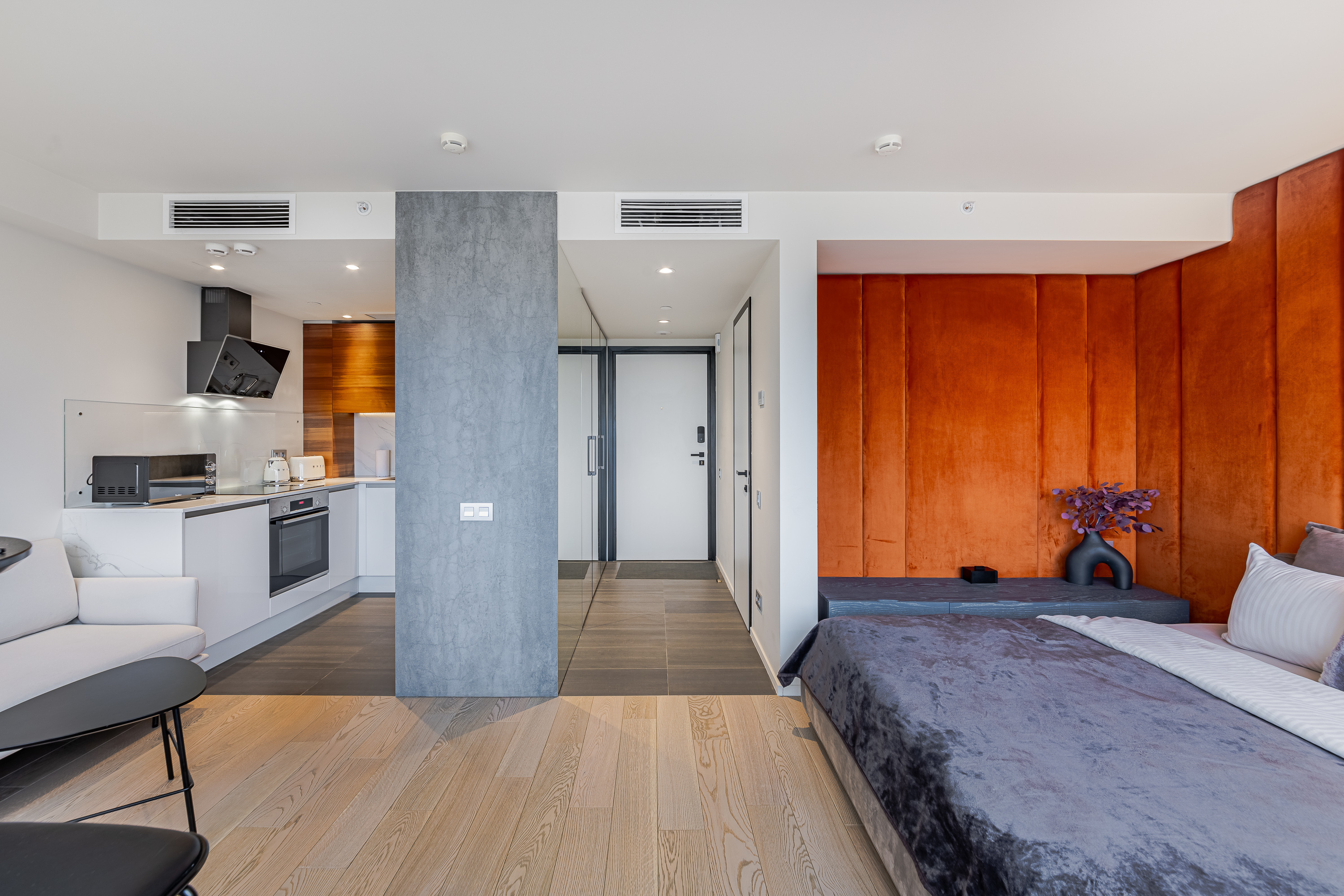 Стильный ремонт и современные материалы делают квартиру комфортной для проживания. Внутри можно найти всю необходимую технику и аксессуары для длительного пребывания: фен, утюг, гладильную доску и ванные принадлежности.