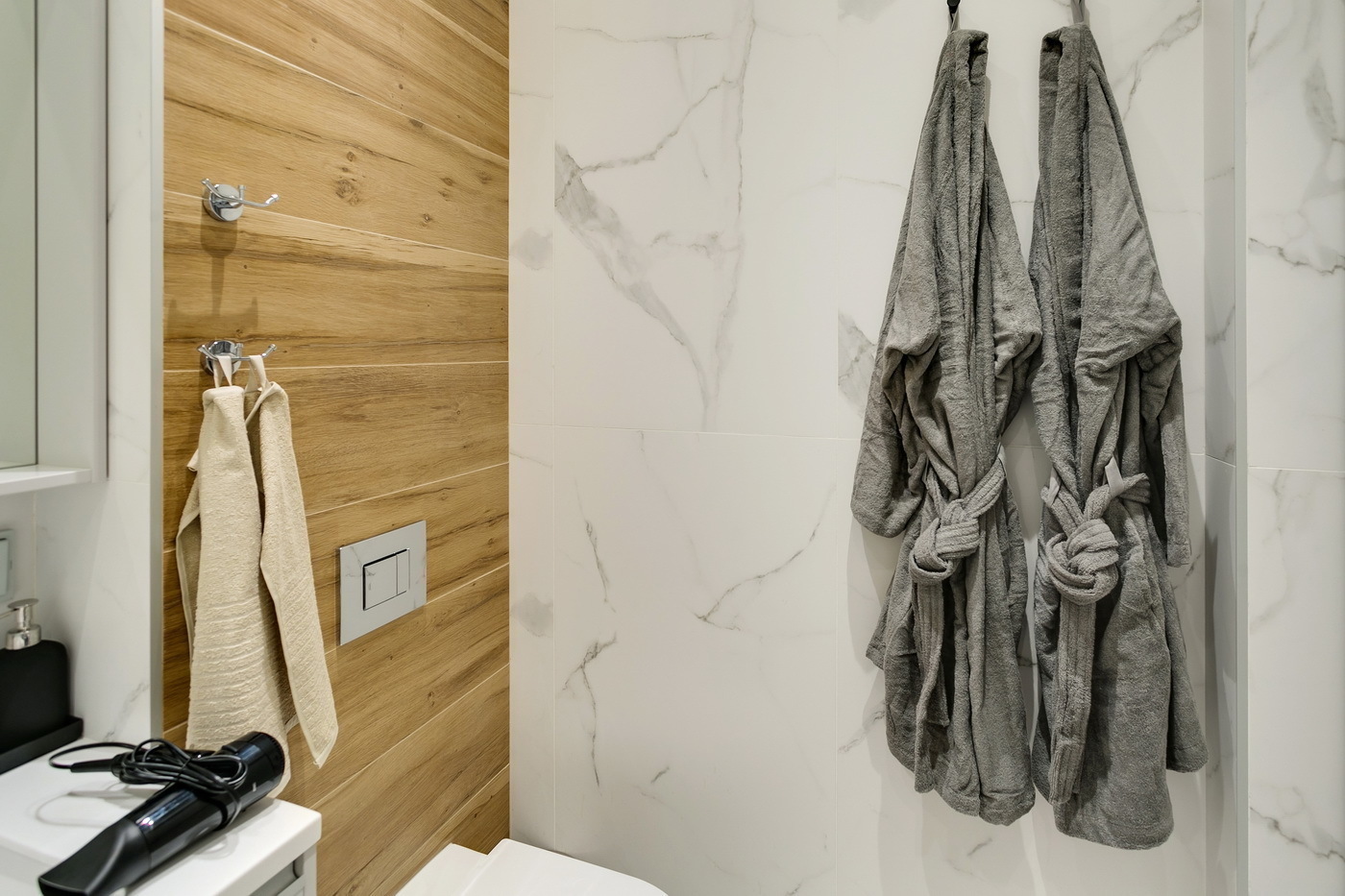 - на 1-ом расположена изолированная спальня с двухспальной кроватью, санузел, кухня и зона гостиной с раскладным диваном и большим проектором с функцией SMART TV, PS4 для уютных вечеров.