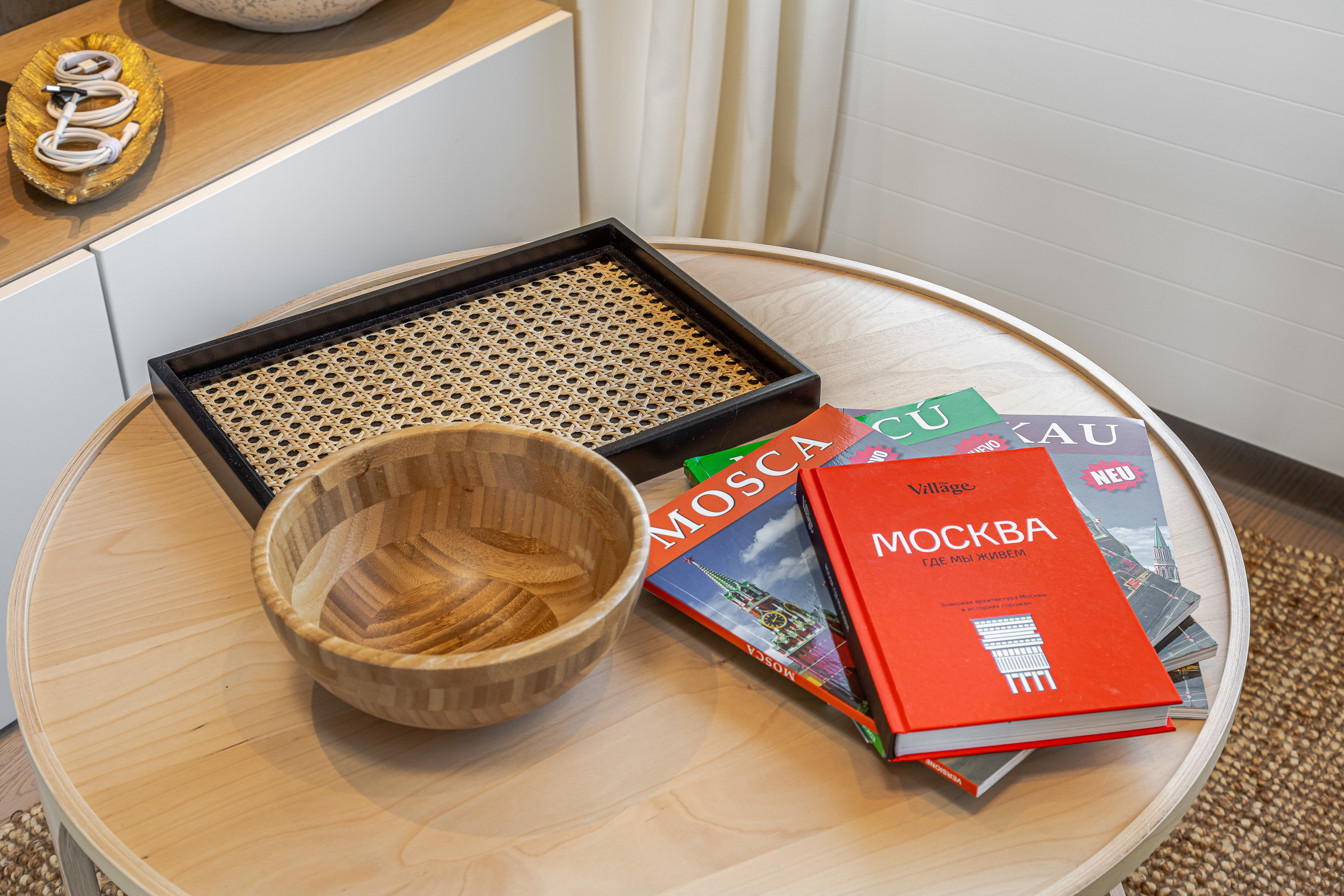 В апартаментах 2 уровня: на 1-ом расположена кухня и зона гостиной с диван и большим проектором с функцией SMART TV. Идеальный вечер под любимые фильмы и сериалы обеспечен! На 2-ом уровне расположена небольшая, но очень уютная спальня с двухспальной кроватью, телевизором и настольными играми. Вам точно не придется скучать! Определенно главным преимуществом являются вид из окна на исторический центр Москвы.