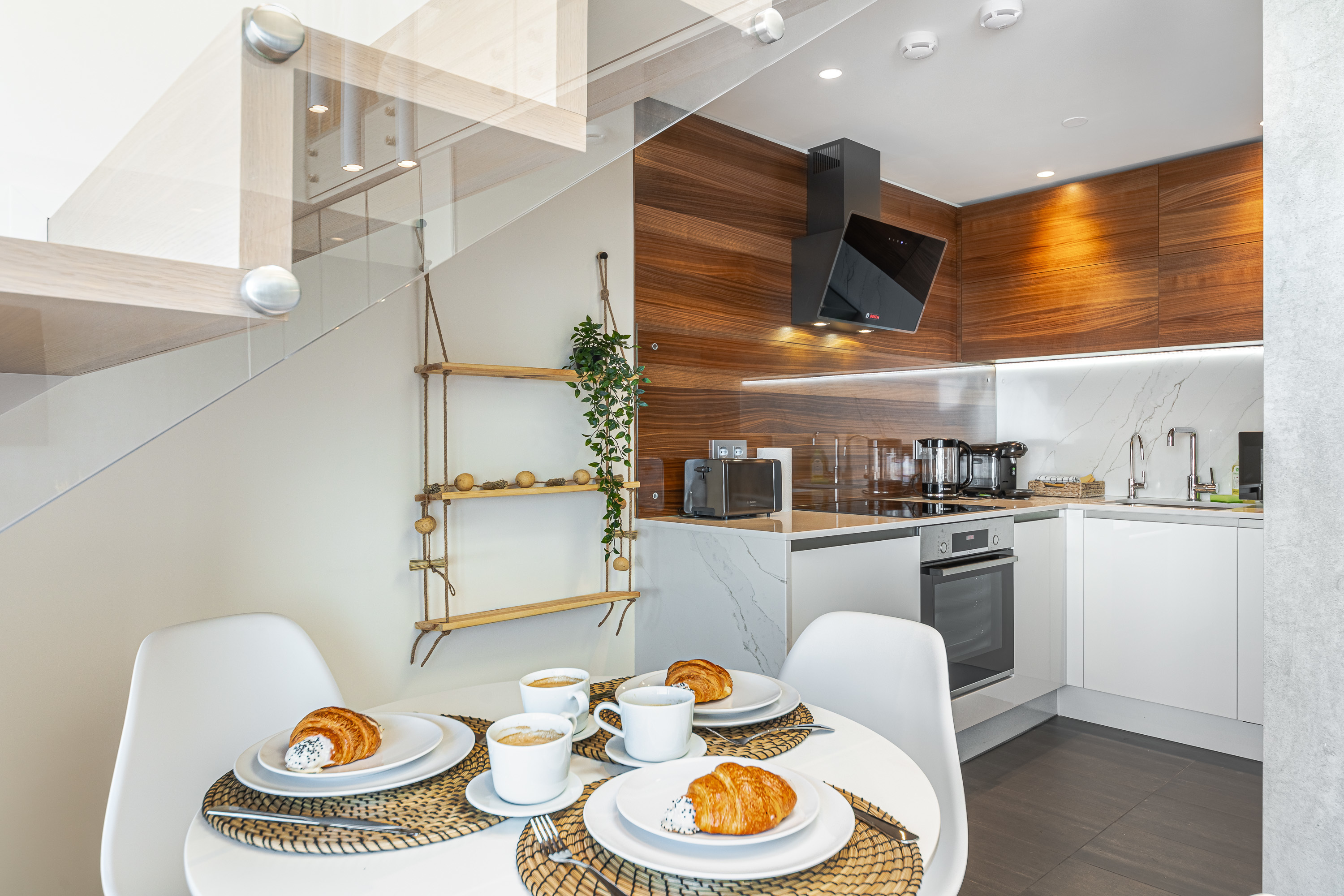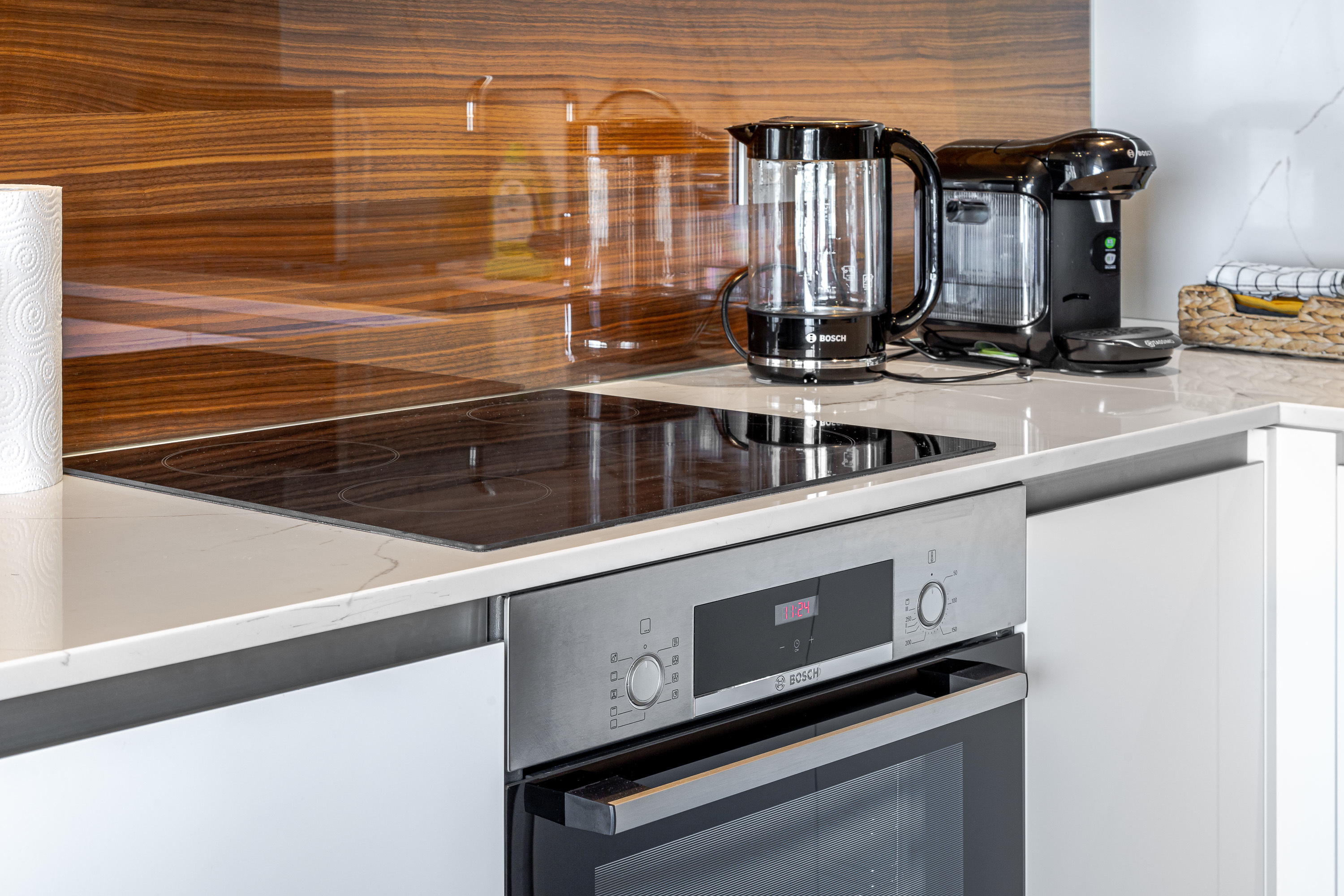 Вы найдете все необходимое для комфортного пребывания - мягкая кровать формата King Size со свежим и отглаженным бельем, полностью укомплектованная кухня (посудомоечная машина, плита, духовой шкаф, тостер, кофемашина, холодильник, чайник, посуда для приготовления).