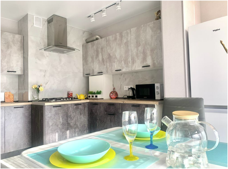 Апартаменты просторные, светлые, солнечные, с двумя лоджиями, с кондиционером, с двумя спальными местами для 4 человек, есть все необходимое для комфортного проживания: ТВ, wi-fi, посуда, постельное белье, полотенца, микроволновая печь, варочная поверхность, стиральная машина, фен, утюг.