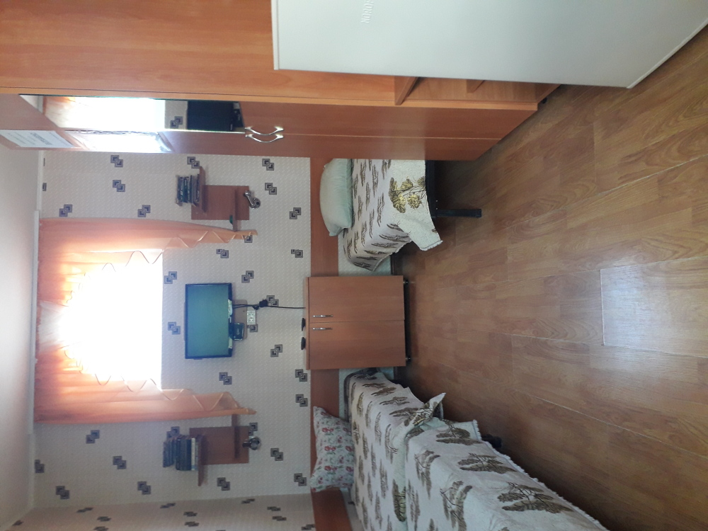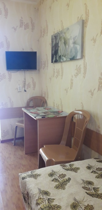 Две душевые на этаже, вода горячая и холодная круглосуточно. Своя верандочка, на ней стол со стульями. Вентилятор.
