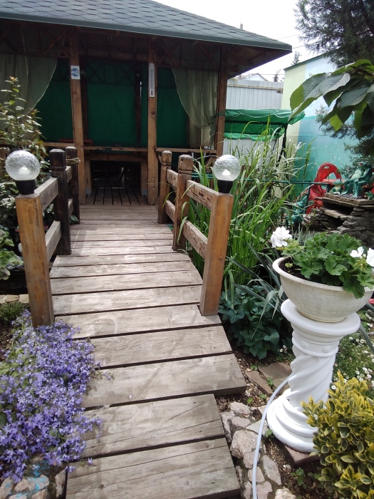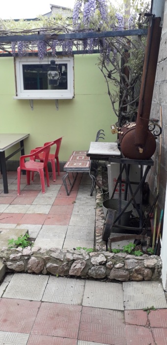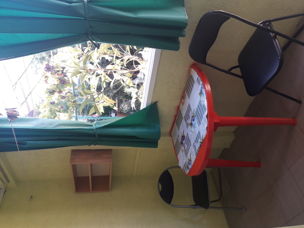 В номере небольшая веранда, на ней стол со стульми, где можно пообедать и отдохнуть.