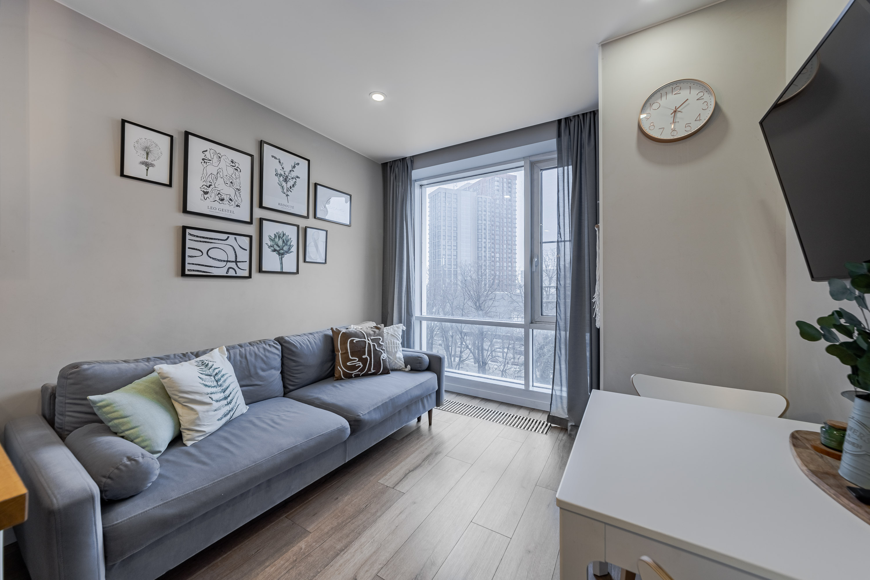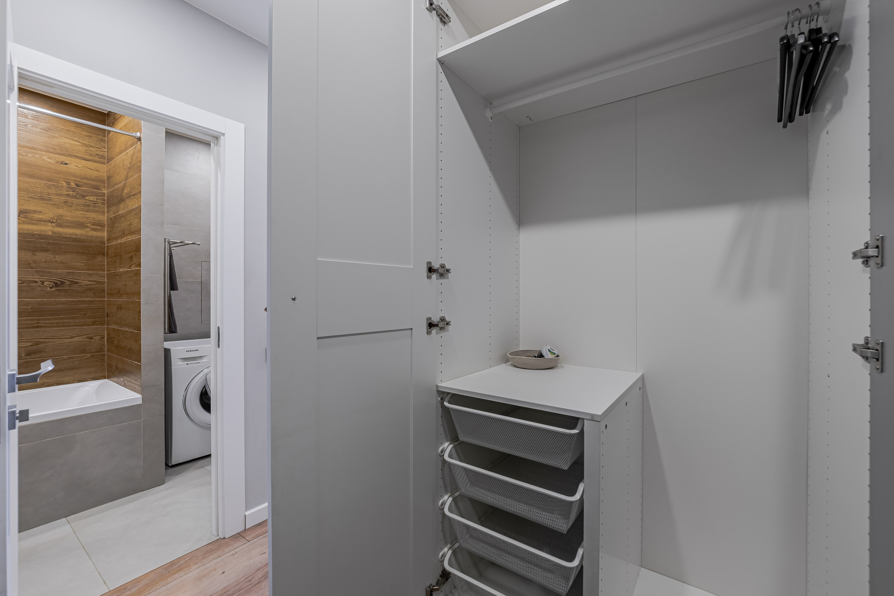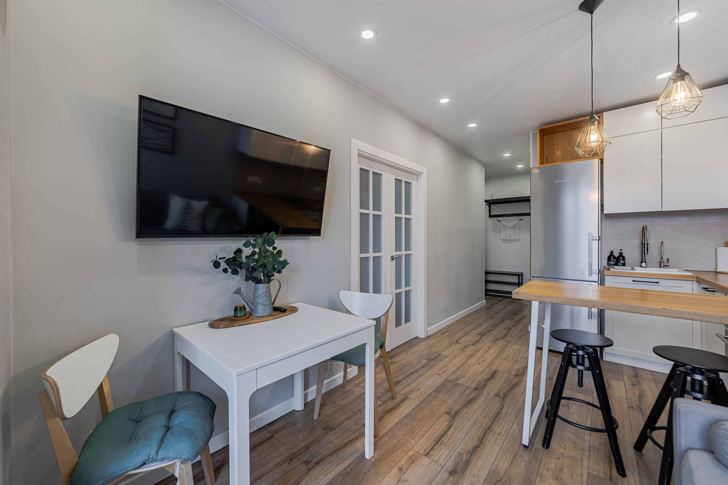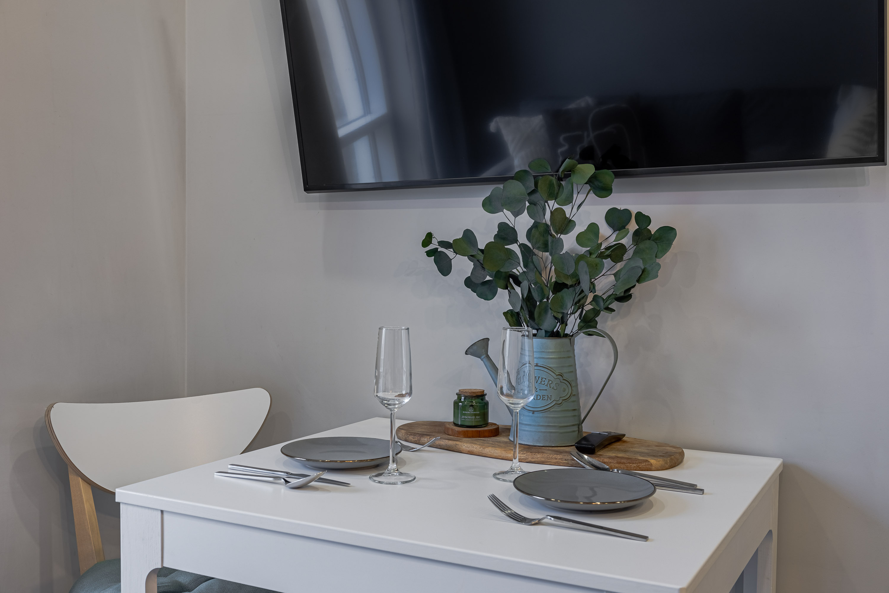 В квартире большие панорамные окна, а это значит, что у вас всегда будет светло. В комнате просторная двуспальная кровать, кондиционер и гардеробная. Это идеальны вариант не только для тех, кто планирует поездку в столицу на пару дней, но и тех, кто решит остаться на длительное время.
