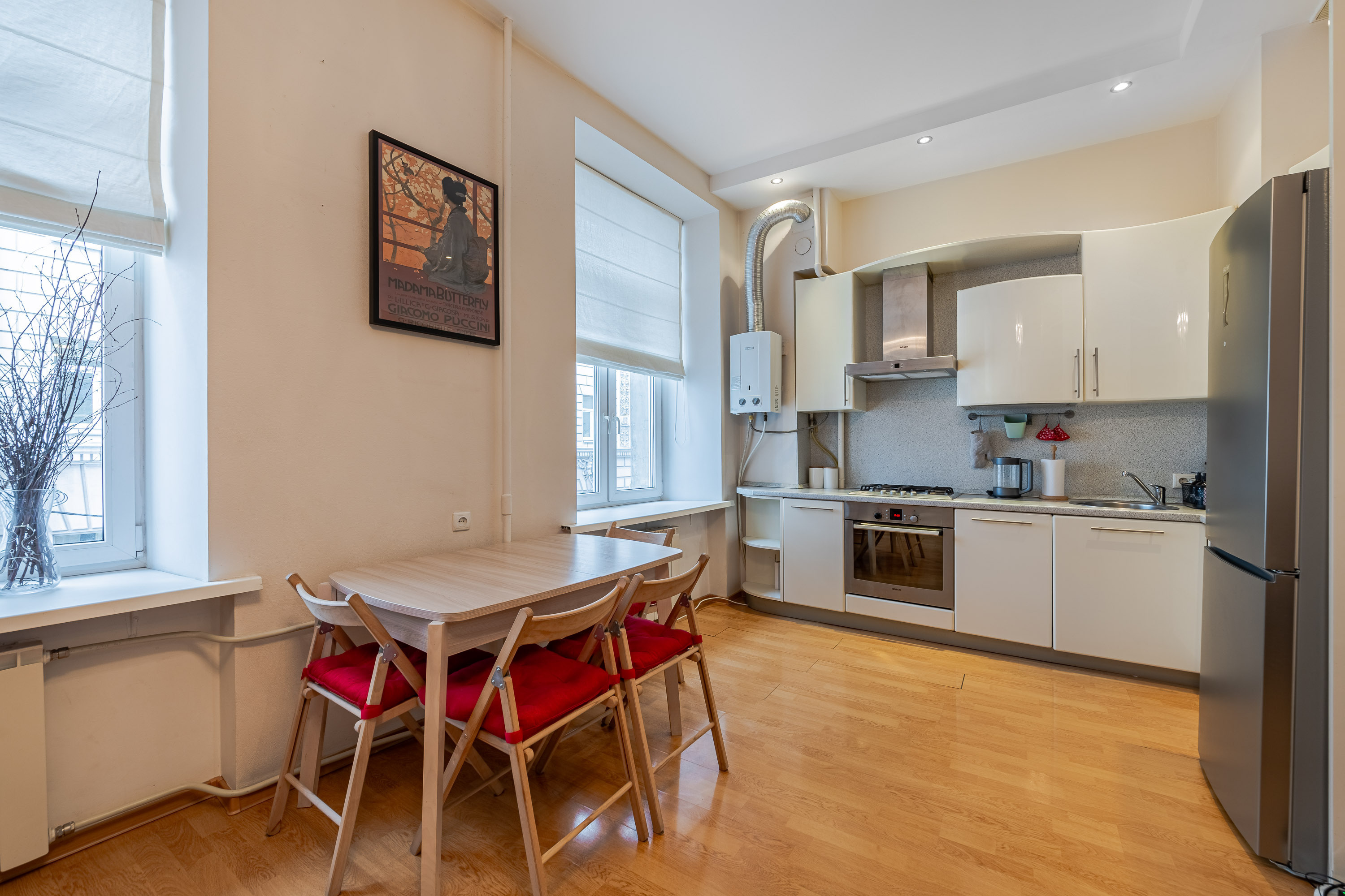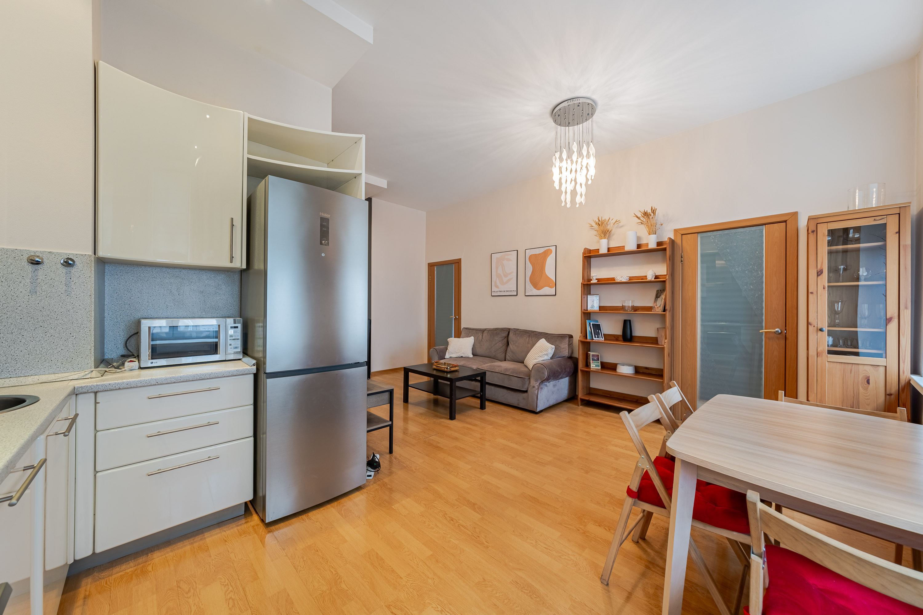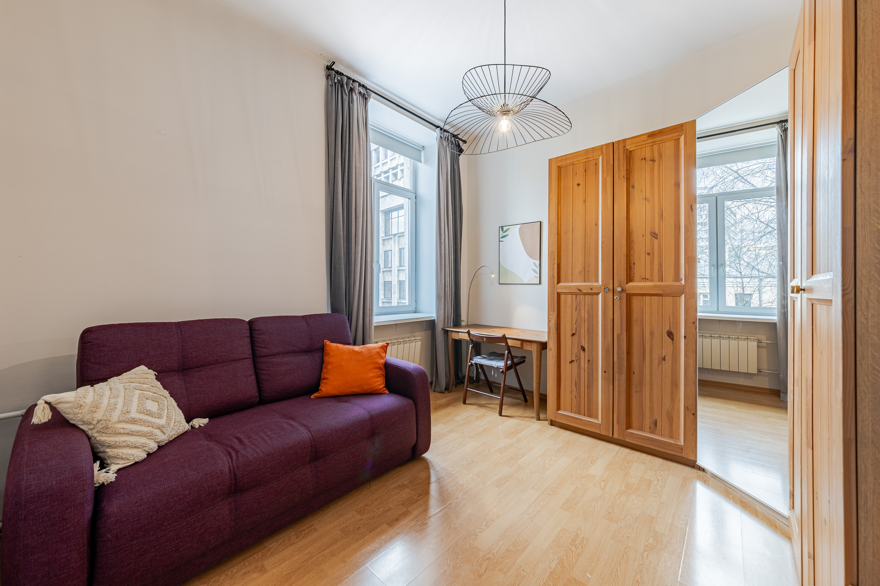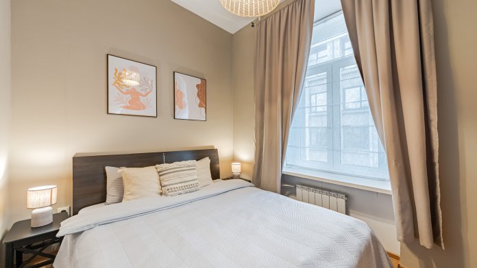 В квартире много света, пространства и свободы. Вы сможете насладиться видом, расположившись на просторном подоконнике с чашкой ароматного кофе. Весь интерьер прослеживается в деталях лаконичная мебель, уникальное освещение и яркие предметы интерьера подарят вам незабываемые впечатления.