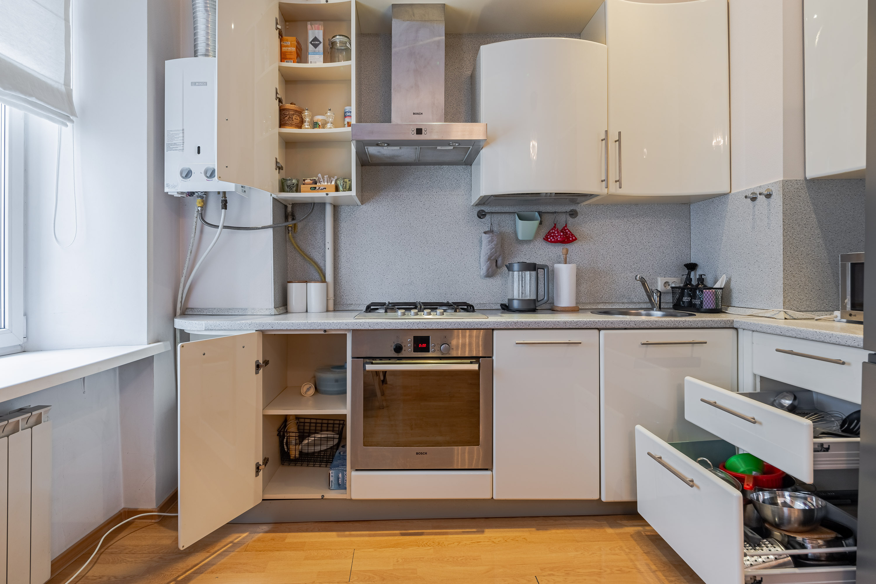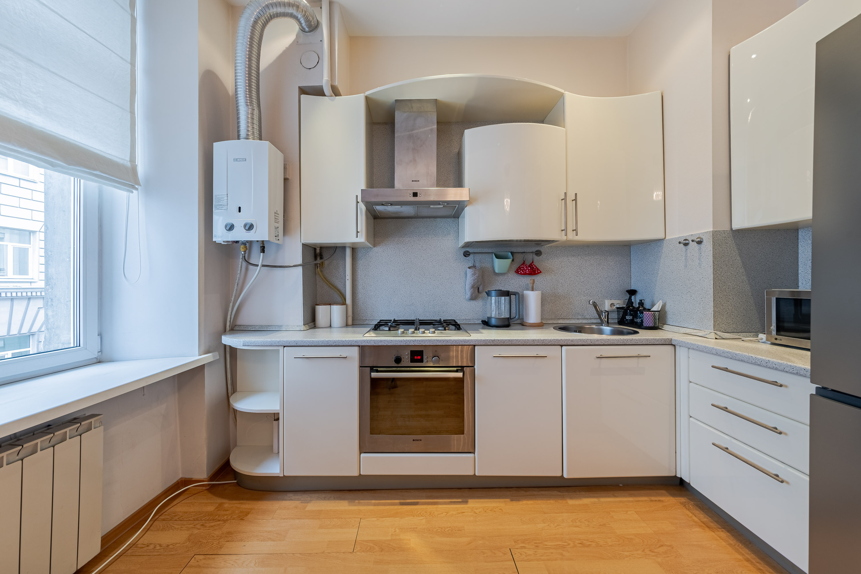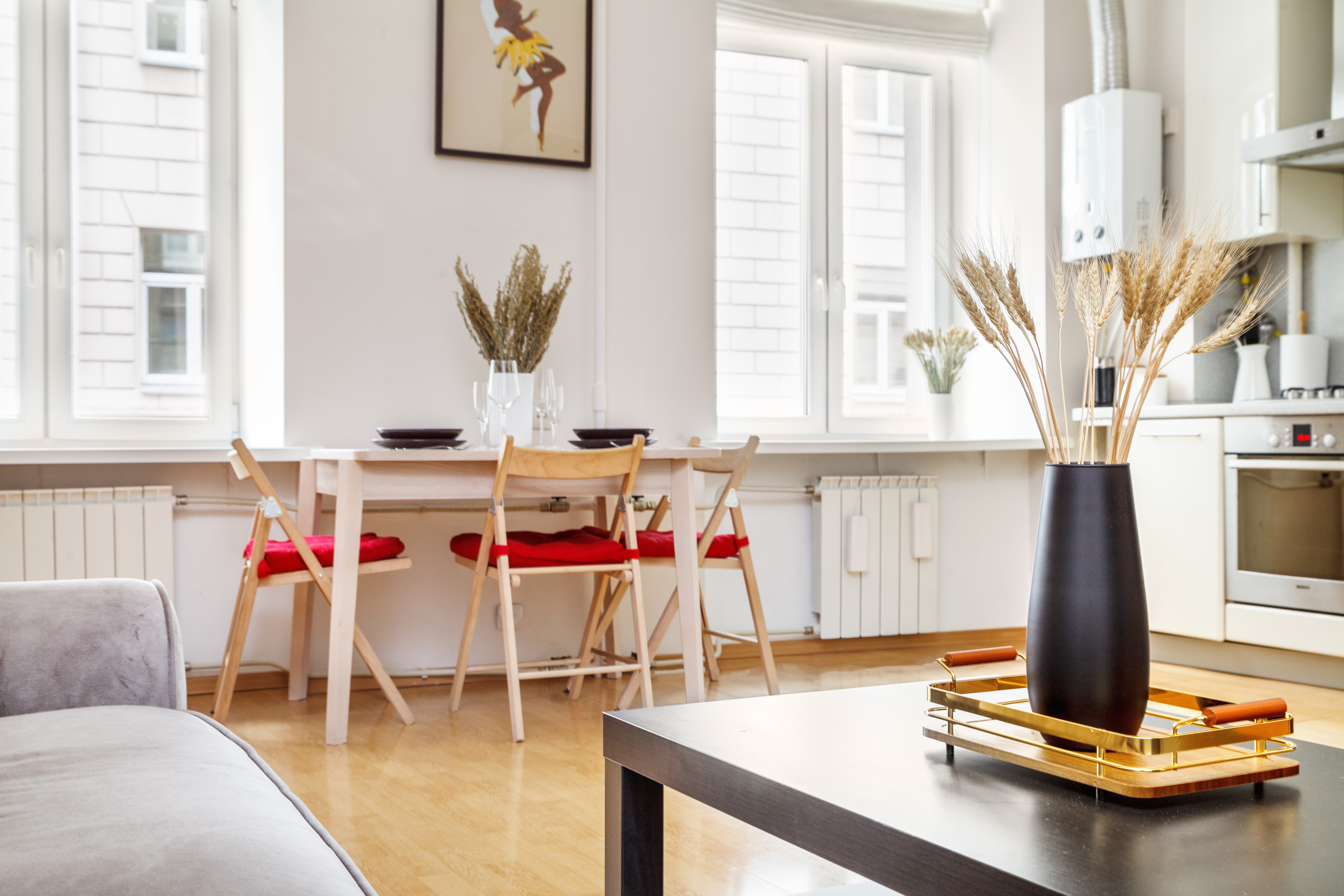 В квартире много света, пространства и свободы. Вы сможете насладиться видом, расположившись на просторном подоконнике с чашкой ароматного кофе. Весь интерьер прослеживается в деталях лаконичная мебель, уникальное освещение и яркие предметы интерьера подарят вам незабываемые впечатления.