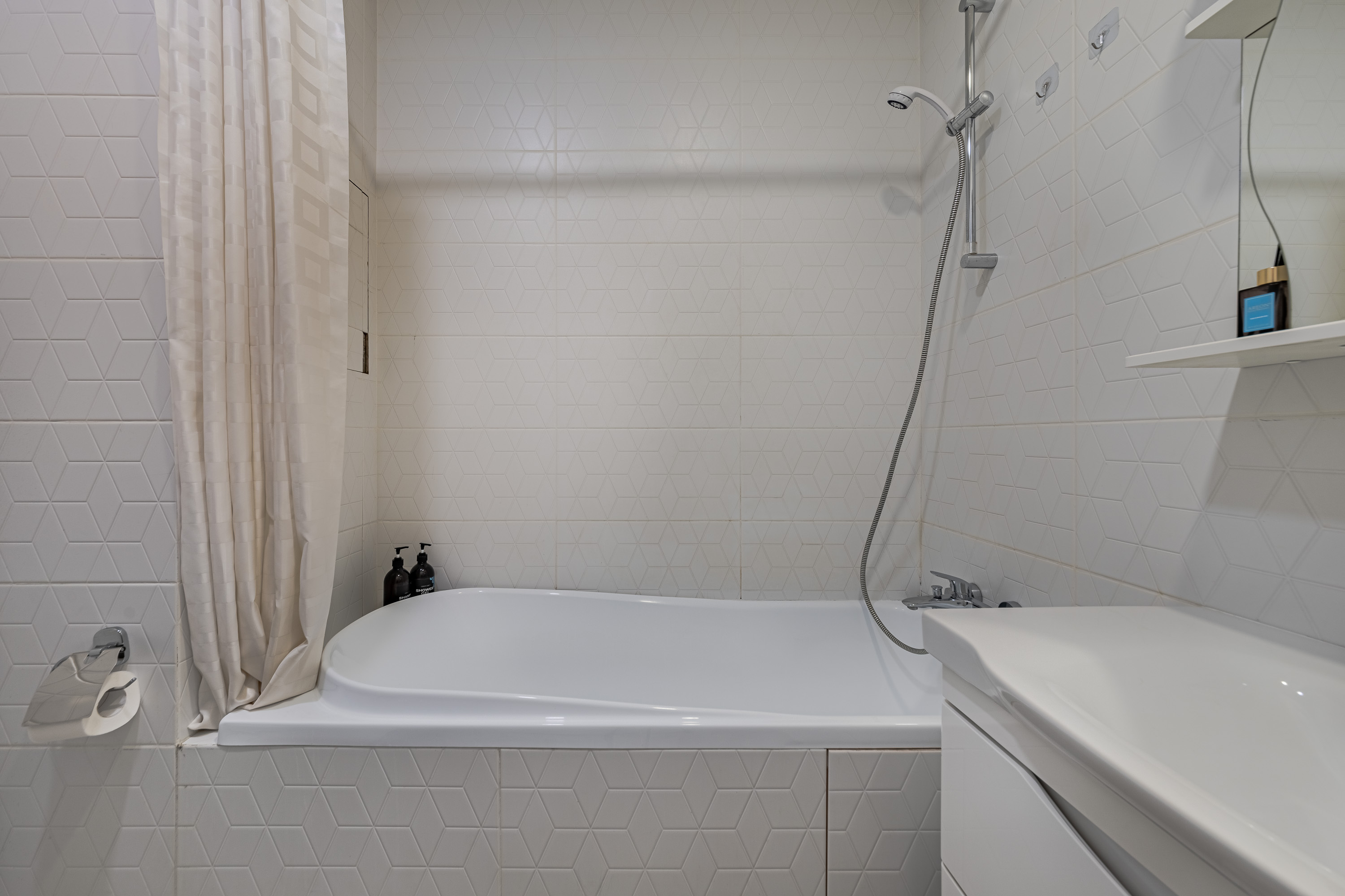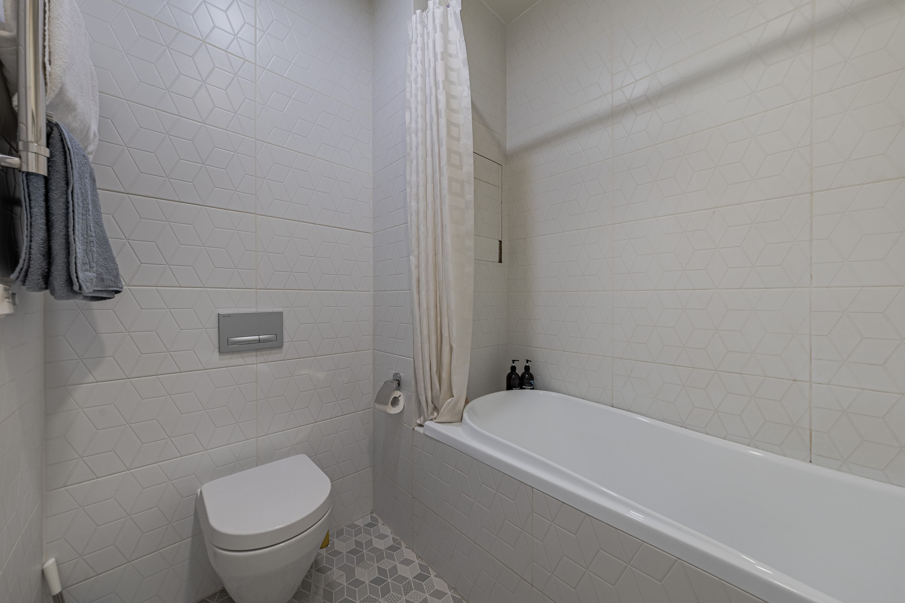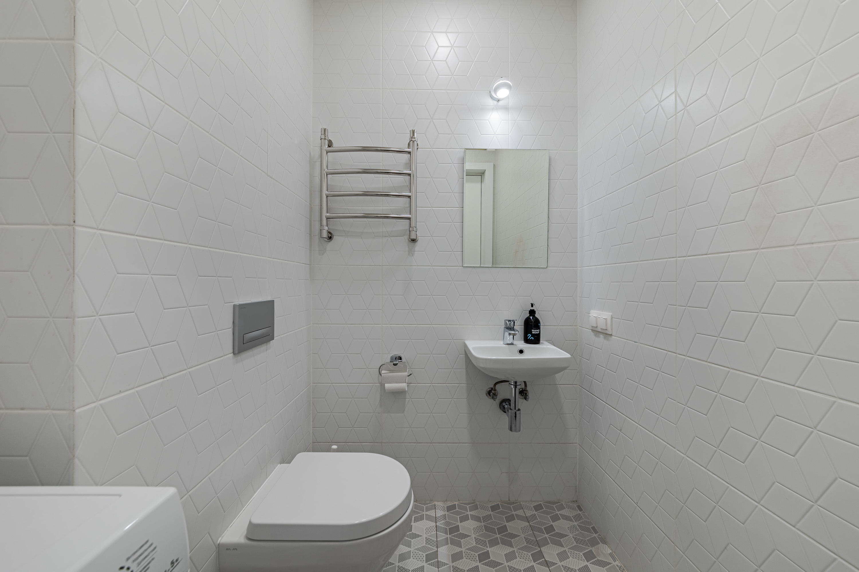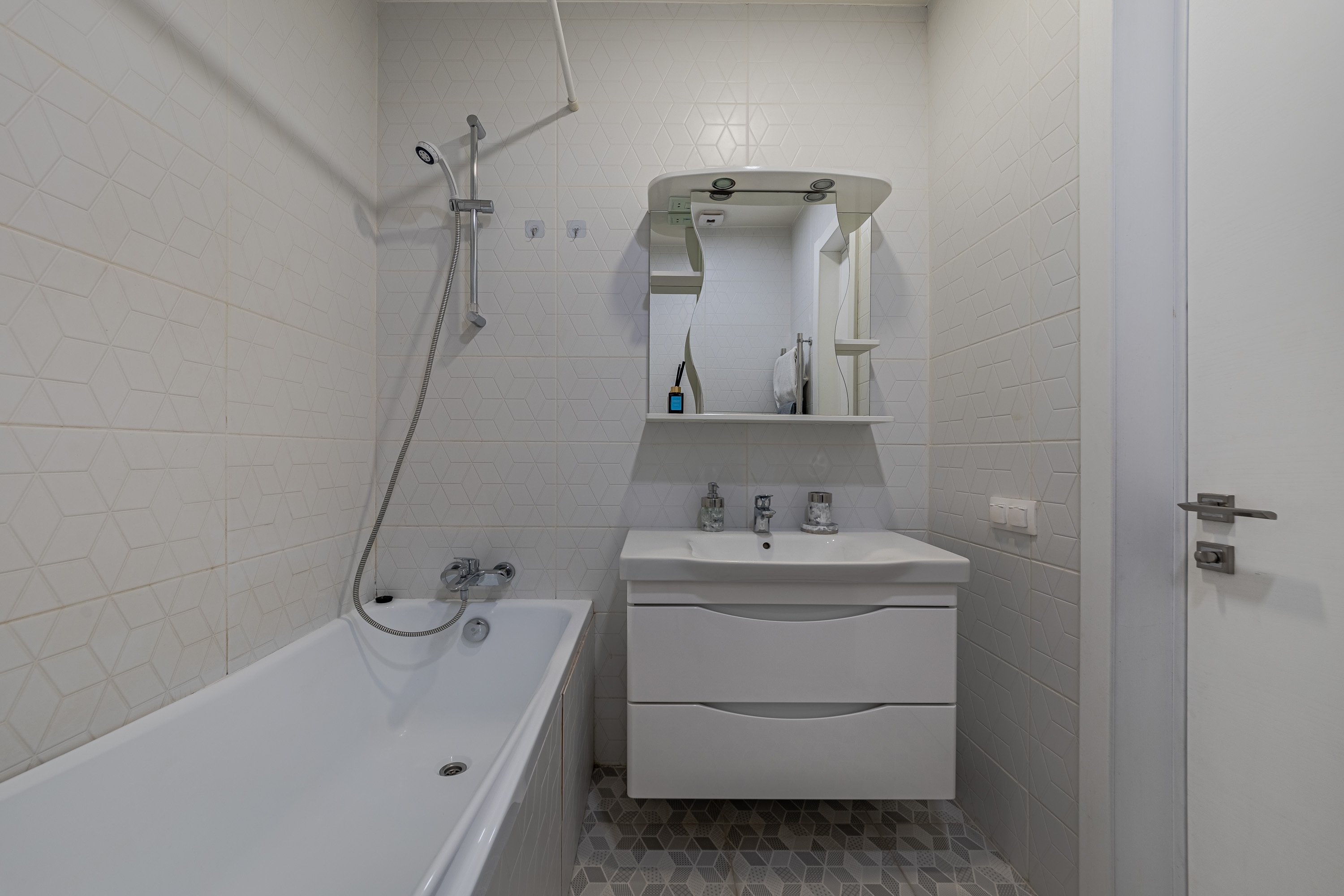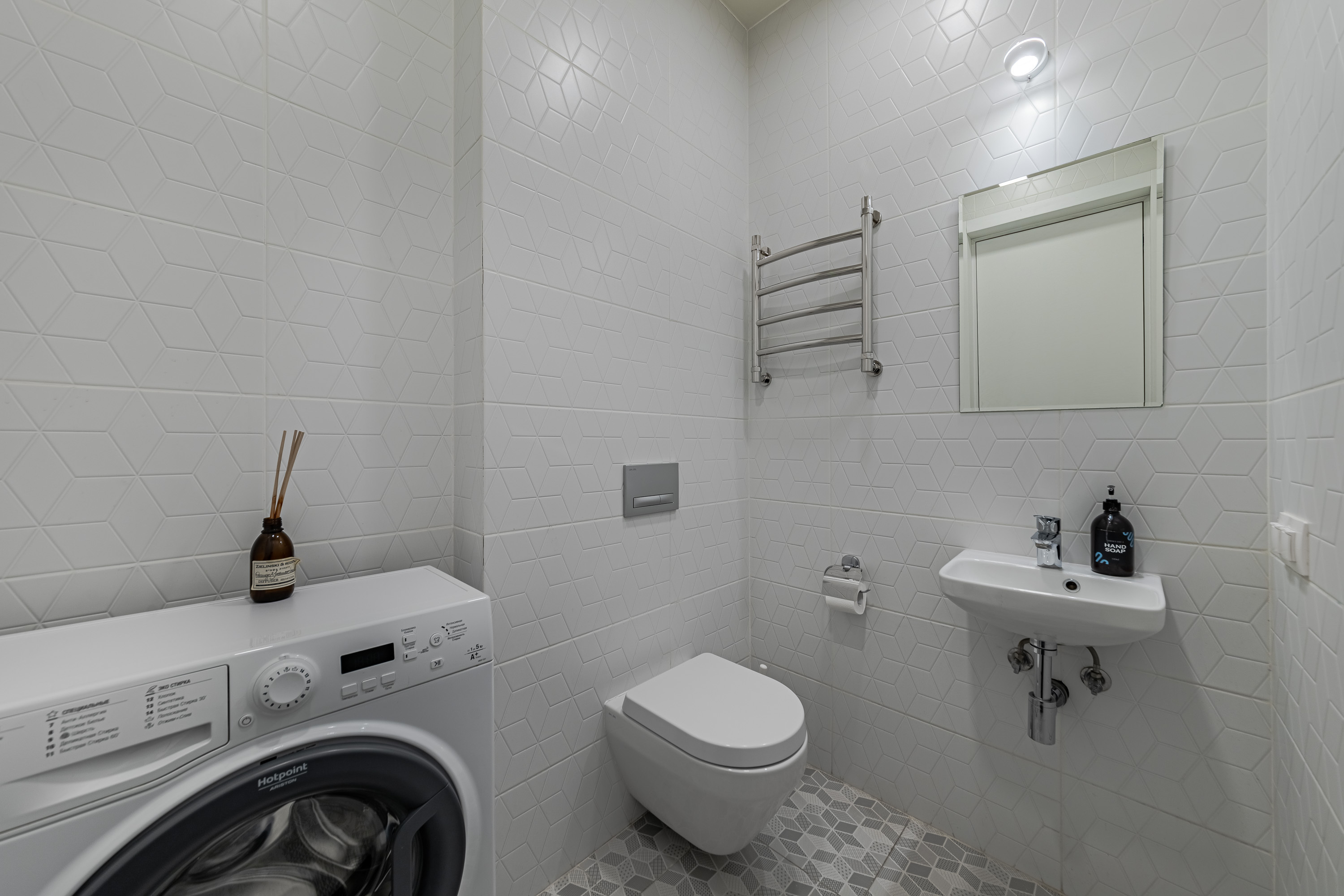 Большим плюсом квартиры является наличие двух санузлов в квартире. В просторной ванной комнате всегда будут полотенца и ароматные гели для душа. Вам не нужно тратиться на химчистку в квартире есть все необходимое для стирки: стиральная машина, сушилка, утюг и гладильная доска.