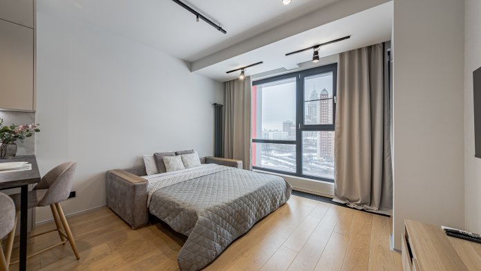 Наслаждайтесь панорамой города, располагаясь в одном из респектабельных ЖК бизнес класса «Лайнер». Студия находится недалеко от центра, всего в 7 мин. ходьбы от м. ЦСКА.