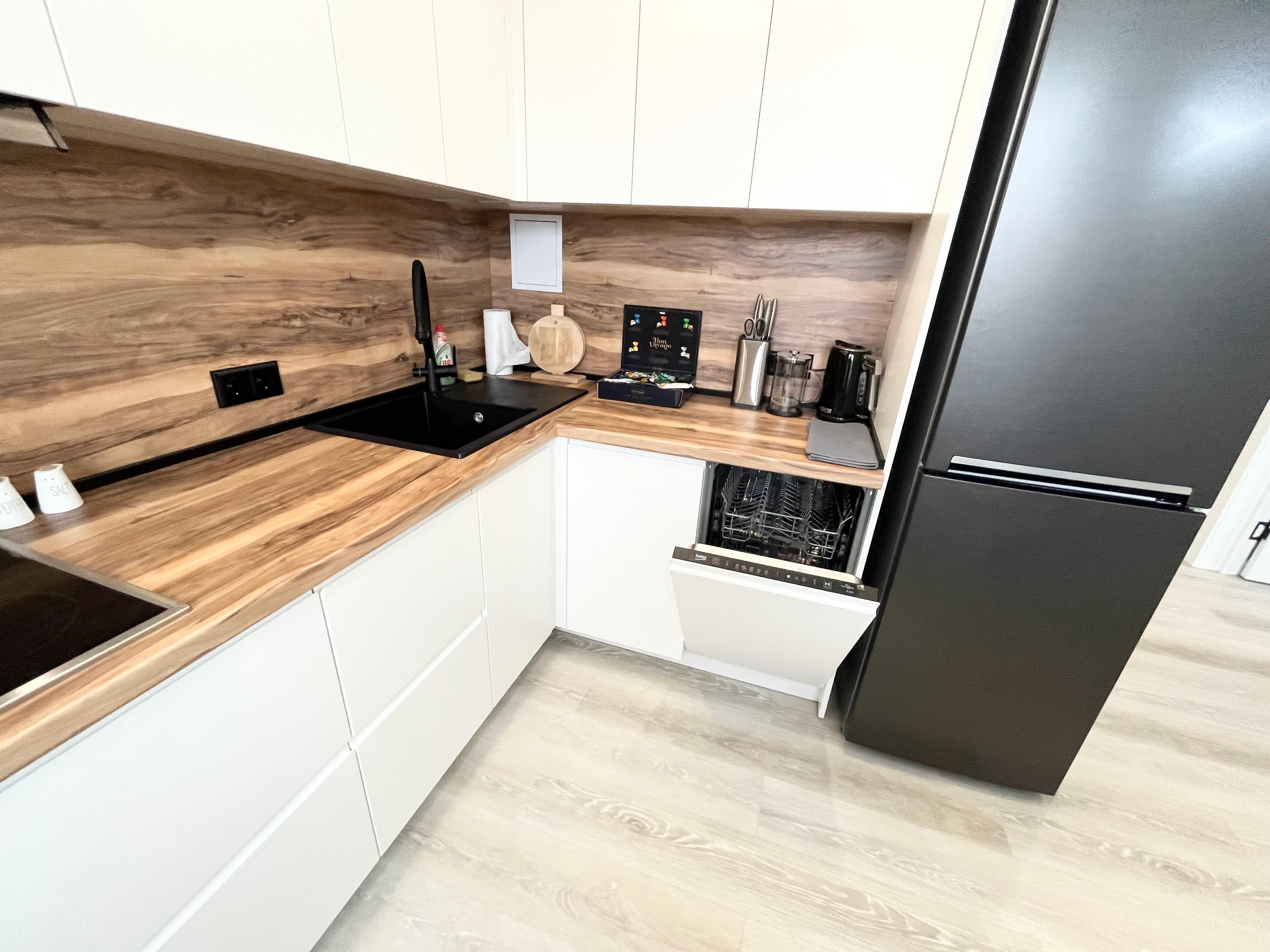 Комплектация: туалетные принадлежности (гель для тела, шампунь, тапочки, зубные щетки и пасты, туалетная бумага, капсулы для стирки, халаты), чай, конфеты, посудомоечная машина, двуспальная кровать, двуспальный диван, постельное белье, полотенца, телевизор, духовой шкаф, варочная поверхность, микроволновая печь, холодильник, стиральная машина, кондиционер, набор посуды и столовых приборов, чайник, фен, утюг, глад. доска, сушилка, интернет.